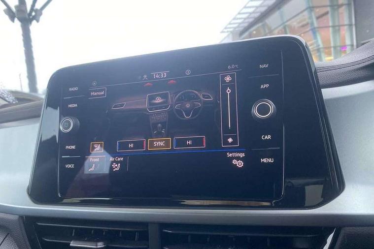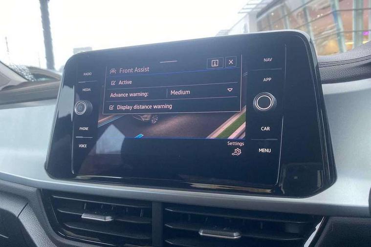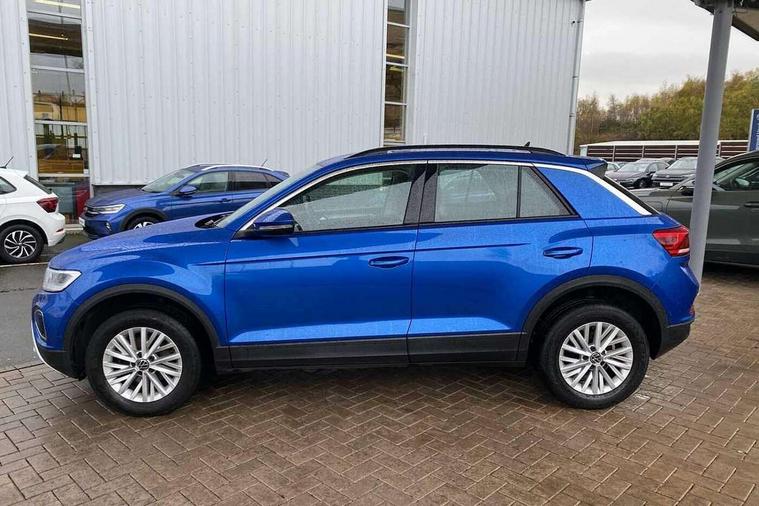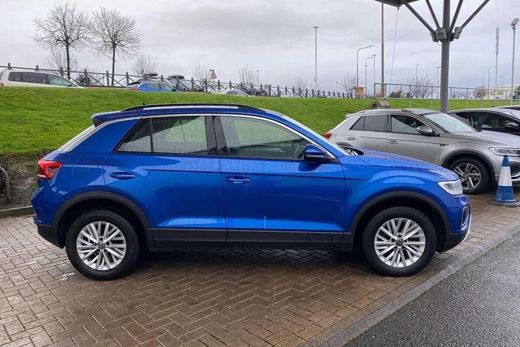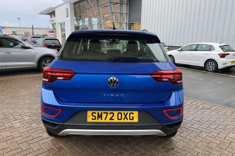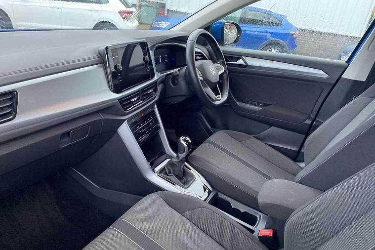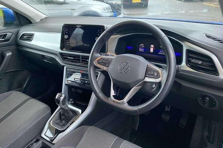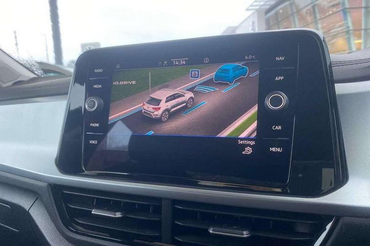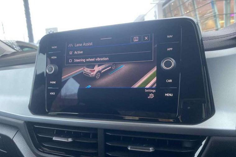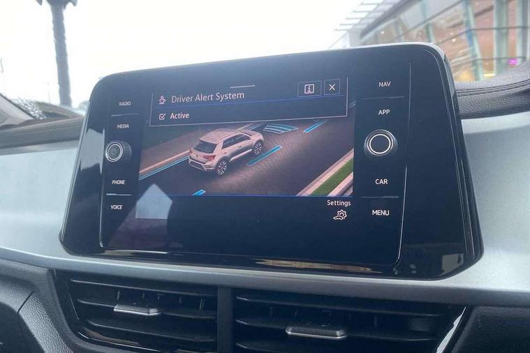 Bluetooth mobile phone interface, Driver alert system with fatigue detection, Driver tips and journey analysis, Emergency call service, Lane keeping system Lane Assist, Modified key software - reduce switch off time for key status change to Long no motion, Online services, Park assist including front and rear parking sensors, Power assisted speed sensitive steering, Service interval indicator, Tailgate/trunk lid release from outside, Think blue trainer driver tips and journey analysis, Warning sound and light for front seatbelts unfastened, Wireless app connect, Battery regeneration during braking, Front shock absorption, Rear shock absorption chassis with increased ride height, Start/stop function with battery regeneration, DAB Digital radio, Diversity antenna for FM reception, Front and rear 6 speakers, Music playback - MP3, WMA and AAC files, Premium USB cable in choice of either Apple or Android smartphone compatibility, SD card slot, Simultaneous pairing of 2 compatible mobile devices, Title and cover art display, We Connect and We Connect Plus functionality, 3rd brake light, Auto dimming interior rear view mirror, Automatic hazard lights activation under emergency braking, Automatic headlight control with LED separate daytime running lights with coming/leaving home function, Black roof rails, Body coloured bumpers and radiator grille with chrome trim and front fog lamps with chrome bezel, Body coloured exterior mirror housings and door handles, Extended roof spoiler, Exterior mirrors aspherical on driver side, convex on front passenger side, External USB type C socket and charging sockets, Front windscreen wiper with intermittent wipe and 4 position delay, Heated rear window, LED Headlights, LED rear combination lamps, LED rear number plate lights, LED tail lamp rear comination lamps, Power windows with comfort operation and circuit breaker, Rain sensor, Rear exhaust tailpipe, Rear fog light on one side and reversing lights on both sides, Rear side wing doors, Rear wash/wipe with intermittent wipe setting, Remote electrically foldable door mirrors, puddle lights and reverse activated passenger's door mirror, 12V power socket in centre console, 3 rear head restraints, 3 seat bench in 2nd row, 4 load lashing points in luggage compartment, Air care climatronic air conditoning system with active combination filter and 2-zone temperature control, Ambient lighting with mirror logo projection, Cloth upholstery, Door and side trim panel in cloth, Drawer under drivers seat, Driver/front passenger seat height adjustment, Front centre armrest, Front comfort sports seats, Front cupholders x 2, Front reading light, Instrument lighting, white adjustable panel illumination, Interior light delay, Isofix child seat preparation, Leather gearshift handle, Load-through provision with cup holder when folded down ('Unsplit rear seat bench, split folding backrest, with centre armrest), Luggage compartment lighting, Lumbar support for driver's and front passengers seat, Non-folding front passenger seat backrest, Single front passenger seat, Storage compartment in left and right luggage area, Storage compartment in rear doors, Storage compartments in driver and front passenger doors, Sunvisors with illuminated vanity mirrors, Variable boot floor, height adjustable and removable, Driver assistance pack without proactive passenger protection - T-Roc, 3 point height adj front seatbelts + pretensioners, 3 point seatbelts in outer rear with ECE label, ABS, Child locks on rear doors, Driver and front passenger airbag with front passenger airbag deactivation, Driver and front passenger safety-optimised head restraints, Drivers seatbelt reminder, Electronic parking brake, Electronic Stability Control (ESC) inc EDL (Electronic Differential Lock) and ASR (Traction Control), Front and rear passengers curtain airbag system including front side airbags, Front assist with city emergency braking and pedestrian monitoring, Front disc brakes, Front seat side impact airbags, Hill start assist, Predictive pedestrian protection, Rear disc brakes, Single tone horn, Tyre pressure loss indicator, Volkswagen roadside assistance, Alarm with interior protection, Anti-theft alarm system with interior monitoring, backup horn, and towing protection, Remote central locking with SAFELOCK, radio remote control with 2 remote control folding keys, Pewter matt decorative inserts for intrument panel, centre console and door panels at the front, Trims for alloy wheels,