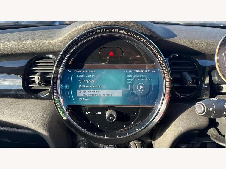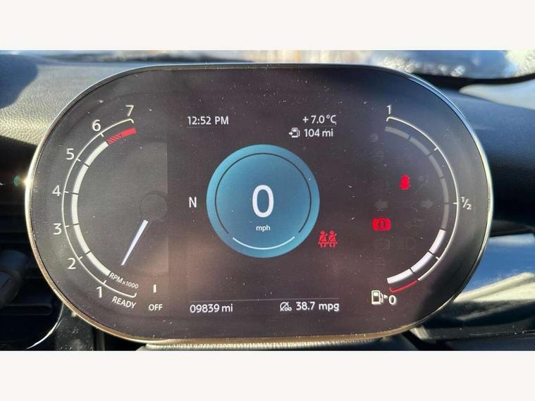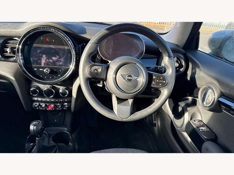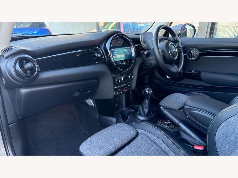 Automatic start/stop function with brake energy recuperation, Compatible mobile phone bluetooth with audio streaming, Cruise control with brake assist, Electro-mechanical speed dependant steering assistance, Flexible car sharing preparation, Instrument cluster, MINI Driving Modes - centre toggle switch to control driving setting (sport, mid and green), Mini E-call, MINI TeleServices, On board computer, Service interval indicator, 6 Speed manual transmission including gear change indicator display, Double Vanos system, Fully variable valve control, High precision injection, Performance Control, 4 speakers in front door trims and underneath front seats, 8.8" touchscreen with LED ring, FM tuner and DAB digital radio, Automatic headlight activation switch, Bonnet scoop, Chrome fuel filler cap, Dynamic brake lights, Electric front windows, Heated rear window, Heated windscreen washer jets, LED headlight with closed ring and daytime driving lights, Metal door sill strips with Cooper S, Model logo Cooper S on right of tailgate, Radiator grille chrome border with honeycomb structure including S Badge, Rain sensor window wipers, Rear fog lights, Rear LED lights with union jack design, Rear window wiper, Side scuttle panel with integrated indicator, Sun/heat protection glass, Two central exhaust tailpipes with chrome finisher, White indicator lenses, 12V Accessory socket in centre console, 4 lashing eyes in luggage compartment, 60/40 split folding rear seat, Carbon black colour line - Knee roll and door armrest, Chrome interior highlights, Cupholders, Front and rear head restraints, Front and rear isofix with front passenger airbag deactivation, Glove compartment, Height and length steering column adjustment, Interior lighting with 12 different colours across the dashboard, underneath door bezel with illuminated laser-engraved design on central display, Leatherette gearshift lever and handbrake gaiters, LED reading lights, vanity mirror lights, front foot well light and spotlight on front seats, Manual air conditioning, Mechanical seat adjustment - forward/back & backrest for front seats and driver seat height adjust, Multifunction steering wheel, Passenger seat height adjuster, Satellite grey headlining including grab handles and clothes hooks, Sport leather steering wheel with speed limiter and audio/communication controls, Storage compartments in doors, Storage pocket on back of front seats, Sunvisors with vanity mirrors, Velour floor mats, 3 point seatbelts on all four seats, 6 Airbags - front, side, head and seat belt tensioners, Anti-lock braking system (ABS), DSC - Dynamic Stability Control, Front and rear disc brakes, Two tone horn, Tyre pressure monitoring system, Alarm system with tilt sensor, monitoring doors, bonnet interior and tailgate, Electronic vehicle immobiliser, Start/stop toggle with keyless go, Piano black interior trim, Tool kit, Tyre repair kit,