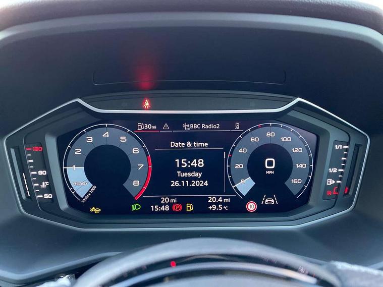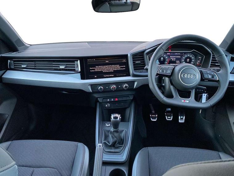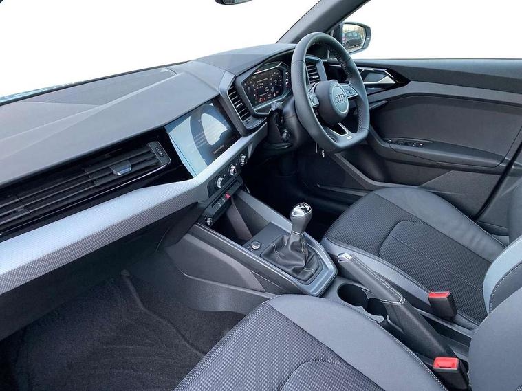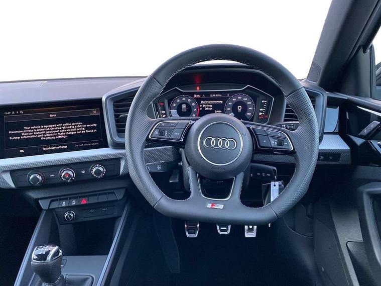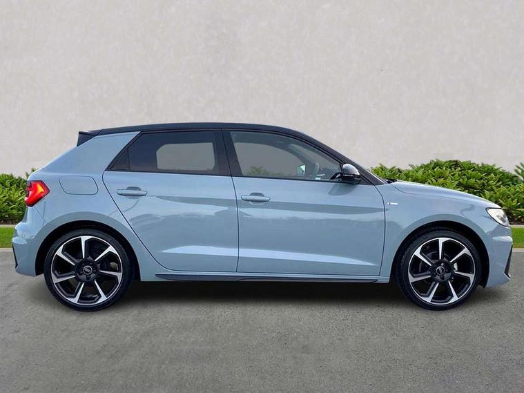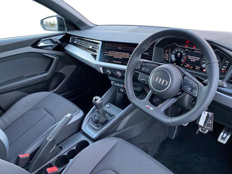 10.25" Digital instrument cluster display classis style instrument dials + speed, odometer, time, outside temperature, telephone menu + fuel level warning, Audi connect safety emergency and service including E-call, Audi smartphone interface with connect compatible smartphone via USB directly MMI display + Nav, music, third party apps controlled via MMI controller, Automatic start/stop system, Bluetooth interface, Cruise control, Driver's information system, Electromechanical power steering, Lane departure warning system, Rear parking sensor, Service interval indicator, Speed limiter, Voice control system, Washer fluid level indicator, Sports suspension, 1 x SDXC card reader, 1 x USB type C and 1 USB type A charging points, DAB Digital radio, MMI radio plus with 8.8" colour MMI display screen and MMI touch, Auto dimming rear view mirror, Black door mirrors, Black side skirts, Door sills with aluminium inlays and S Line logo, Electric front and rear windows, Electrically adjustable, heated, folding door mirrors with integrated LED side indicator, Front side air inlets in grained matt black and C frame in titanium black, Heat insulating glass windscreen and side windows, Heated rear windscreen, LED headlights with LED rear lights + dynamic rear indicators + headlight adjustment and high beam, turning light + LED daytime running lights, Radiator protective grille frame in matt aluminium silver, Rain and light sensors, Rear fog lights, Rear wiper, Side front spoiler lips in grained matt black, 12V socket in centre console with two cup holders, 3 rear seats with headrests, 3 spoke flat bottomed multi-function plus leather steering wheel with S badging, grips in preforated leather, contrast stitching and paddle shift, 40:60 Split folding rear seat or folded fully, Black cloth headlining, Driver and passenger seat with manual height adjust with forward and backwards adjustment, Front and rear black floor mats with contrast stitching in fine silver, Front head restraints, Height and reach adjustable steering wheel, ISOFIX child seat mounting for front passenger and outer rear seats including top tether attachment point of outer rear seats, Leather gear knob with aluminium trim, Luggage compartment light with front and rear reading lights, Manually adjustable lumbar support in front seats, Stainless steel pedals, Black styling pack - A1 Sportback Black Edition, LED interior lighting pack - A1, Luggage compartment pack - A1, 3x3 point rear seatbelts, Brake assist function, Driver and front passenger airbag with front side and head airbags, Electronic Stability Control including ABS, EBD, ASR and EDL, Front and rear seatbelt reminder, Front passenger airbag deactivation switch, Hill hold assist, Seatbelt height adjustment for front seats, Seatbelt monitoring, Tyre pressure warning light, Warning triangle and first aid kit, Anti theft alarm, Anti theft wheel bolts and loose wheel warning, Audi pre-sense front with pedestrain and cyclist recognition, Immobiliser, Remote central locking with 2 foldaway keys, Aluminium trim for control switches, air vents and digital instrument cluster, Silver grey inlays polygon structure in diamond paint finish, Structured grey accent areas including air vents, door handle recesses and centre console in quartz paint finish, 18" 7 spoke rotor design alloy wheels in gloss anthracite black, diamond cut finish,