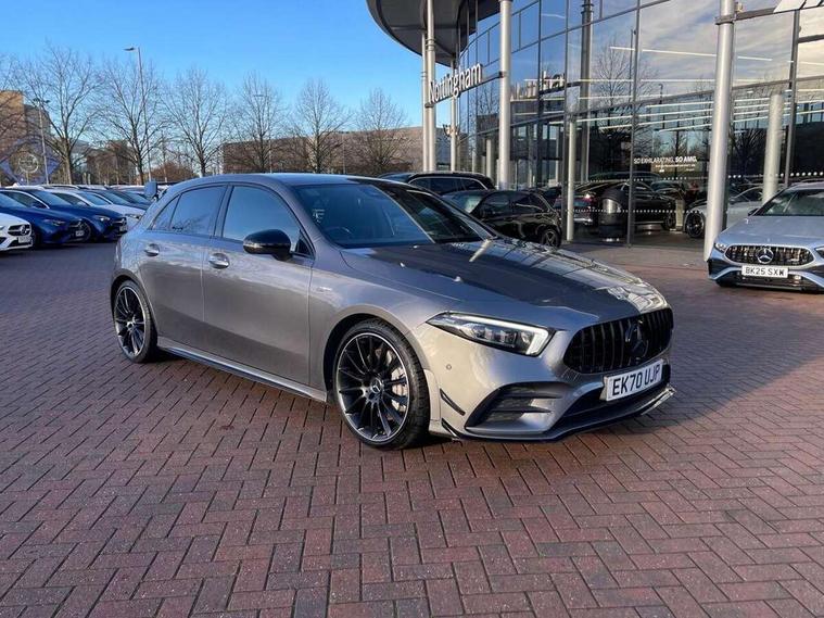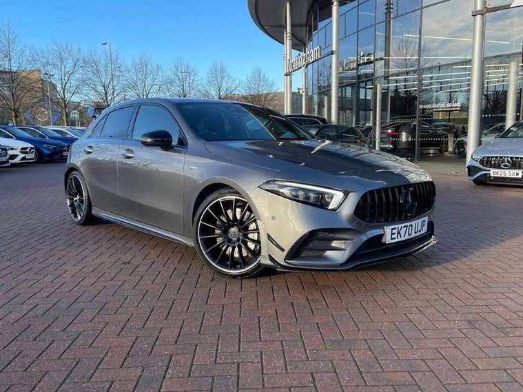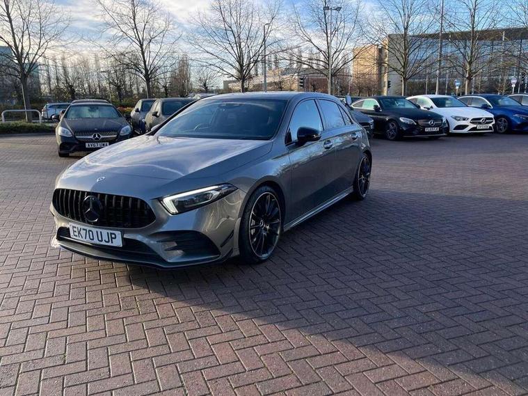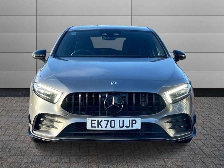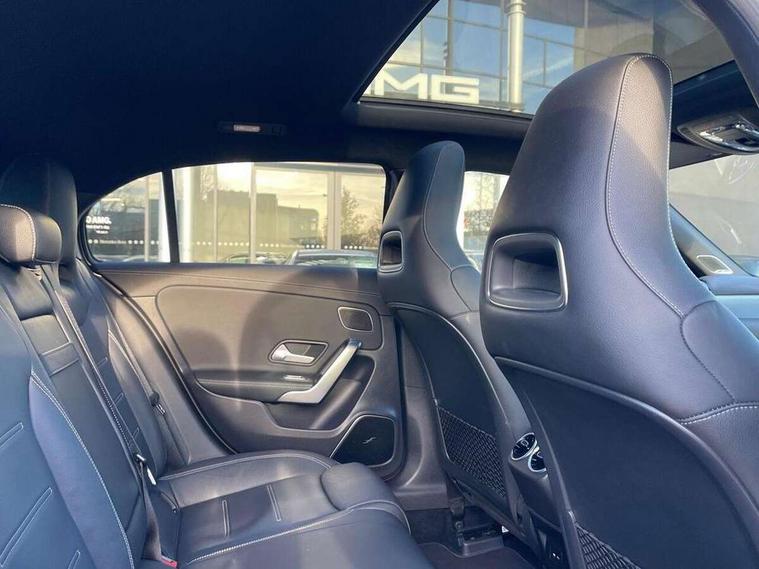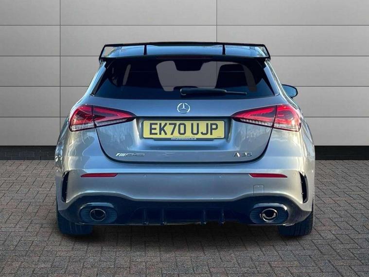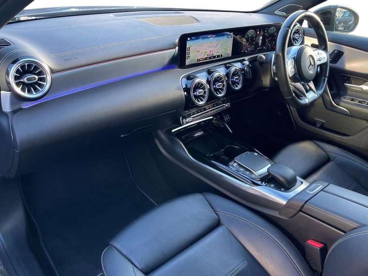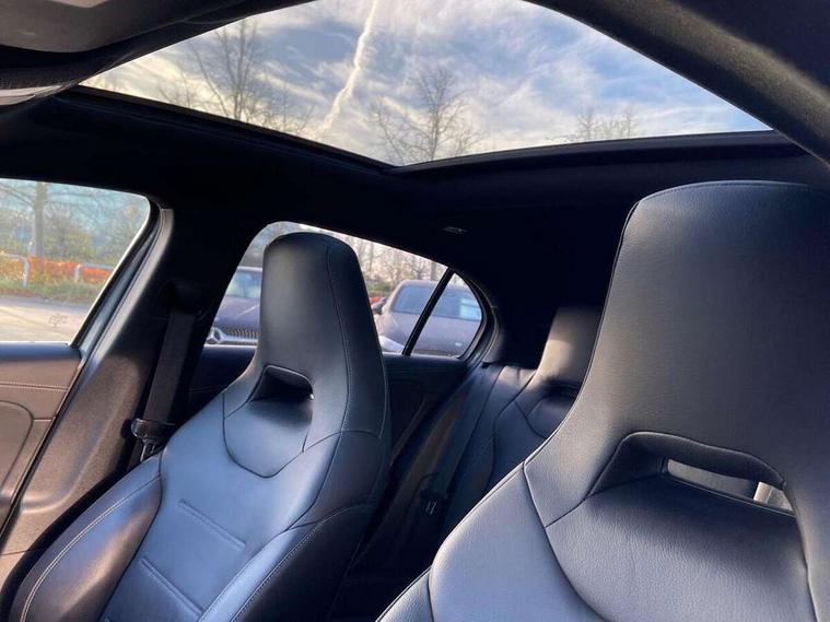 Ultrasonic sensors positioned in the front and rear bumpers, 10.25" Digital instrument cluster display screen, 10.25" media display, 180 degree rear view camera with parking guidelines, Active parking assist with visual and audible warning of detected obstacles, Attention assist, Brake pad wear indicator warning light, Car wash mode, Direct steering, Dual bluetooth interfaces, DYNAMIC SELECT with driving programs (Slippery, Comfort, Sport, Sport+ and Individual), ECO start/stop function, Fluid level warning indicator for fuel, oil, coolant and washer fluid, Hard-disk navigation, Hey Mercedes Voice activation, Lamp failure indicator, MBUX augmented reality for navigation, Mercedes me connect including emergency call system, accident recovery, breakdown management and maintenance, Mercedes me remote services, Outside temperature gauge, Owners manual in English, Pre-installation for car sharing, Preinstallation for Mercedes Benz link, Service indicator (ASSYST), Smartphone integration with Apple CarPlay and Android auto, Traffic sign assist, Trip computer, Wireless charging, Rear axle multi-link, 2 USB ports (type C) in rear stowage compartment and one in front of center console, Burmester surround sound system - 590W, DAB Digital radio, MBUX multimedia system with DAB digital radio and touchpad including satellite navigation, 4 Electric Front and Rear windows, Adaptive brake lights, AMG bodystyling - Front apron with splitter in chrome, rear apron with chrome trim and chrome visible trim elements in tailpipe, AMG Front apron with flics as air deflector elements on the outer air intakes, AMG radiator grille with twin blade lamella and AMG Lettering, AMG Rear apron with specific diffuser look with four vertical fins and two round chrome plated tailpipe trim elements with a diameter of 90 mm, AMG spoiler lip on roof, AMG Sports exhaust system with two round tailpipes attached in rear apron, Black weather strip, Body colour bumpers, Body colour door handles, Body colour side skirt, Electric adjustable and heated door mirrors with integrated LED side indicators, Front wings wheel arches with TURBO 4MATIC lettering, Headlamp assist automatic headlamp activation, Heated glass rear windscreen + timer control, High gloss black beltline, LED high performance headlamps with integrated LED daytime running lights, LED tail lamp, LED third brake light, Multibeam LED with adaptive highbeam assist plus, Panoramic sliding sunroof, Privacy glass, Radio aerial, Rain sensing windscreen wipers with two sensitivity settings, Rear fog lights, Rear wiper, Trim elements on louvres in outer air inlets in silver chrome, Wider wheel arches for AMG wheels, Window line trim strip in high gloss black, 40:20:40 split folding rear seats, AMG Performance steering wheel in nappa leather, Auto Mercedes-Benz child seat recognition sensor, Black air vents with surround in silver chrome, Black roof lining, Brushed stainless steel sports pedals with rubber studs, Controller on centre console with chrome surround, Electrically adjustable front memory seats including lumbar support, Floor mats with stitched edging and AMG lettering, Front centre armrest with storage compartment, Front seat backs luggage nets, Front seat cushion length adjustment, Heated front seats, Height/reach adjustable steering column, Illuminated front door sills with changeable cover, Interior lighting - 64 colour Ambient lighting, Interior mirror with reading lamps in black and frameless, ISOFIX and top tether child seat fixing points in two outer rear seats, Rear armrest with 2 cupholders, Rear head restraints, Seat occupancy sensor for front passenger seat, Silver coloured aluminium gear shift paddles on steering wheel, Sports seats with integrated headrests, Stowage compartment in centre console with retractable cover, Sunvisors with illuminated vanity mirrors, Touchpad on center console, Twin front cupholders, Two zone thermotronic luxury automatic climate control, Aerodynamic pack - A Class, AMG night pack - A Class, Light and sight pack - A Class, Mirror package - A Class, Seat comfort pack - A Class, 3 rear 3 point seatbelts, ABS with Brake Assist, Active bonnet, Adaptive brake assist with hold function and hill start assist, Black seatbelts, Childproof locks manually operated for rear doors and electrically operated for rear power windows, Crash responsive emergency lighting, Driver and passenger head and side airbags, Drivers knee airbag, Dual stage driver/passenger airbags, Electronic parking brake, ESP curve dynamic assist, ESP with ASR, Front and rear seatbelt reminder, Front brake calipers with AMG lettering, Perforated front brake discs, Tyre pressure monitoring system, Warning triangle and first aid kit, Window airbags, Alarm system/interior protection/immobiliser, Keyless entry lock/unlock, Keyless Go, Remote central locking and crash sensor with emergency opening function, Urban guard vehicle protection system with immobiliser and interior protection, Light aluminium with longitudinal grain interior trim, 19" AMG multi-spoke matt black painted light alloy wheels with high sheen finish, Summer tyres, Tirefit sealant kit,