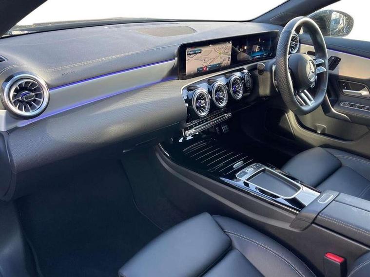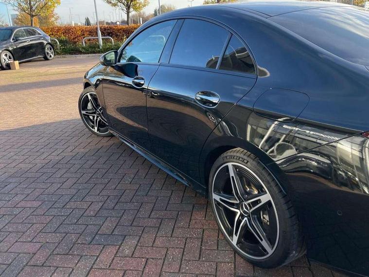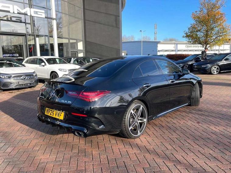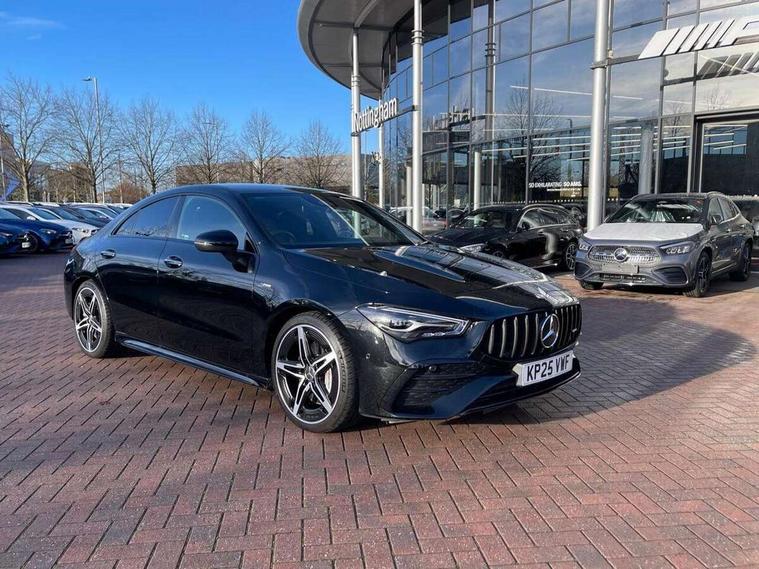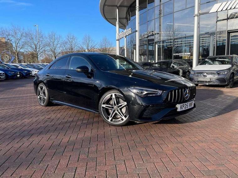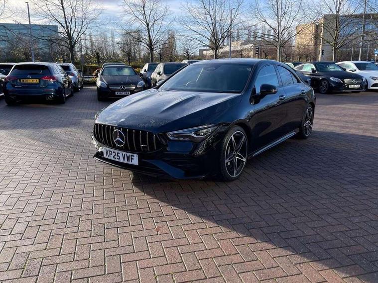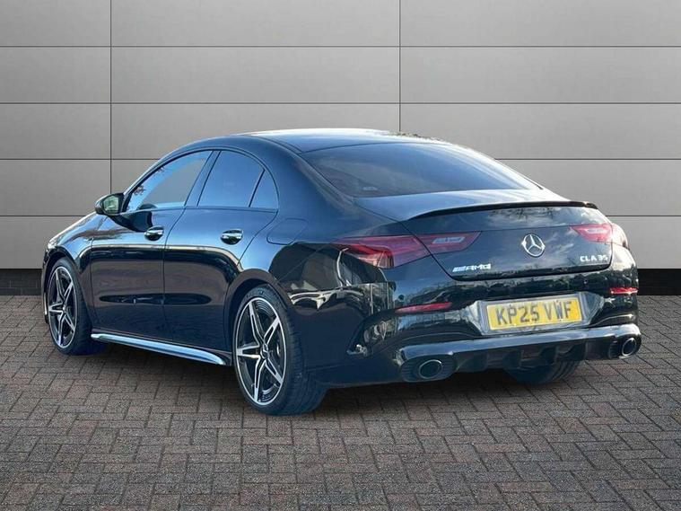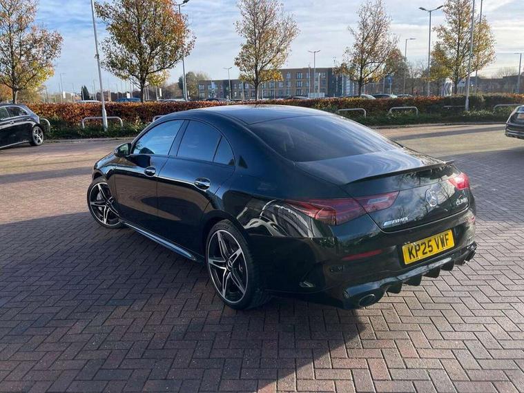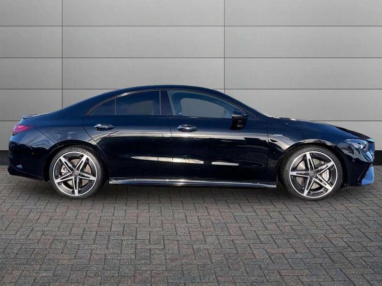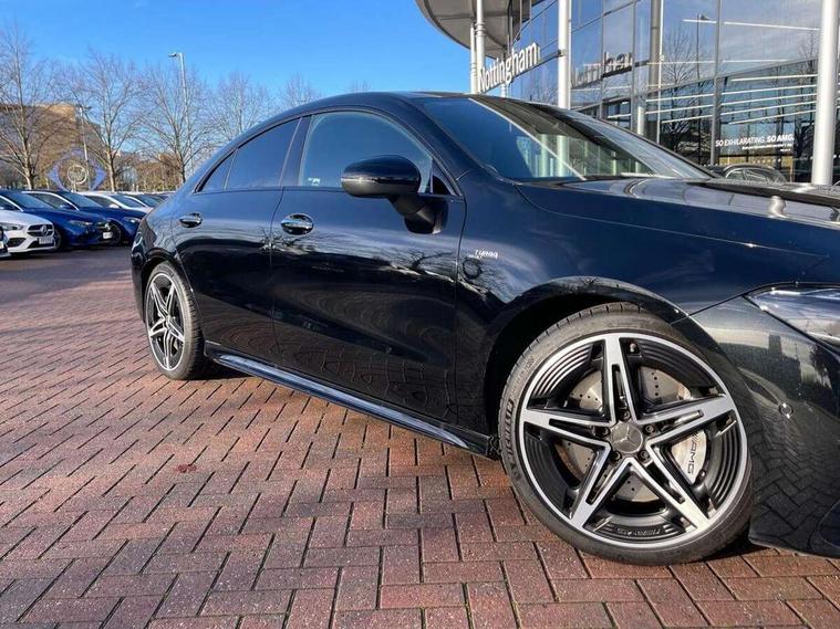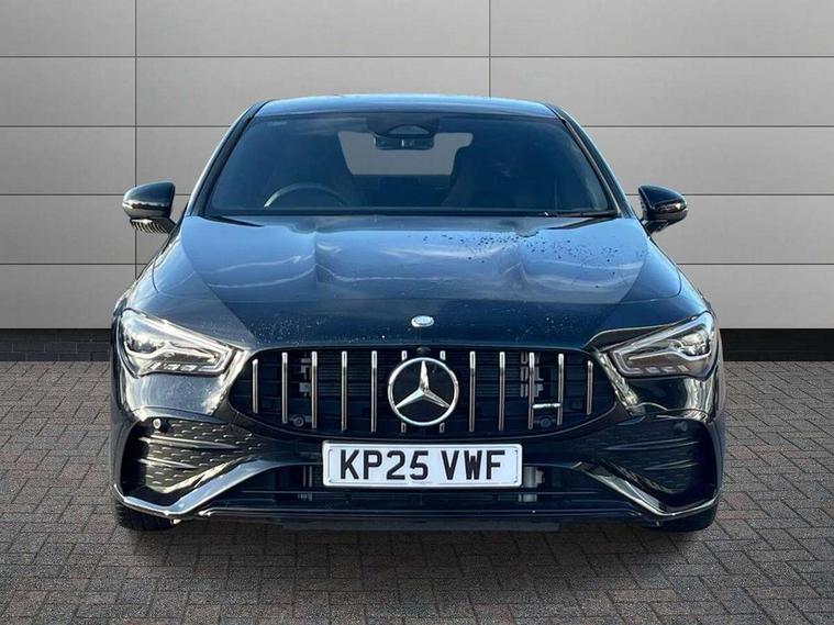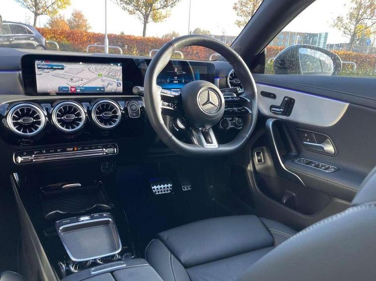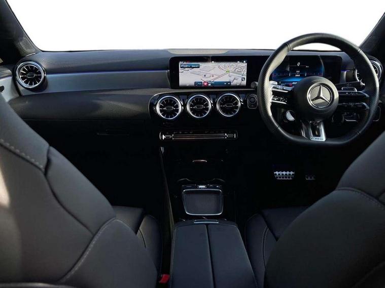 10.25 inch Instrument display with digital cockpit, 10.25 inch touchscreen central media display, Active lane keeping assist, AMG DYNAMIC SELECT with drive modes(Slippery, Comfort, Sport, Sport+, Individual and Race) incl drift mode via steering wheel shift paddles+Race Start, AMG speed sensitive power steering with two sets of steering characteristics, Attention assist - Monitors steering behaviour and long journey fatigue, Blind spot assist, Bluetooth connection, Car wash mode, Cruise control with limiter, Direct steer system, ECO start/stop function, Fingerprint sensor, Fluid level warning indicator for fuel, oil, coolant and washer fluid, Hard-disk navigation, Hey Mercedes Voice activation, Lamp failure indicator, MBUX augmented reality for navigation, Mercedes me connect including emergency call system, accident recovery, breakdown and maintenance management, Mercedes me remote services, Outside temperature gauge, Owners manual in English, Pre-installation of private car share, Radio aerial integrated into front and rear windshields, Service indicator (ASSYST), Smartphone integration with Apple CarPlay and Android auto, Speed limit assist, Trip computer in multifunction display with current consumption indicator, Wireless charging in the front centre console, 4MATIC permanent four wheel drive, AMG performance 4MATIC+ with torque control distribution, Rear axle multi-link, Suspension with adaptive damping system, DAB digital radio tuner, MBUX multimedia system, Mercedes Benz advanced sound system (225 W) with 10 speakers, 1 central speaker, speakers on doors, a tweeter on door, one sub woofer + boost amplifier, Pre installation for Mercedes Benz Link, USB (type C) ports (2) in stowage compartment and 1 in front of centre console, Adaptive brake lights, AMG emblem on the front instead of the "Mercedes-Benz" laurel wreath badge, AMG Front apron with flics as air deflector elements on the outer air intakes, AMG illuminated door sills with AMG lettering and with exchangeable cover, AMG Rear apron with specific diffuser look with four vertical fins and two round chrome plated tailpipe trim elements with a diameter of 90 mm, AMG Sports exhaust system with two round tailpipes measuring 90 mm in diameter attached in rear apron, Body colour bumpers, Body colour door handles, Electric windows, Electrically adjustable and heated door mirrors with integrated LED indicators, Front splitter and trim elements on the louvres in the outer air inlets in silver chrome, Front wings with TURBO 4MATIC lettering, Hand free access, Headlamp assist automatic headlamp activation, Heated glass rear windscreen + timer control, High level LED third brake light, Interior mirror with black reading lamps and frameless, LED high performance headlamps with integrated LED daytime running lights and adaptive highbeam assist, LED tail lamp, Privacy glass with dark tinting on rear side windows and rear window, Rain sensing windscreen wipers with two sensitivity settings, Rear boot, Rear fog lamp, Rear side wing doors, Rear wheel arch extensions AMG wheels, Variable front intermittent wipers, 3 seat bench in 2nd row, 40:20:40 split folding rear seat backrests, Air conditioning - Two zone thermotronic luxury automatic climate control with display, Air vents with surround in silver chrome, AMG Performance steering wheel in nappa leather, Automatic child seat recognition sensor, Black roof lining, Brushed stainless steel sports pedals with rubber studs, Electrically adjustable front memory seats including 4 way lumbar support, Floor mats with stitched AMG lettering, Fluorescent jacket, Front centre armrest with stowage, Interior lighting - 64 colour Ambient lighting, Luggage net on driver/front passenger seat backrest, Manually height and reach adjustable steering column, Rear armrest with two integral cup holders for drinks, Rear head restraints, Silver coloured aluminium gear shift paddles on steering wheel, Single front passenger seat, Sport seats with fixed head restraints, Stowage compartment in centre console with retractable cover, Sunvisors with illuminated vanity mirrors, Twin front cupholders, Two outer rear seat isofix and top tether child seat fixing points, AMG Night package - CLA 35/45, Keyless go comfort pack - CLA, Light and sight pack - CLA, Mirror pack with Self dimming rear view mirror - CLA, Seat comfort pack - CLA, Winter pack - CLA, Active bonnet pedestrain safety measure which detects an impact and raises bonnet by 65mm, Active brake assist includes forward collision warning system with autonomous braking, Adaptive brake assist with hold function and hill start assist, AMG high performance brake system with red painted brake callipers and black AMG lettering at the front, ventilated and perforated brake discs, Anti lock braking system (ABS) with brake assist, Black seat belts, Brake pad wear warning indicator, Childproof locks manually operated for rear doors and electrically operated for rear power windows, Crash responsive emergency lighting, Driver and front passenger head and sidebags, Driver and front passenger windowbags, Drivers knee airbag, Dual stage driver and front passenger airbags, Electric parking brake, Electronic stability programme with acceleration skid control, ESP curve dynamic assist, Exit warning, Front and rear seatbelt reminder, Front brake calipers with AMG lettering, Front passenger seat occupancy sensor, Sports braking system, Three point rear seat belts, Tyre pressure monitoring system, Warning triangle and first aid kit, Alarm system with immobiliser and interior protection -Thatcham category 1, Guard 360 deg vehicle protection - tow away protection with visual, acoustic warning, interior monitoring, preinstallation for parking damage, Remote central locking and crash sensor with emergency opening function, Light aluminium with longitudinal grain interior trim, 19" AMG 5 twin spoke light alloy wheels painted in matt black with high sheen finish, Summer tyres, Tirefit tyre s
