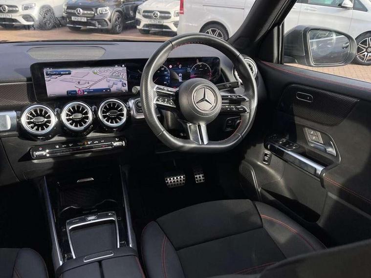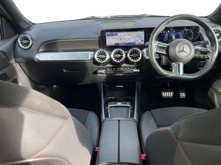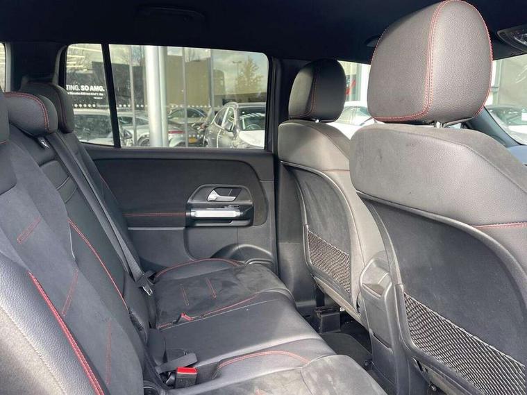 10.25 inch touchscreen central media display, 10.25" Digital instrument cluster display screen, 12 ultrasonic sensors in front and rear bumpers, 180 degree reversing camera with parking guidelines, Assisted parking: reversing backwards into perpendicular and parallel parking spaces, Attention assist - Monitors steering behaviour and long journey fatigue, Bluetooth connection, Brake pad wear indicator warning light, Car wash mode, Convenience opening and closing, Direct steering, DYNAMIC SELECT with a choice of driving modes (ECO, Comfort, Sport and Individual), ECO start/stop function, Engine start/stop button, Fluid level warning indicator for fuel, oil, coolant and washer fluid, Hard disk navigation, Hey Mercedes Voice activation, Lamp failure indicator, Lane keep assist, MBUX navigation premium, Mercedes me connect including emergency call system, accident recovery, breakdown and maintenance management, Mercedes me remote services, Outside temperature gauge, Owners manual and service booklet in English, Pre-installation of private car share, Preinstallation for parking damage notification, Radio aerial integrated into front and rear windshields, Remote boot closing, Service indicator (ASSYST), Smartphone integration with Apple CarPlay and Android auto, Speed limit assist, Tailgate, Trip computer in multifunction display with current consumption indicator, Ultrasound sensors - positioned in the handle of the tailgate, Wireless charging, Comfort suspension with ride height lowering, Rear axle multi-link, 1 USB-C port in the oddments compartment (Charge + Data transfer), 2 USB-C ports for the rear on the centre armrest (Charge only), 2 USB-C ports under the front centre armrest (Charge + Data transfer), DAB digital radio tuner, MBUX multimedia system, Mercedes Benz sound system (100 W) with 6 speakers, Pre installation for Mercedes Benz Link, Adaptive brake lights, Adaptive high beam assist, AMG front apron with front splitter in the colour of the vehicle with chrome trim element, AMG rear apron with visible tailpipe trim and chrome trim element, AMG specific/dual flow exhaust pipes in chrome (non-functional), Auto dimming rear view mirror, Beltline trim and window line trim strip in high gloss aluminium, Black grained side sill trim with chrome inlay, Body coloured door handles, Electric adjustable and heated door mirrors with integrated LED side indicators, Electric folding door mirrors, Front and rear electric windows, Headlamp assist automatic headlamp activation, Heat insulating dark-tinted glass starting from B-pillar, Heated glass rear windscreen + timer control, High level LED third brake light, Interior mirror with black reading lamps and frameless, LED high performance headlamps with integrated LED daytime running lights, LED tail lamp, Polished aluminium roof rails, Radiator grille as a diamond grille with chrome pins and central Mercedes star, Rain sensor windscreen wipers, Rear fog lamp, Rear side wing doors, Rear wiper, Single louvre in matt grey with chrome inserts and black highlights, Two visible tailpipe trim elements exhaust, Ultrasonic sensors - positioned in the front and rear bumpers, Wheel arch liners in the colour of the vehicle, 12V socket in the oddments compartment, 3 seat bench in 2nd row, 3 twin spoke flattened multifunction steering wheel in nappa leather - horizontal twin spoke in high gloss black, vertical twin spoke in silver chrome, 4 way adjustable lumbar support, 40:20:40 split folding rear seats, Air vents with silver chrome surrounds, AMG floor mats, AMG sports pedals with brushed stainless steel surfaces and black rubber studs, Automatic child seat recognition sensor, Black roof lining, Door handles with chrome inserts, Fluorescent jacket, Front and rear headrests, Front centre armrest with stowage, Galvanised steering wheel gearshift paddles in silver chrome, Handle recess lighting, Heated front seats, Height adjustable head restraints, Height/reach adjustable steering column, Interior lighting - 64 colour Ambient lighting, Luggage net on driver/front passenger seat backrest, Single front passenger seat, Sports seats, Stowage compartment with retractable cover, Sun visors with illuminated vanity mirrors, THERMATIC automatic climate control, Third row of seats for two people on rear seat, Twin front cup holders, Two outer rear seat isofix and top tether child seat fixing points, Easy pack tailgate, Interior lighting with light and sight pack - GLB, Seat comfort package - GLB, 3 rear 3 point seatbelts, Active bonnet pedestrain safety measure which detects an impact and raises bonnet by 65mm, Active brake assist includes forward collision warning system with autonomous braking, Adaptive brake assist with hold function and hill start assist, Airbags - kneebag for driver, Anti-lock braking system (ABS) with brake assist, Black seatbelts, Bonnet with power domes, Childproof locks manually operated for rear doors and electrically operated for rear power windows, Crash responsive emergency lighting, Curve dynamic assist, Driver and front passenger head and sidebags, Driver and front passenger windowbags, Dual stage driver and front passenger airbags, Electric parking brake, Electronic stability programme with acceleration skid control, Front and rear seatbelt reminder, Front brake callipers with Mercedes Benz lettering, Front passenger seat occupancy sensor, Perforated front brake discs, Tyre pressure monitoring system, Warning triangle and first aid kit, Guard 360 degree vehicle protection - Anti theft alarm system, tow away protection with visual, acoustic warning and alarm, Interior monitoring system, Keyless Go Access and drive authorisation system, KEYLESS-GO starting function, Remote central locking and crash sensor with emergency opening function, Thatcham category 1 alarm system with immobiliser and interior protection, Vehicle key with KEYLESS GO functionality, Carbon structure trim, 19" AMG 5 twin spoke light alloy wheels aerodynamically optimise