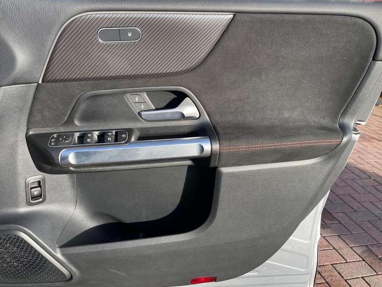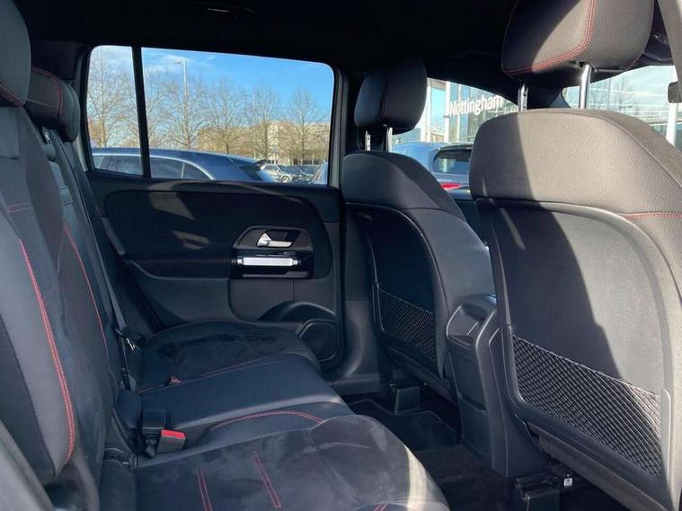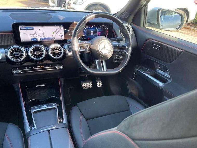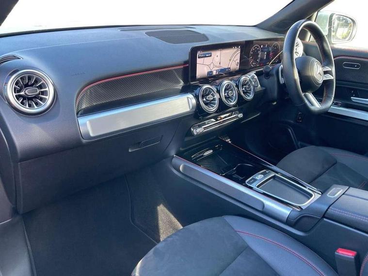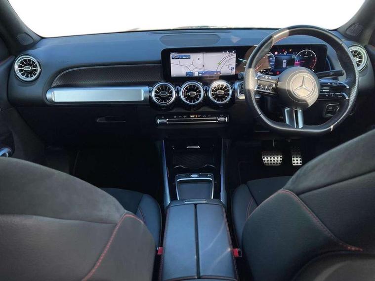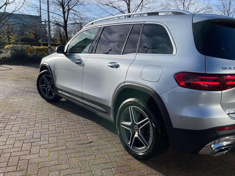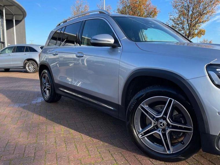10.25 inch touchscreen central media display, 10.25" Digital instrument cluster display screen, 12 ultrasonic sensors in front and rear bumpers, 180 degree reversing camera with parking guidelines, Assisted parking: reversing backwards into perpendicular and parallel parking spaces, Attention assist - Monitors steering behaviour and long journey fatigue, Bluetooth connection, Brake pad wear indicator warning light, Car wash mode, Convenience opening and closing, Direct steering, DYNAMIC SELECT with a choice of driving modes (ECO, Comfort, Sport and Individual), ECO start/stop function, Engine start/stop button, Fluid level warning indicator for fuel, oil, coolant and washer fluid, Hard disk navigation, Hey Mercedes Voice activation, Lamp failure indicator, Lane keep assist, MBUX navigation premium, Mercedes me connect including emergency call system, accident recovery, breakdown and maintenance management, Mercedes me remote services, Outside temperature gauge, Owners manual and service booklet in English, Pre-installation of private car share, Preinstallation for parking damage notification, Radio aerial integrated into front and rear windshields, Remote boot closing, Service indicator (ASSYST), Smartphone integration with Apple CarPlay and Android auto, Speed limit assist, Tailgate, Trip computer in multifunction display with current consumption indicator, Ultrasound sensors - positioned in the handle of the tailgate, Wireless charging, Comfort suspension with ride height lowering, Rear axle multi-link, 1 USB-C port in the oddments compartment (Charge + Data transfer), 2 USB-C ports for the rear on the centre armrest (Charge only), 2 USB-C ports under the front centre armrest (Charge + Data transfer), DAB digital radio tuner, MBUX multimedia system, Mercedes Benz sound system (100 W) with 6 speakers, Pre installation for Mercedes Benz Link, Adaptive brake lights, Adaptive high beam assist, AMG front apron with front splitter in the colour of the vehicle with chrome trim element, AMG rear apron with visible tailpipe trim and chrome trim element, AMG specific/dual flow exhaust pipes in chrome (non-functional), Auto dimming rear view mirror, Beltline trim and window line trim strip in high gloss aluminium, Black grained side sill trim with chrome inlay, Body coloured door handles, Electric adjustable and heated door mirrors with integrated LED side indicators, Electric folding door mirrors, Front and rear electric windows, Headlamp assist automatic headlamp activation, Heat insulating dark-tinted glass starting from B-pillar, Heated glass rear windscreen + timer control, High level LED third brake light, Interior mirror with black reading lamps and frameless, LED high performance headlamps with integrated LED daytime running lights, LED tail lamp, Polished aluminium roof rails, Radiator grille as a diamond grille with chrome pins and central Mercedes star, Rain sensor windscreen wipers, Rear fog lamp, Rear side wing doors, Rear wiper, Single louvre in matt grey with chrome inserts and black highlights, Two visible tailpipe trim elements exhaust, Ultrasonic sensors - positioned in the front and rear bumpers, Wheel arch liners in the colour of the vehicle, 12V socket in the oddments compartment, 3 seat bench in 2nd row, 3 twin spoke flattened multifunction steering wheel in nappa leather - horizontal twin spoke in high gloss black, vertical twin spoke in silver chrome, 4 way adjustable lumbar support, 40:20:40 split folding rear seats, Air vents with silver chrome surrounds, AMG floor mats, AMG sports pedals with brushed stainless steel surfaces and black rubber studs, Automatic child seat recognition sensor, Black roof lining, Door handles with chrome inserts, Fluorescent jacket, Front and rear headrests, Front centre armrest with stowage, Galvanised steering wheel gearshift paddles in silver chrome, Handle recess lighting, Heated front seats, Height adjustable head restraints, Height/reach adjustable steering column, Interior lighting - 64 colour Ambient lighting, Luggage net on driver/front passenger seat backrest, Single front passenger seat, Sports seats, Stowage compartment with retractable cover, Sun visors with illuminated vanity mirrors, THERMATIC automatic climate control, Third row of seats for two people on rear seat, Twin front cup holders, Two outer rear seat isofix and top tether child seat fixing points, Easy pack tailgate, Interior lighting with light and sight pack - GLB, Seat comfort package - GLB, 3 rear 3 point seatbelts, Active bonnet pedestrain safety measure which detects an impact and raises bonnet by 65mm, Active brake assist includes forward collision warning system with autonomous braking, Adaptive brake assist with hold function and hill start assist, Airbags - kneebag for driver, Anti-lock braking system (ABS) with brake assist, Black seatbelts, Bonnet with power domes, Childproof locks manually operated for rear doors and electrically operated for rear power windows, Crash responsive emergency lighting, Curve dynamic assist, Driver and front passenger head and sidebags, Driver and front passenger windowbags, Dual stage driver and front passenger airbags, Electric parking brake, Electronic stability programme with acceleration skid control, Front and rear seatbelt reminder, Front brake callipers with Mercedes Benz lettering, Front passenger seat occupancy sensor, Perforated front brake discs, Tyre pressure monitoring system, Warning triangle and first aid kit, Guard 360 degree vehicle protection - Anti theft alarm system, tow away protection with visual, acoustic warning and alarm, Interior monitoring system, Keyless Go Access and drive authorisation system, KEYLESS-GO starting function, Remote central locking and crash sensor with emergency opening function, Thatcham category 1 alarm system with immobiliser and interior protection, Vehicle key with KEYLESS GO functionality, Carbon structure trim, 19" AMG 5 twin spoke light alloy wheels aerodynamically optimise