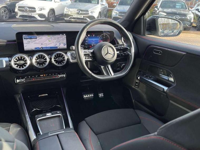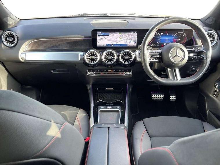 10.25 inch touchscreen central media display, 10.25" Digital instrument cluster display screen, Attention assist - Monitors steering behaviour and long journey fatigue, Blind spot assist, Bluetooth connection, Brake pad wear indicator warning light, Car wash mode, Direct steering, DYNAMIC SELECT with a choice of driving modes (ECO, Comfort, Sport and Individual), ECO start/stop function, Exit warning function, Fingerprint scanner, Fluid level warning indicator for fuel, oil, coolant and washer fluid, Hard disk navigation, Hey Mercedes Voice activation, Lamp failure indicator, Lane keep assist, MBUX navigation premium, Mercedes me connect including emergency call system, accident recovery, breakdown and maintenance management, Mercedes me remote services, Outside temperature gauge, Owners manual and service booklet in English, Pre-installation of private car share, Preinstallation for parking damage notification, Radio aerial integrated into front and rear windshields, Service indicator (ASSYST), Smartphone integration with Apple CarPlay and Android auto, Speed limit assist, Tailgate, Trip computer in multifunction display with current consumption indicator, Wireless charging, Comfort suspension with ride height lowering, Rear axle multi-link, DAB digital radio tuner, MBUX multimedia system, Mercedes Benz sound system (225 W) with 10 speakers, 1 central speaker, speakers on doors, a tweeter on door, one sub woofer + boost amplifier, Pre installation for Mercedes Benz Link, Adaptive brake lights, Adaptive high beam assist, AMG front apron with front splitter in the colour of the vehicle with chrome trim element, AMG rear apron with visible tailpipe trim and chrome trim element, AMG specific/dual flow exhaust pipes in chrome (non-functional), Beltline trim and window line trim strip in high gloss aluminium, Black grained side sill trim with chrome inlay, Body coloured door handles, Electric adjustable and heated door mirrors with integrated LED side indicators, Front and rear electric windows, Headlamp assist automatic headlamp activation, Heat insulating dark tinted glass for rear side windows and rear window, Heated glass rear windscreen + timer control, High level LED third brake light, Illuminated door sill panels with Mercedes-Benz lettering, Interior mirror with black reading lamps and frameless, LED daytime running lights, LED tail lamp, Polished aluminium roof rails, Radiator grille as a diamond grille with chrome pins and central Mercedes star, Rain sensor windscreen wipers, Rear fog lamp, Rear side wing doors, Rear wiper, Single louvre in matt grey with chrome inserts and black highlights, Two visible tailpipe trim elements exhaust, Wheel arch liners in the colour of the vehicle, 3 seat bench in 2nd row, 3 twin spoke flattened multifunction steering wheel in nappa leather - horizontal twin spoke in high gloss black, vertical twin spoke in silver chrome, 4 way adjustable lumbar support, 40:20:40 split folding rear seats, Air vents with silver chrome surrounds, AMG floor mats, AMG sports pedals with brushed stainless steel surfaces and black rubber studs, Automatic child seat recognition sensor, Black roof lining, Electrically adjustable front memory seats, Fluorescent jacket, Front and rear headrests, Front centre armrest with stowage, Galvanised steering wheel gearshift paddles in silver chrome, Heated front seats, Height adjustable head restraints, Height/reach adjustable steering column, Interior lighting - 64 colour Ambient lighting, Luggage net on driver/front passenger seat backrest, Single front passenger seat, Sports seats, Stowage compartment in centre console with retractable cover and double cupholder and 12 V socket, Sun visors with illuminated vanity mirrors, THERMOTRONIC automatic climate control, Third row of seats for two people on rear seat, Twin front cup holders, Two outer rear seat isofix and top tether child seat fixing points, Driving assistance package with active steering assist - GLB, Easy pack tailgate, Engineering package - GLB, Interior lighting with light and sight pack - GLB, KEYLESS-GO Comfort package - GLB, Mirror package - GLB, Off road engineering pack - GLB, Parking Package with reversing camera - GLB, Seat comfort package - GLB, USB package plus - GLB, 3 rear 3 point seatbelts, Active bonnet pedestrain safety measure which detects an impact and raises bonnet by 65mm, Active brake assist includes forward collision warning system with autonomous braking, Adaptive brake assist with hold function and hill start assist, Airbags - kneebag for driver, Anti-lock braking system (ABS) with brake assist, Black seatbelts, Bonnet with power domes, Childproof locks manually operated for rear doors and electrically operated for rear power windows, Crash responsive emergency lighting, Curve dynamic assist, Driver and front passenger head and sidebags, Driver and front passenger windowbags, Dual stage driver and front passenger airbags, Electric parking brake, Electronic stability programme with acceleration skid control, Front and rear seatbelt reminder, Front brake callipers with Mercedes Benz lettering, Front passenger seat occupancy sensor, Off road light, Perforated front brake discs, Tyre pressure monitoring system, Warning triangle and first aid kit, Guard 360 degree vehicle protection - Anti theft alarm system, tow away protection with visual, acoustic warning and alarm, Interior monitoring system, KEYLESS-GO starting function, Remote central locking and crash sensor with emergency opening function, Thatcham category 1 alarm system with immobiliser and interior protection, Carbon structure trim, 20" AMG multi spoke light alloy wheels aerodynamically optimised and painted in black with a high-sheen finish RVU, Summer tyres, Tirefit tyre sealant kit,