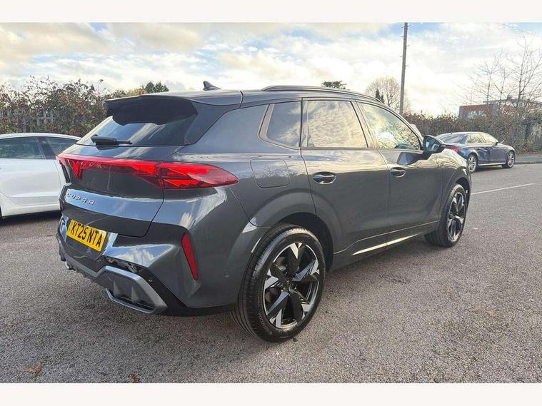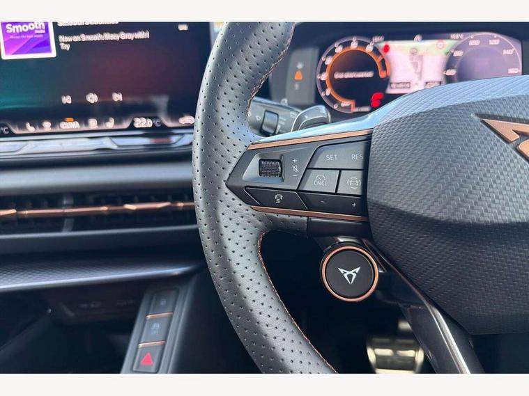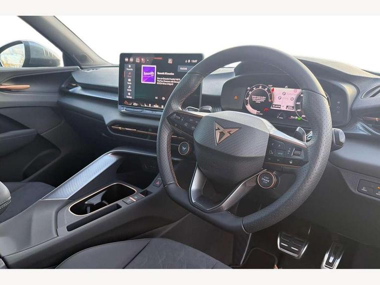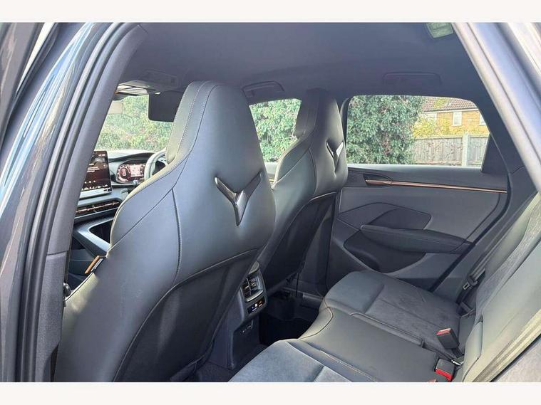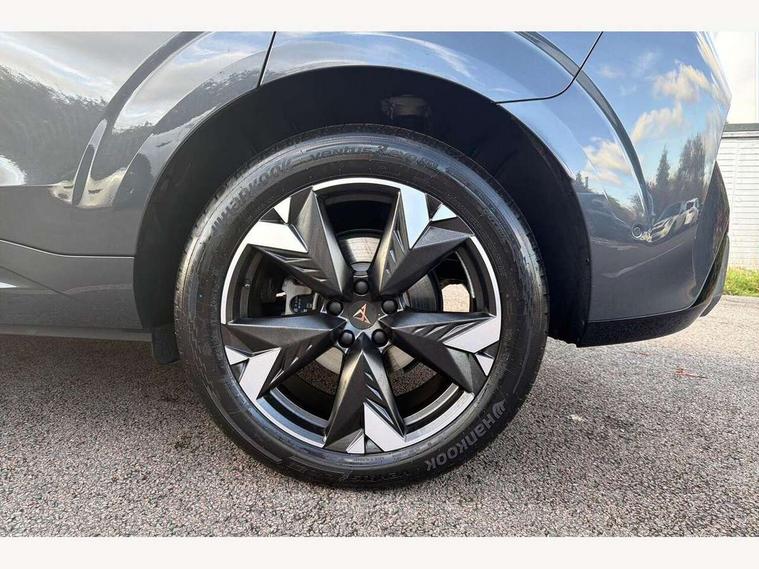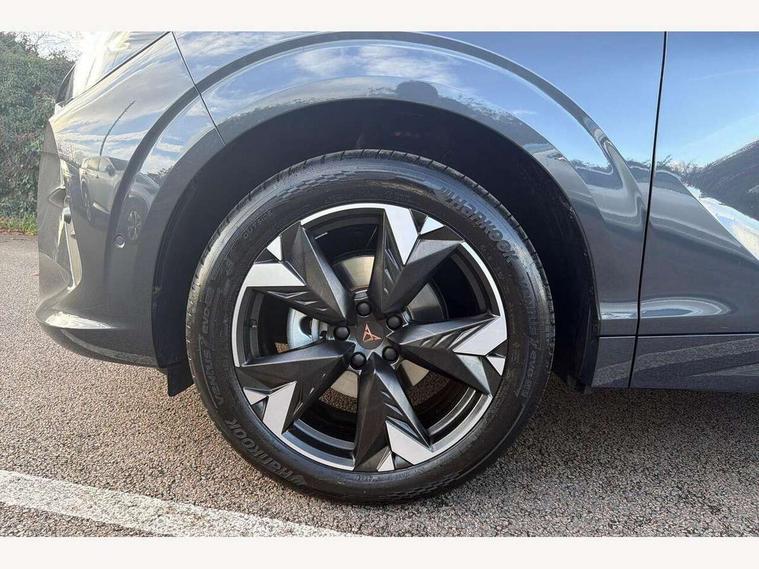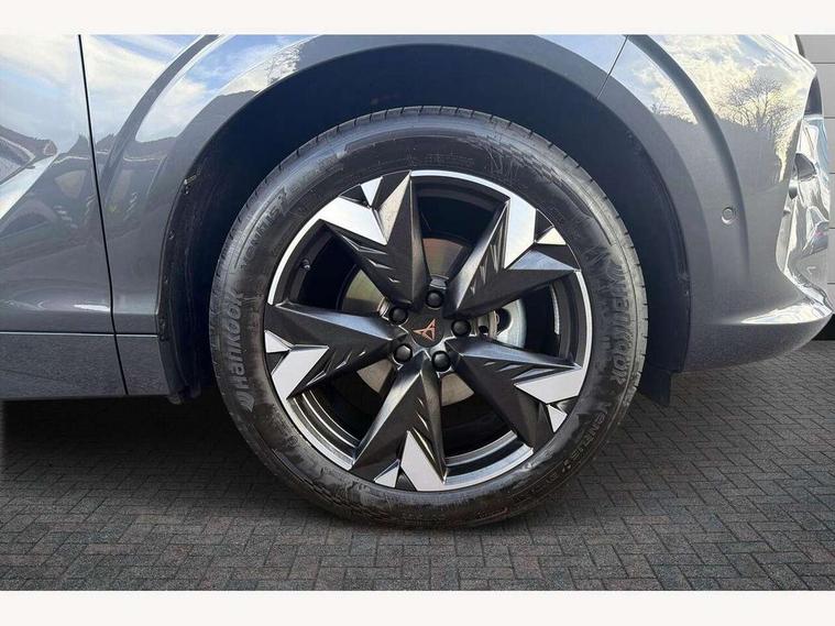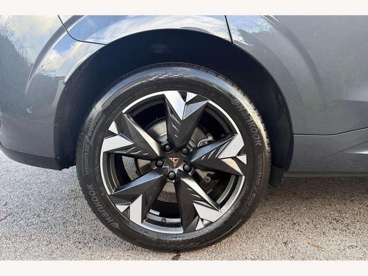 10.25" digital cockpit and configurable dashboard, Adaptive cruise control with follow-to-stop and speed limiter, Advanced driver alert system, Advanced lane assist with semi-automatic vehicle control in a medical emergency and traffic jam assist, Driving profile selection and conventional shock absorber, Dynamic road sign display, E-call, Electric tailgate with virtual pedal, Emergency steering support with turn assist, Four x USB Type C ports (2 in front and 2 in rear), Front and rear parking sensors, Front assist (Forward collision warning with automatic braking) with multifunction camera and front cross traffic assist, Head up Display, Intelligent park assist, Media system with Nav - 12.9" touch display, voice control, full link phone (wired/wireless), DAB and Steering wheel mounted controls, Rear traffic assist, Side and exit assist, Speed sensitive power steering, Start/stop system with regenerative braking, Top view camera (front camera, rear camera, 2 side cameras), Wireless phone charger, Auto dimming rear view mirror, Black roof rails, CUPRA 3D rear lights with ceremony & swiping indicator and illuminated logo, Dark tinted rear windows, Daytime running lights with automatic headlight control and Coming and Leaving home function, Door mirrors with memory function and lowing function on passenger mirror, Dynamic headlight range control, Electric front/rear windows, Electrically adjustable, heated and folding door mirrors, Front fog lamps with cornering function, Heat reflecting windscreen, High beam assist, LED headlamps with signature "CUPRA LED", Rain sensing wipers, Rear fog light on one side, back up light on both sides, Rear side wing doors, Rear wash/wipe, Third brake light, Welcome lights (within exterior mirror housing), 3 seat bench in 2nd row, Black roof lining, Cupra sports pedals, Dinamica cloth upholstery, Driver seat memory function, Electrically adjustable front seats including lumbar support, Front and rear head restraints, Front and rear reading lights X 4, Front centre armrest, Heated front seats, Heated leather wrapped multi function sports steering wheel with tiptronic, Illuminated interior front door sills, Isofix, Operating voltage 12V, Single front passenger seat, Smart wraparound interior lighting, Sunvisors with illuminated mirror, Three zone climate control with control panel in rear, Unsplit rear seat bench, split folding backrest, with centre armrest, Variable luggage/load compartment floor, 3 point seatbelts in front with pretensioner and electric height adjustment, 3 point seatbelts on all rear seats, Brake control system - ESC and brake booster, Child proof door locks, Driver and front passenger airbags, Electronic parking brake, Front and rear disc brakes, Front interaction airbag, Front passenger airbag deactivation switch, Front side airbags with curtain airbags, Pre-crash front and rear seat belt tensioner, window closure and hazard lights, Tyre pressure monitoring system, Visual and acoustic seat belt reminder, electric contact in front and rear, Anti theft alarm, Keyless locking and starting system with keyless access, Locking wheel bolts, Black decorative trims, Chrome interior detailing, 19" Spectrum exclusive machine alloy wheels, Tool kit,