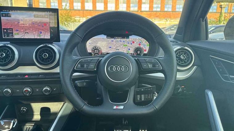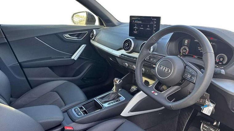 3D map display, Audi connect navigation and infotainment includes innovative services, Audi connect remote and control connects your vehicle to your smartphone, Audi drive select: S tronic - power steering assistance + engine + gearshift (modes: comfort, auto, dynamic, efficiency, individual), Audi smartphone interface - Apple carplay/Android Auto, USB connect, 2xSDXC card readers, voice control for navi, telephone, music and 3rd party apps, Audi virtual cockpit, Automatic start/stop system with recuperation, Bluetooth interface includes bluetooth audio streaming, Camera based traffic sign recognition, Cruise control, Distraction and Fatigue warning, E-call, Jukebox hard drive memory for music (10GB), Lane departure warning, MMI navigation plus with 8.8" touchscreen, Natural voice recognition, Power operated tailgate, Progressive steering, Rear parking sensors, Sport suspension, 6 passive loudspeakers, DAB Digital radio, USB type C port, Audi beam, Auto dimming rear view mirror, Black window trims, Bumper in full body colour paint finish, Electrically adjustable, folding, auto dimming and heated door mirrors with integrated LED side indicators, Front windscreen with grey tinted sunband, LED daytime running lights, LED headlights with dipped beam, high beam, position lights, indicators, LED rear lights, LED third brake light, Privacy glass - dark tinted rear and rear side windows from B-pillar backwards, Rear side wing doors, Rear wiper, Variable front intermittent wipers, Wheel arch trims in manhattan grey, 12V socket in front, 3 seat bench in 2nd row, 3 spoke flat bottomed multi-function leather sport steering wheel with gear shift paddles, 4-way electric lumbar support for front seats including manual seat height adjustment for both front seats, 60/40 split folding rear seat bench, Black carpets, Black cloth headlining, Front and rear head restraints, Front centre armrest, Front sport seats, Front/rear floor mats, Height/reach adjust steering wheel, Illuminated door sill trims with S logo, ISOFIX child seat mounting in front passenger and rear outer seats, Manual air conditioning, Single front passenger seat, Stainless steel pedals, Black styling pack - Q2, 3x3 point rear seatbelts, 6 airbags - Front, curtain and front side airbags, Electromechanical parking brake, Electronic stabilisation control including ABS, ASR and EDL, Front passenger airbag deactivation, Hill hold assist, Pre-sense front with pedestrian recognition, Seatbelt monitoring, Tyre pressure warning light with visual and acoustic warning, Warning triangle and first aid kit, Anti theft alarm, Anti theft wheel bolts, Electronically operated child locks, Remote central door locking, Aluminium interior element, Black dashboard, Gloss black centre console, Matt brushed aluminium trim inlays, Tool kit,