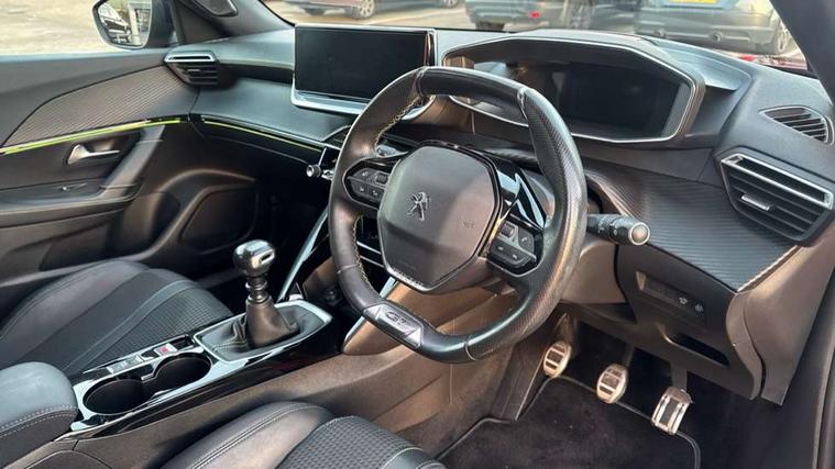 10" Capacitive colour touchscreen with connected 3D navigation with Piano keys gloss black plated toggle switches to access touchscreen, Bluetooth telephone facility, Driver attention warning, Exterior temperature indicator with ice warning, Front and rear parking sensors, Lane keep assist, Mirror screen with mirror link, apple carplay and android auto, Multi function trip computer, PEUGEOT i-Cockpit with compact steering wheel, PEUGEOT i-Cockpit with configurable 3D headup instrument panel, PEUGEOT SOS and assistance, Push button start, Smart phone docking station, Smartphone charging plate, Speed limit recognition and recommendation, Visio Park 1 with 180 degree Colour reversing camera, 2 front USB socket with USB-C, 2 USB sockets in rear, 6 speakers radio with mp3 compatible, DAB Radio (Digital Audio Broadcasting), Voice recognition for radio, navigation and telephony features, 2 X Rear number plate lights, Automatic hazard light activation upon heavy brake application, Black front wing trim with gloss black detail and GT line badging, Body coloured exterior door handles, Chrome exhaust tailpipe, Chrome front lower bumper, Dark tinted rear side and tailgate windows, Diamond black rear spoiler (roof), Electric, heated, and power folding door mirrors, Frameless electrochrome interior rear view mirror, Front windscreen wiper, Full LED headlights with smartbeam assist, Gloss black finish on B pillar, Gloss black rear cluster connecting strip, Gloss black roof bars, Gloss black window surround, GT Line model designation badging on tailgate, Headlights left on audible warning, LED daytime running lights with 3 claw headlight with distinctive tooth design, LED front fog lights, LED side indicator lights integrated into door mirrors, Model designation badges front and rear, Nera black door mirror shells, One touch electric front/rear windows with pinch protection, Radiator grille - Dark chrome chequered and gloss black edge trim, Rear full LED 3D peugeot signature claw effect lights with daylight function, Rear reversing lights, Rear windscreen wiper triggered automatically in reverse gear, Stainless steel door sill scuff plates, Tailgate with heated rear windscreen and wiper blade, Wheel arch extensions, 1/3 to 2/3 split folding rear seats, 12V socket, 8 Colour personalisable ambient lighting, Aluminium pedals, Automatic air conditioning, Central front armrest with storage compartment, Driver and front passenger seat manual adjustment in longitudinal and back rest angle, Driver and front passenger seat mechanical height adjustment, Driver and front passenger sport seats, Electric power steering with reach and rake adjustable steering column, Front and rear carpet mats in black with lime green stitch detail, Front LED interior light with 2 reading spotlights and rear interior light with timer, Gear lever - manual in satin chrome, Gear shift indicator, Heated front seats, High centre console, ISOFIX child seat mounting points on passenger seat, Lime green contrast stitching to front centre console, door panels and dashboard facia, Mistral full grain perforated leather steering wheel with aikinite stitch detail and satin chrome 'GT Line' emblem, Modular boot floor, Piano keys gloss black plated toggle switches to access main functions of the vehicle, Roof lining - Mistral black, Seatbelt unfastened on the move audible and visual alert for front and rear seats, Visibility pack - 2008, 2x 2nd row ISOFIX child seat mountings, ABS (Anti-lock Braking System) with EBD (Electronic Brakeforce Distribution) and EBA (Emergency Braking Assistance), Active safety brake with night function/cyclists/pedestrians, Adaptive driver and front passenger airbags with passenger airbag deactivation function, Child locking functionality on rear doors, Driver/front passenger side airbags, Electric parking brake, ESP (Electronic Stability Program) + Hill Start Assist, Front and rear curtain airbags, Front and rear disc brakes, Front and rear three-point retractable seatbelts, with force limiters, Front optimised safety headrests and rear retractable headrests (x3), height adjustable, Tyre pressure sensor, Automatic door locking when moving off, Deadlocks, Electronic code immobiliser, Thatcham Cat.1 alarm, Carbon effect Dashboard, front and rear door panel finish, 18" Bund diamond cut alloy wheels,