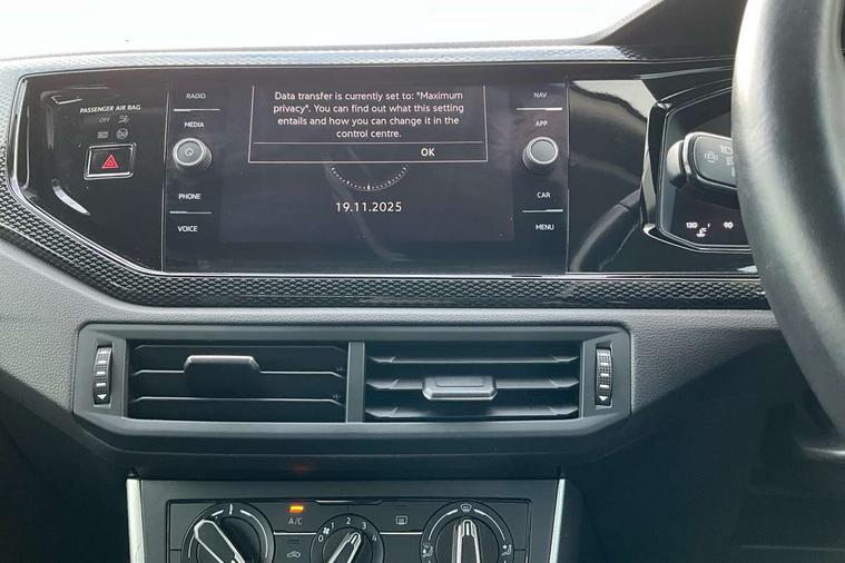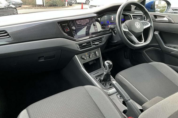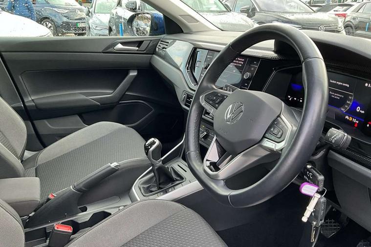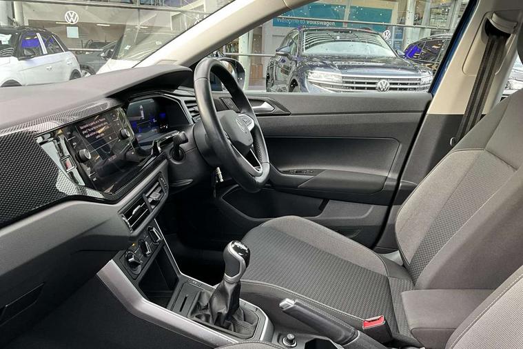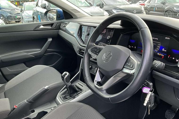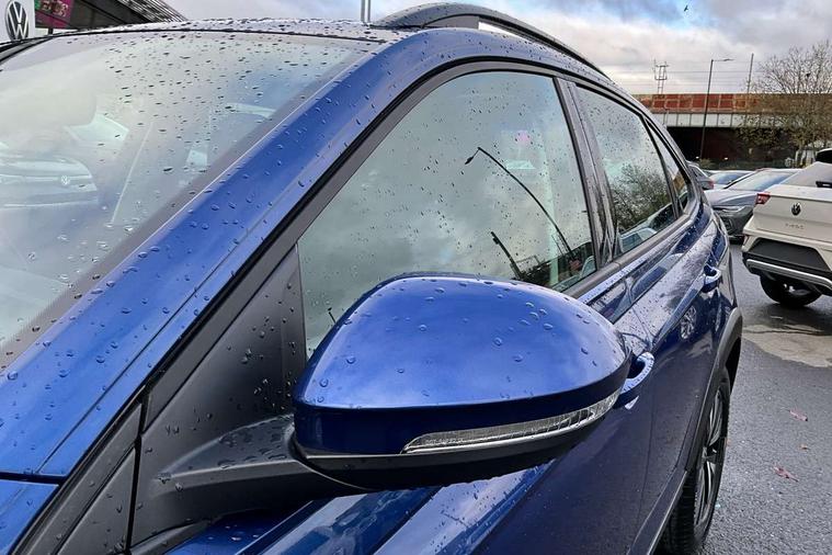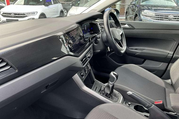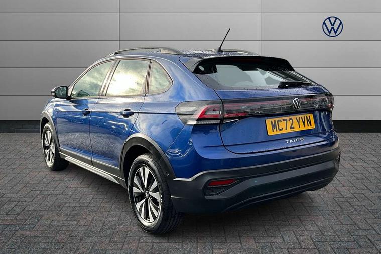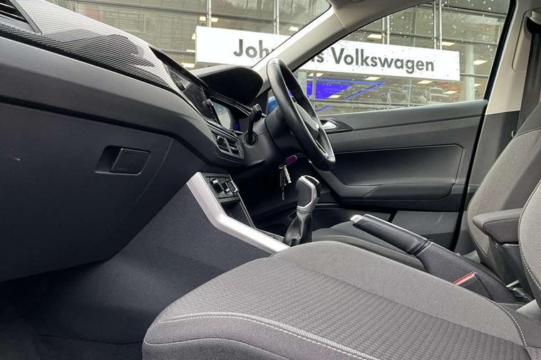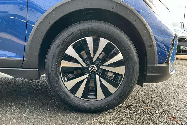 Driver alert system, e-Call (emergency call), Power Steering, Travel assist including emergency assist, Washer fluid level indicator, Wireless Charging including Bluetooth, Start-stop system with battery regeneration (recuperation - energy recovery during braking), WeConnect plus, Ambient lighting with logo projection, Aspherical driver's exterior mirror, Auto headlights, Body coloured bumpers, Body coloured exterior mirror housings and door handles, Electric windows, External USB type C socket and charging sockets, Front fog lamps with cornering function, Headlight range control, Heat insulating glass windscreen, LED headlamps, LED rear combination lamp, LED third brake light, Left convex exterior mirror, Power folding adjustable/heated exterior mirrors and front passenger exterior mirror lowering function, Rear fog light on one side, reversing light on both sides, Rear side wing doors, Rear wash/wipe with intermittent wipe setting, 'Slash/ Austin' Cloth upholstery, 12V socket in centre console, 2 front reading lights, 3 rear head restraints, 3 seat bench in 2nd row, Black carpets, Child seat anchor for child seat system i-Size, 2x top tether and child seat anchor in front on front passenger side, Door and side trim panels in titan black, Driver and front passenger seat height adjustment, Front centre armrest, Handbrake lever handle in leather, Height and reach adjustable steering wheel, Leather trimmed gear knob, Leather wrapped multifunction steering wheel, Luggage compartment floor, Luggage compartment light, Lumbar support for driver's and front passengers seat, Seat covers in titanium black, Single front passenger seat, Split folding backrest with centre armrest and unsplit rear seat bench, Storage compartment under front seats, Sun visors with illuminated vanity mirrors, Chrome Package - Taigo, Drivers assistance pack - Taigo, Light and Sight pack including High beam assist - Taigo, 2 x 3-point seatbelts/outer rear seats with ECE label, 3-point seat belts in front with pretensioner and height adjustment, 3-point seatbelt for centre rear seat, Driver and front passenger airbags with front passenger airbag de-activation, front side and curtain airbags, Driver and front passenger safety-optimised head restraints, Electronic stability control, Extended and predictive pedestrian/ cyclist protection, Front and rear disc brakes, Front curtain and side airbags with center airbag, Hill start assist, Manual rear child locks, Single tone horn, Tyre pressure loss indicator, Anti-theft alarm system with interior monitoring, backup horn, and towing protection, Anti-theft wheel bolts, Lava stone black gloss/matt decorative inserts in dash and front door panels, Low rolling resistance tyres,
