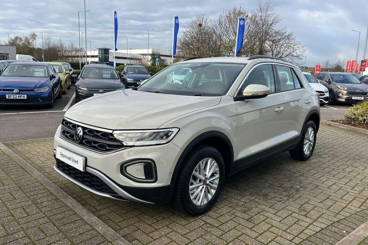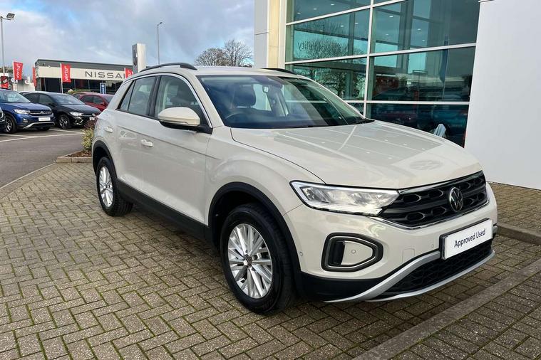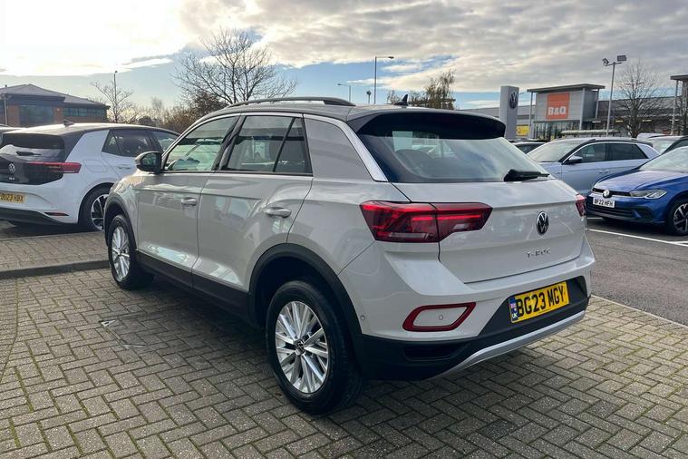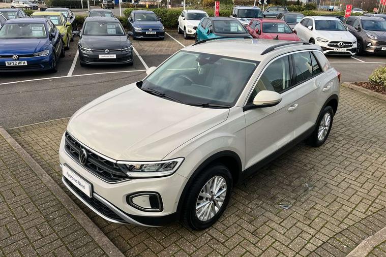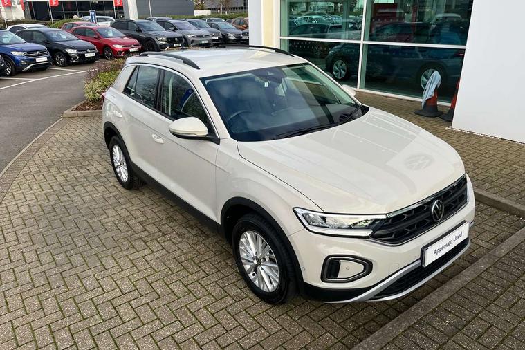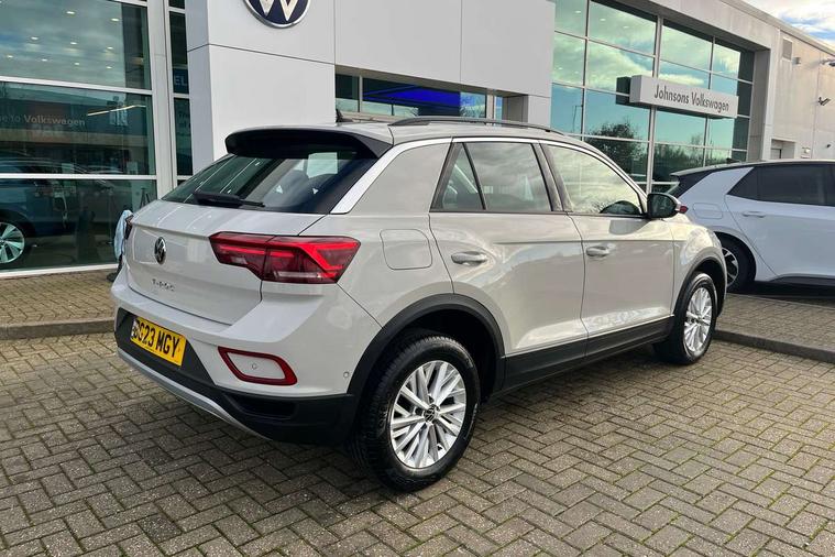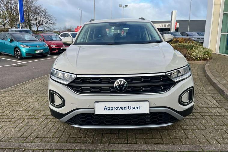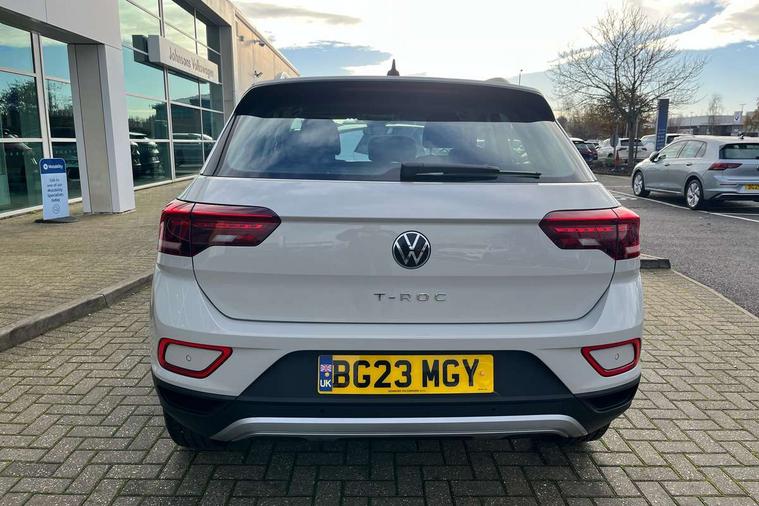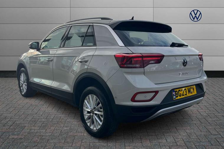 Bluetooth mobile phone interface, Driver alert system with fatigue detection, Driver tips and journey analysis, Emergency call service, Lane keeping system Lane Assist, Modified key software - reduce switch off time for key status change to Long no motion, Online services, Park assist including front and rear parking sensors, Power assisted speed sensitive steering, Service interval indicator, Tailgate/trunk lid release from outside, Think blue trainer driver tips and journey analysis, Warning sound and light for front seatbelts unfastened, Wireless app connect, Battery regeneration during braking, Front shock absorption, Rear shock absorption chassis with increased ride height, Start/stop function with battery regeneration, DAB Digital radio, Diversity antenna for FM reception, Front and rear 6 speakers, Music playback - MP3, WMA and AAC files, Premium USB cable in choice of either Apple or Android smartphone compatibility, SD card slot, Simultaneous pairing of 2 compatible mobile devices, Title and cover art display, We Connect and We Connect Plus functionality, 3rd brake light, Auto dimming interior rear view mirror, Automatic hazard lights activation under emergency braking, Automatic headlight control with LED separate daytime running lights with coming/leaving home function, Black roof rails, Body coloured bumpers and radiator grille with chrome trim and front fog lamps with chrome bezel, Body coloured exterior mirror housings and door handles, Extended roof spoiler, Exterior mirrors aspherical on driver side, convex on front passenger side, External USB type C socket and charging sockets, Front windscreen wiper with intermittent wipe and 4 position delay, Heated rear window, LED Headlights, LED rear combination lamps, LED rear number plate lights, LED tail lamp rear comination lamps, Power windows with comfort operation and circuit breaker, Rain sensor, Rear exhaust tailpipe, Rear fog light on one side and reversing lights on both sides, Rear side wing doors, Rear wash/wipe with intermittent wipe setting, Remote electrically foldable door mirrors, puddle lights and reverse activated passenger's door mirror, 12V power socket in centre console, 3 rear head restraints, 3 seat bench in 2nd row, 4 load lashing points in luggage compartment, Air care climatronic air conditoning system with active combination filter and 2-zone temperature control, Ambient lighting with mirror logo projection, Cloth upholstery, Door and side trim panel in cloth, Drawer under drivers seat, Driver/front passenger seat height adjustment, Front centre armrest, Front comfort sports seats, Front cupholders x 2, Front reading light, Instrument lighting, white adjustable panel illumination, Interior light delay, Isofix child seat preparation, Leather gearshift handle, Load-through provision with cup holder when folded down ('Unsplit rear seat bench, split folding backrest, with centre armrest), Luggage compartment lighting, Lumbar support for driver's and front passengers seat, Non-folding front passenger seat backrest, Single front passenger seat, Storage compartment in left and right luggage area, Storage compartment in rear doors, Storage compartments in driver and front passenger doors, Sunvisors with illuminated vanity mirrors, Variable boot floor, height adjustable and removable, Driver assistance pack without proactive passenger protection - T-Roc, 3 point height adj front seatbelts + pretensioners, 3 point seatbelts in outer rear with ECE label, ABS, Child locks on rear doors, Driver and front passenger airbag with front passenger airbag deactivation, Driver and front passenger safety-optimised head restraints, Drivers seatbelt reminder, Electronic parking brake, Electronic Stability Control (ESC) inc EDL (Electronic Differential Lock) and ASR (Traction Control), Front and rear passengers curtain airbag system including front side airbags, Front assist with city emergency braking and pedestrian monitoring, Front disc brakes, Front seat side impact airbags, Hill start assist, Predictive pedestrian protection, Rear disc brakes, Single tone horn, Tyre pressure loss indicator, Volkswagen roadside assistance, Alarm with interior protection, Anti-theft alarm system with interior monitoring, backup horn, and towing protection, Remote central locking with SAFELOCK, radio remote control with 2 remote control folding keys, Pewter matt decorative inserts for intrument panel, centre console and door panels at the front, Trims for alloy wheels,