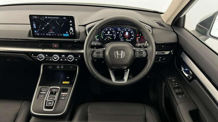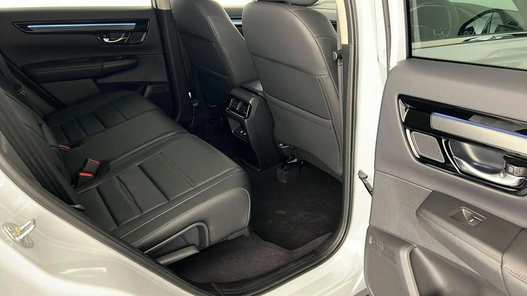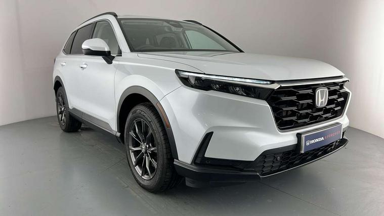 10.2" Multi information display, 4 x front and 4 x rear parking sensors, Active lane change assist, Adaptive cruise control with Cornering speed assist, Adjustable speed limiter, Agile handling assist, BLIS (Blind Spot Information System) with Cross Traffic Monitor, Bluetooth hands free telephone connection, Crossing traffic warning front, Drive mode (Econ, Normal, Snow, Sport), Driver attention monitoring system, E-call, eCall emergency call system, Electric power steering, Emergency stop signalling system, Forward collision warning, Handfree power tailgate with kick sensor and walk away close, HEV mode, Honda 360 sensing, Honda CONNECT with Navigation 9" touchscreen, AM/FM/DAB, Apple Carplay and Android Auto, live traffic info, Intelligent speed limiter, Lane change collision mitigation, Lane departure warning system, Lane keep assist system, Lane watch, Lead car departure notification system, Low speed following, Power meter, Rear view camera, Road departure mitigation, Traffic jam assist, Traffic sign recognition, Wireless apple carplay, Wireless charging, Amplitude reactive damper, Vehicle stability assist, 1X USB (A/2.5A) and 1x Charger (C/3A) on Front, 8 Speakers, DAB+ radio, Dashboard centre speaker, Front tweeters, Premium audio speakers, Rear USB 2x Charger (C/3A), Steering wheel mounted controls, Auto dimming rear view mirror, Auto headlights, Auto wipers, Body colour bumpers, Body colour door handles, Body colour plus material colour roof spoiler, Body coloured shark fin antenna, Chrome + black paint grille, Electrically adjustable and heated door mirrors, Electrically folding door mirrors, Exhaust pipe finisher, Exterior mirror tilt for reverse, Front and rear electric windows, Front LED Indicator lights, Front turn type led with sequential, Headlight auto on/off timer, High beam assist, LED 3rd brake light, LED daytime running lights, LED front fog lights, LED Headlights, LED rear lights, Low gloss black window garnish, Panoramic opening glass sunroof, Privacy glass, Rain sensor, Rear side wing doors, Rear wiper, Roof rails, Trailer stability assist, Welcome home function, 3 seat bench in 2nd row, 4 way driver lumbar support, 4 way electrically adjustable passenger seat without height adjust, 60/40 split folding rear seat, 8 way electrically adjustable drivers seat, Accessory sockets in Front & Trunk, Air conditioning - Rear vent, Ambient light in roof, Cargo net hooks, Courtesy lights, Driver and front passenger seat armrests, Driver/passenger front seatback pockets, Driver/passenger sunvisors and vanity mirrors, Driver/passenger sunvisors with illuminated vanity mirrors, Dual zone automatic climate control, Film hairline interior panels, Footwell ambient interior light front and rear, Front and rear ambient light (door handle&door line) and front cup holder, Front centre armrest, Front map lights, Genuine leather steering wheel, Heated front seats, Heated steering wheel, Hybrid emblem, I-Size ISO Fix Points, Instrument panel with garnish wood film, Leather upholstery, Light roof lining, Luggage floor box, Meter illumination, Normal pedals, Platinum chrome interior door handles, Rear centre armrest, Rear headrests, Rear reading lights, Reclining rear seats, Single front passenger seat, Sunglasses holder, Synthetic headrest, Tilt/telescopic adjustable steering wheel, Tonneau cover, Trunk light, Exclusive styling pack - CR-V, 5 x 3 point seatbelts, ABS/EBD, Anti-whiplash front headrests, Brake assist function, Collision mitigation braking system, Deflation detection system, Driver airbag, Driver SRS airbag (single stage inflation), Electronic parking brake with auto hold, Front and rear collision mitigation throttle control, Front and rear curtain airbags, Front and rear seat belts with emergency locking retractor (ELR), Front centre airbag, Front passenger airbag, Front side airbags, Hill descent control, Hill start assist, Knee airbags (DR) and (AS), Low speed brake system, Manual child lock in rear doors, Paddle deceleration control, Passenger SRS airbag with cut off switch, Rear side airbags, Honda super locks, Immobiliser, Mirrors and windows key fob operation, Remote central locking with 2 key fobs, Security alarm, Selectable door unlock, Smart entry + Smart start, Tilt sensors, Ultrasonic security sensor, Flat tyre solution temper tyre/repair kit,