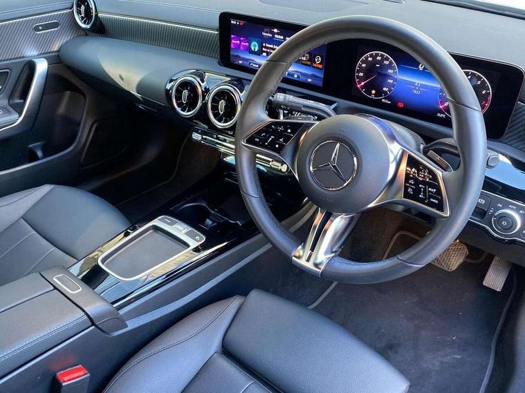 10.25 inch Instrument display with digital cockpit, 10.25 inch touchscreen central media display, Active lane keeping assist, Attention assist - Monitors steering behaviour and long journey fatigue, Bluetooth connection, Car wash mode, Cruise control with limiter, Direct steer system, DYNAMIC SELECT with a choice of driving modes (ECO, Comfort, Sport and Individual), ECO start/stop function, Fluid level warning indicator for fuel, oil, coolant and washer fluid, Hard-disk navigation, Hey Mercedes Voice activation, Lamp failure indicator, Mercedes me connect including emergency call system, accident recovery, breakdown and maintenance management, Mercedes me remote services, Outside temperature gauge, Owners manual in English, Pre-installation of private car share, Radio aerial integrated into front and rear windshields, Service indicator (ASSYST), Smartphone integration with Apple CarPlay and Android auto, Speed limit assist, Trip computer in multifunction display with current consumption indicator, Comfort suspension, Rear axle multi-link, DAB digital radio tuner, MBUX multimedia system, Mercedes Benz sound system (100 W) with 6 speakers, Pre installation for Mercedes Benz Link, Adaptive brake lights, Body colour door handles (Chrome insert with Keyless entry), Chrome beltline strips, Electric windows, Electrically adjustable and heated door mirrors with integrated LED indicators, Exhaust system with 2 Visible tailpipe trim elements and rear apron with trim in chrome, Headlamp assist automatic headlamp activation, Heated glass rear windscreen + timer control, High level LED third brake light, Interior mirror with black reading lamps and frameless, LED high performance headlamps with integrated LED daytime running lights and adaptive highbeam assist, LED tail lamp, Privacy glass with dark tinting on rear side windows and rear window, Progressive body-styling - Front apron with trim strip in chrome, visible tailpipe trim elements and rear apron with trim strip in chrome, Radiator grille with Mercedes-Benz pattern in high-gloss black and central Mercedes star, single louvre in matt grey with chrome inserts, Rain sensing windscreen wipers with two sensitivity settings, Rear boot, Rear fog lamp, Rear side wing doors, Variable front intermittent wipers, Window line trim strip in chrome, 3 seat bench in 2nd row, 3 spoke ARTICO man made leather multi function sports steering wheel with black grained gearshift paddles, oeration via touch control panels, 4 way lumbar support, 40:20:40 split folding rear seat backrests, Air conditioning - One zone THERMATIC automatic climate control with automatically controlled air distribution, Air vents with surround in silver chrome, Artico man-made leather upholstery, Automatic child seat recognition sensor, Black roof lining, Brushed stainless steel sports pedals with rubber studs, Comfort seats, Fluorescent jacket, Front centre armrest with stowage, Front head restraints, Heated front seats, Luggage net on driver/front passenger seat backrest, Manually height and reach adjustable steering column, Rear head restraints, Single front passenger seat, Stowage compartment in centre console with retractable cover, Sunvisors with illuminated vanity mirrors, Twin front cupholders, Two outer rear seat isofix and top tether child seat fixing points, Velour floor mats, Light and sight pack - CLA, Mirror pack - CLA, Parking pack with reversing camera - CLA, Seat comfort pack - CLA, USB package plus - CLA, Active bonnet pedestrain safety measure which detects an impact and raises bonnet by 65mm, Active brake assist includes forward collision warning system with autonomous braking, Adaptive brake assist with hold function and hill start assist, Anti lock braking system (ABS) with brake assist, Black seat belts, Bonnet with power domes, Brake pad wear warning indicator, Childproof locks manually operated for rear doors and electrically operated for rear power windows, Crash responsive emergency lighting, Driver and front passenger head and sidebags, Driver and front passenger windowbags, Drivers knee airbag, Dual stage driver and front passenger airbags, Electric parking brake, Electronic stability programme with acceleration skid control, ESP curve dynamic assist, Front and rear seatbelt reminder, Front passenger seat occupancy sensor, Three point rear seat belts, Tyre pressure monitoring system, Warning triangle and first aid kit, Alarm system with immobiliser and interior protection -Thatcham category 1, Guard 360 deg vehicle protection - tow away protection with visual, acoustic warning, interior monitoring, preinstallation for parking damage, Remote central locking and crash sensor with emergency opening function, Dark carbon fibre look trim, 18" multi-spoke himalayas grey painted light alloy wheels with high sheen rim finish, Summer tyres, Tirefit tyre sealant kit,