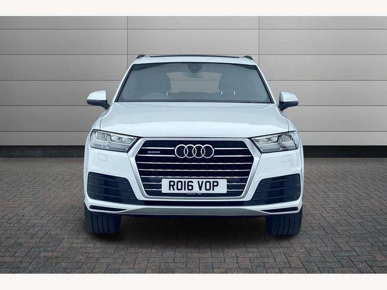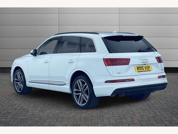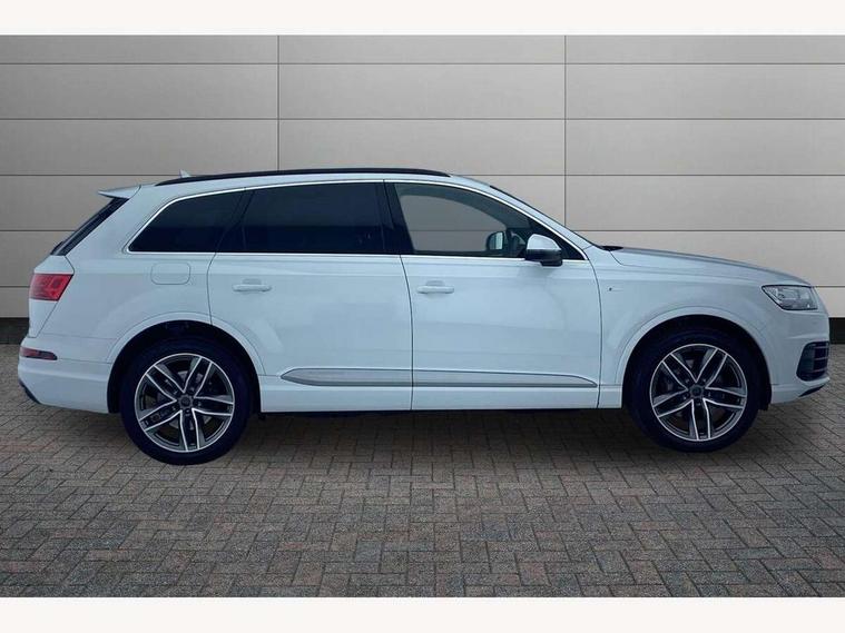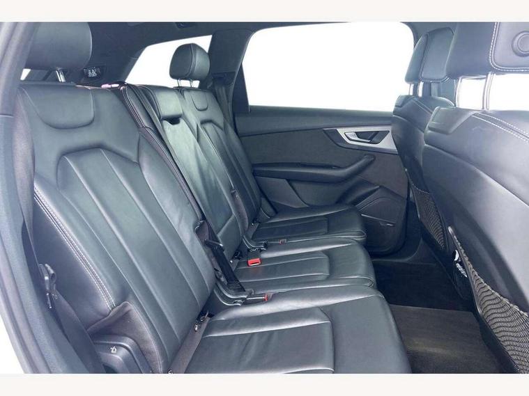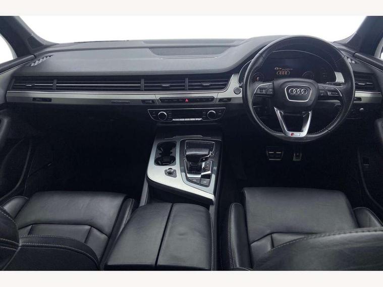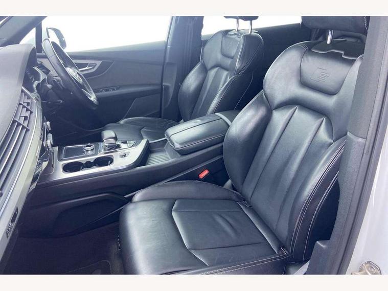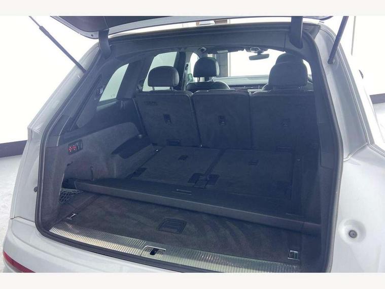 Audi drive select, Audi smartphone interface, Electro-mechanical PAS, MMI - Multi Media Interface control system, MMI navigation plus with touch and 8" colour display, DVD, SD card reader, 10GB music storage, Mobile phone preparation with bluetooth interface, Remote electric boot opening/closing, Service interval indicator, Speed limiter, Voice control system, 2 USB ports, Audi music interface, Aux-in socket, CD player, DAB digital radio module, MMI radio plus, SD card slot, Adaptive lights, Auto dimming rear view mirror, Body coloured bumpers, Dynamic rear indicators, Electric front+rear windows, Green tinted heat insulating glass, Headlight washers, LED daytime running lights, Loading sill protector in stainless steel, Platinum grey front lip spoiler, Rain and light sensors, Rear wiper, Roof spoiler, S Line body styling, 2 cupholders in front centre console, 35/30/35 split fold 2nd row seats, 4 way electrically adjustable lumbar support for drivers seat, 4 way electrically adjustable lumbar support for front passenger seat, Door sill trims with S line logo, Electric adjustable front seats, Four zone electronic climate control, Front centre comfort armrest with storage + cupholders, Front head restraints, Front sports seats, Front/rear floor mats, Gearshift paddles, Heated front seats, ISOFIX on front passenger and rear outer seats, Leather gear knob, Rear centre armrest with 2 cupholders, Rear headrests, Stainless steel pedals, Sunvisors with illuminated vanity mirrors, Top tether anchor plate for isofix child seat, Interior light pack - Q7, 3 point seatbelts on all seats, ABS+Electronic Brake force Distribution, Curtain airbags, Driver and passenger airbags, EDL + ASR, Electrically operated child locks on rear doors, Electromechanical parking brake, ESP, Front passenger airbag deactivation, Front side airbags, Hill descent control, Hill hold assist, Seatbelt warning, Traction control, Tyre pressure monitoring system, Warning triangle and first aid kit, Alarm with interior monitoring, Immobiliser, Keyless Go access/ignition system, Locking wheel bolts, Remote central locking, Chrome door inserts, Tool kit,