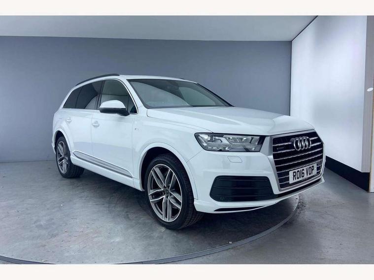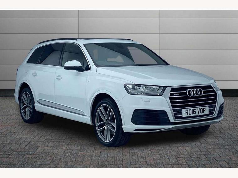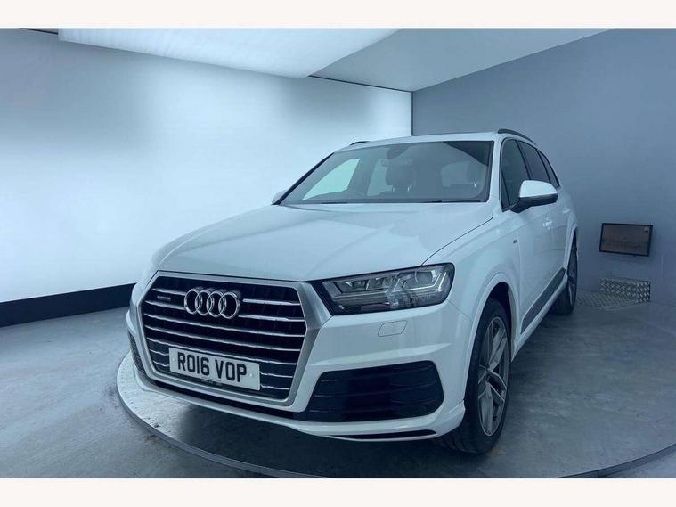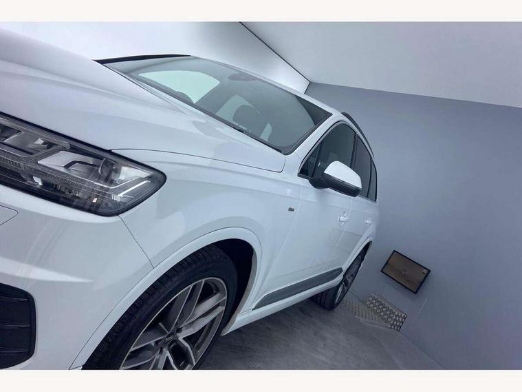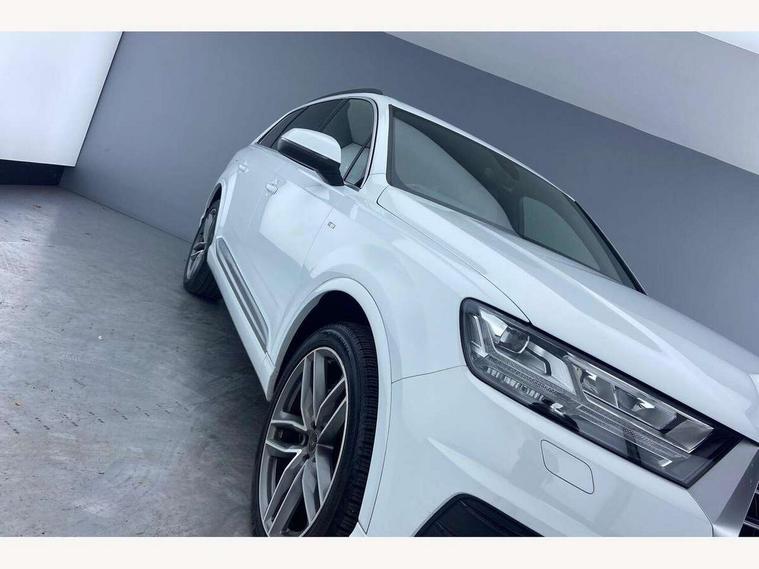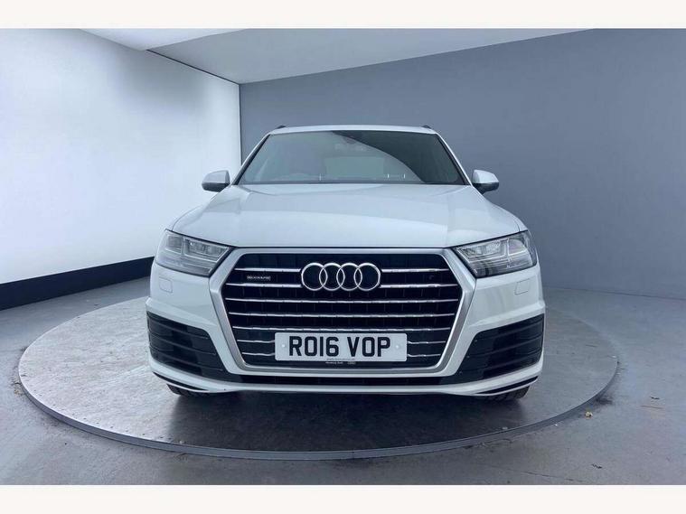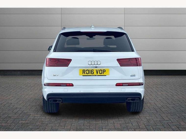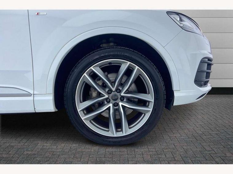 Audi drive select, Audi smartphone interface, Electro-mechanical PAS, MMI - Multi Media Interface control system, MMI navigation plus with touch and 8" colour display, DVD, SD card reader, 10GB music storage, Mobile phone preparation with bluetooth interface, Remote electric boot opening/closing, Service interval indicator, Speed limiter, Voice control system, 2 USB ports, Audi music interface, Aux-in socket, CD player, DAB digital radio module, MMI radio plus, SD card slot, Adaptive lights, Auto dimming rear view mirror, Body coloured bumpers, Dynamic rear indicators, Electric front+rear windows, Green tinted heat insulating glass, Headlight washers, LED daytime running lights, Loading sill protector in stainless steel, Platinum grey front lip spoiler, Rain and light sensors, Rear wiper, Roof spoiler, S Line body styling, 2 cupholders in front centre console, 35/30/35 split fold 2nd row seats, 4 way electrically adjustable lumbar support for drivers seat, 4 way electrically adjustable lumbar support for front passenger seat, Door sill trims with S line logo, Electric adjustable front seats, Four zone electronic climate control, Front centre comfort armrest with storage + cupholders, Front head restraints, Front sports seats, Front/rear floor mats, Gearshift paddles, Heated front seats, ISOFIX on front passenger and rear outer seats, Leather gear knob, Rear centre armrest with 2 cupholders, Rear headrests, Stainless steel pedals, Sunvisors with illuminated vanity mirrors, Top tether anchor plate for isofix child seat, Interior light pack - Q7, 3 point seatbelts on all seats, ABS+Electronic Brake force Distribution, Curtain airbags, Driver and passenger airbags, EDL + ASR, Electrically operated child locks on rear doors, Electromechanical parking brake, ESP, Front passenger airbag deactivation, Front side airbags, Hill descent control, Hill hold assist, Seatbelt warning, Traction control, Tyre pressure monitoring system, Warning triangle and first aid kit, Alarm with interior monitoring, Immobiliser, Keyless Go access/ignition system, Locking wheel bolts, Remote central locking, Chrome door inserts, Tool kit,
