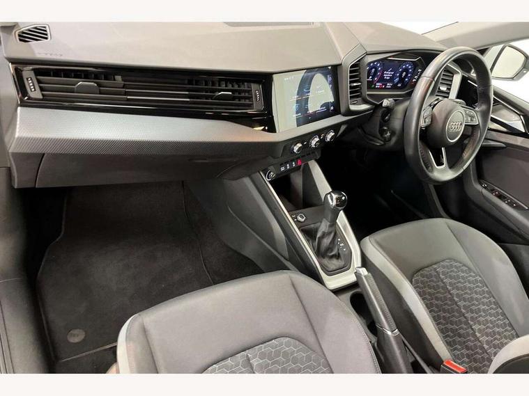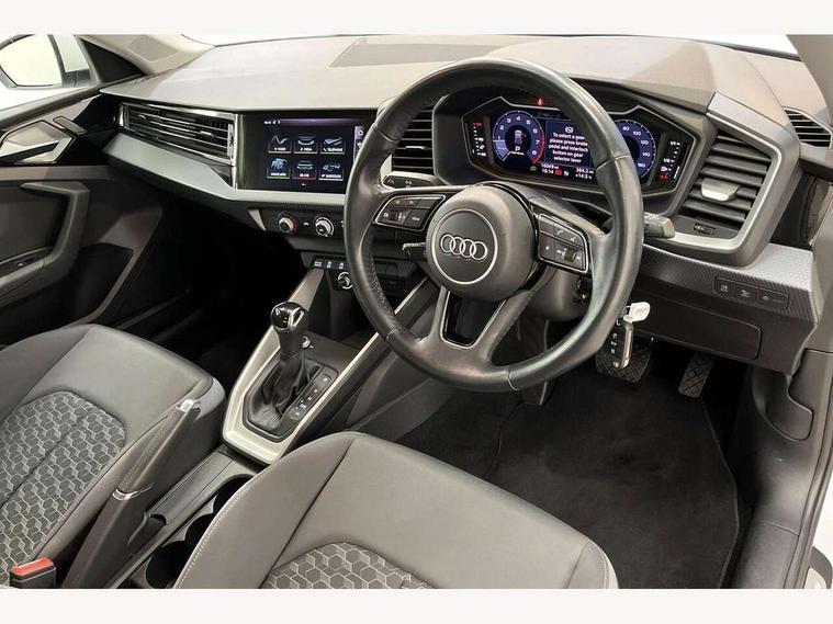 10.25" Digital instrument cluster display classis style instrument dials + speed, odometer, time, outside temperature, telephone menu + fuel level warning, Audi connect safety emergency and service including E-call, Audi drive select - power steering assistance + engine + gear shift 3 preset modes (auto, dynamic, efficiency and an Individual mode), Audi smartphone interface with connect compatible smartphone via USB directly MMI display + Nav, music, third party apps controlled via MMI controller, Automatic start/stop system, Bluetooth interface, Cruise control, Driver's information system, Electromechanical power steering, Lane departure warning system, Rear parking sensor, Service interval indicator, Speed limiter, Voice control system, Washer fluid level indicator, Dynamic suspension, 1 x SDXC card reader, 1 x USB type C and 1 USB type A charging points, DAB Digital radio, MMI radio plus with 8.8" colour MMI display screen and MMI touch, Auto dimming rear view mirror, Body coloured bumpers, Body coloured door mirrors, Electric front and rear windows, Electrically adjustable, heated, folding door mirrors with integrated LED side indicator, Front side air inlets in grained matt black and C frame in titanium black, Heat insulating glass windscreen and side windows, Heated rear windscreen, LED headlights with LED rear lights + dynamic rear indicators + headlight adjustment and high beam, turning light + LED daytime running lights, Radiator grille and rear diffuser in matt titanium black, Radiator protective grille frame in matt aluminium silver, Rain and light sensors, Rear fog lights, Rear wiper, Scandium grey tailpipe trim, Side front spoiler lips in grained matt black, 12V socket in centre console with two cup holders, 3 rear seats with headrests, 40:60 Split folding rear seat or folded fully, Door sill trims with aluminium inlay, Driver and passenger seat with manual height adjust with forward and backwards adjustment, Front head restraints, Front/rear floor mats, Height and reach adjustable steering wheel, ISOFIX child seat mounting for front passenger and outer rear seats including top tether attachment point of outer rear seats, Leather gear knob with aluminium trim, Leatherette handbrake grip, Luggage compartment light with front and rear reading lights, Manually adjustable lumbar support in front seats, Novum cloth upholstery with front sport seats, Titanium grey cloth headlining, Luggage compartment pack - A1, 3x3 point rear seatbelts, Audi pre-sense front with pedestrain and cyclist recognition, Brake assist function, Driver and front passenger airbag with front side and head airbags, Electronic Stability Control including ABS, EBD, ASR and EDL, Front and rear seatbelt reminder, Front passenger airbag deactivation switch, Hill hold assist, Seatbelt height adjustment for front seats, Seatbelt monitoring, Tyre pressure warning light, Warning triangle and first aid kit, Anti theft alarm, Anti theft wheel bolts and loose wheel warning, Immobiliser, Remote central locking with 2 foldaway keys, Aluminium trim for control switches, air vents and digital instrument cluster, Silver grey accent areas including air vents, door handle recesses and centre console in diamond paint finish, Slate grey inlays polygon structure in fine paint finish,