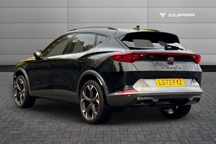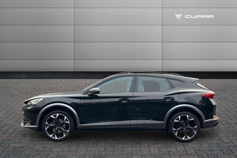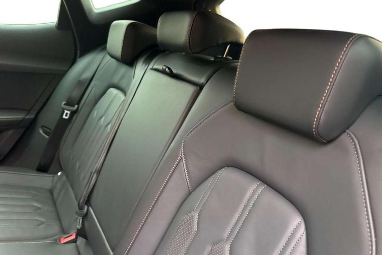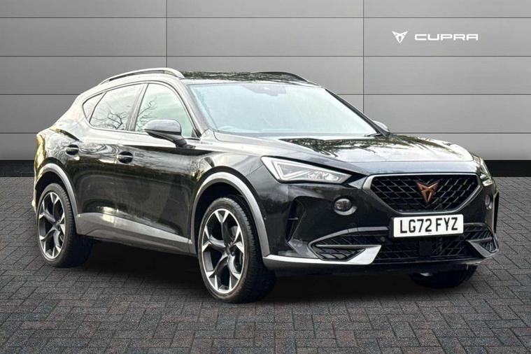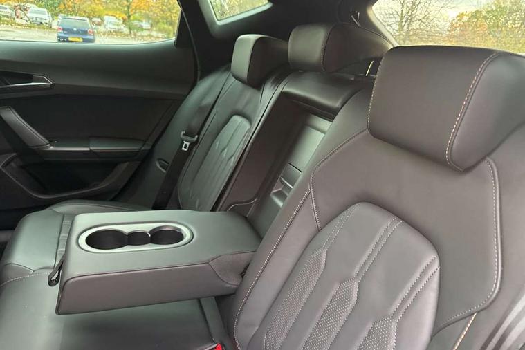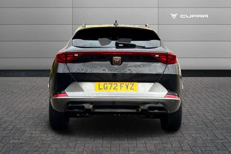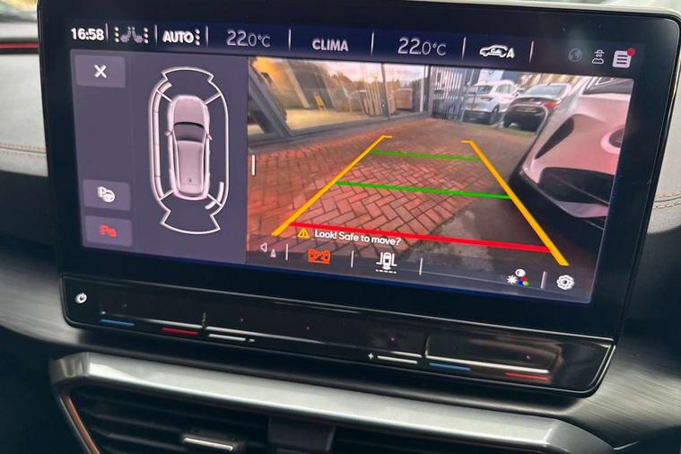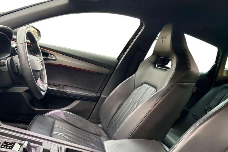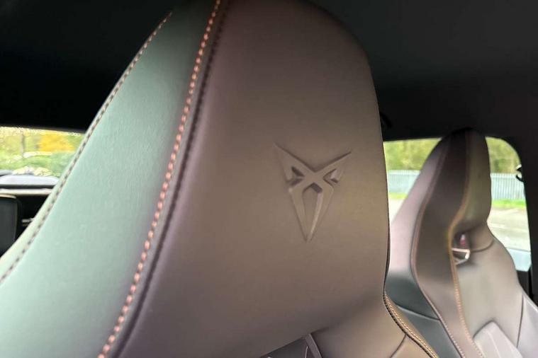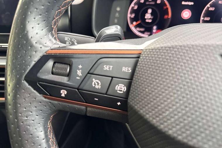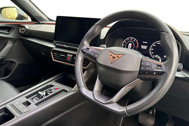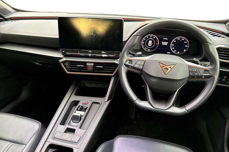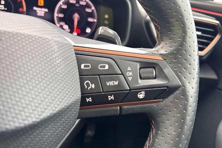 Digital cockpit and configurable dashboard, Driver alert system, Driving profile selection, E-call, Forward collision warning with automatic braking, Lane assist, Navigation system with 12'' Touchscreen Display, Park assist (inc front/rear parking sensors), PAS, Predictive adaptive cruise control with speed limiter, Rear view camera, RPM, trip computer, outside temp gauge, instrument light brightness, low fuel warning light, lights on reminder, gearshift indicator, Service interval indicator, Start/stop system with regenerative braking, Voice control system, Wireless apple carplay, Wireless phone charger, Electronic locking differential and dynamic traction support, Standard suspension, 2 front and 2 rear USB type C sockets, Auxiliary input socket, DAB radio, Auto dimming rear view mirror, Body colour door handles, Body coloured bumpers, Dark grey wing mirror, Daytime running light with automatic headlight control and coming home feature, Dynamic headlight range control, Electric front/rear windows, Electrically adjustable heated and folding door mirrors with memory function, Front fog lamps with cornering function, Gloss black roof rails and window surrounds, LED Headlights, LED Taillights with dynamic indicator, Rain sensing wipers, Rear diffuser with black simulated exhaust pipes, Rear side wing doors, Rear wash/wipe, Third brake light, Tinted rear windows, Welcome lights, 12v power supply in centre console, 12V socket, 12v socket in loadspace, 2 front and 2 rear reading lights, 230V socket, 3 seat bench in 2nd row, 60/40 split rear bench seat with armrest and mechanical seat release, Black headlining, Dust/pollen filter, Front and rear head restraints, Front centre armrest, Height/reach adjust steering wheel, Illuminated interior front door sills, Illuminated sunvisor with mirror, Isofix, Leather multi function heated steering wheel with gear shift paddles, Luggage tie-down hooks, Single front passenger seat, Three zone climate control with control panel in rear, Variable luggage/load compartment floor, Wraparound lighting, Genuine Nappa leather Pack - Cupra, 3 point seatbelts on all rear seats, ABS, Brake control system - ESC and brake booster, Child proof door locks, Driver and front passenger airbags with front passenger airbag de-activation, Electronic parking brake, Front and rear disc brakes, Front side curtain airbags, Hill hold control, Seat belt reminder for front and rear seats, Tyre pressure monitoring system, Anti theft alarm system, Keyless entry and start system (KESSY), Locking wheel bolts, Copper and aluminium interior detailing, 19" 'Exclusive' machined sport matte black and silver alloy wheels,