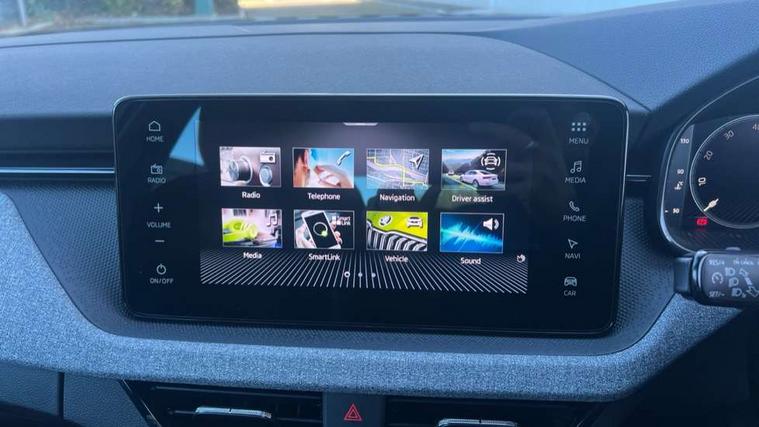 Advanced driver attention and drowsiness monitor, Bluetooth system, E-call, Front assist system, PAS, Rear parking sensors, Rear view camera, Service indicator, Speed limiter, Traffic sign recognition, Virtual cockpit with 10.25" display, Wireless smartlink, 4 USB C ports, 8 Speakers, 9.2" Skoda navigation display, DAB Digital radio, Auto dimming rear view mirror, Automatic headlight control with coming home and leaving home feature, Black roof rails, Body colour bumpers, Body colour door mirrors and handles, Chrome grille surround, Front and rear electric windows, Full LED headlights, Heated rear window, LED brake lights, LED daytime running lights, LED front turning lights, LED high beam, LED low beam, LED third brake light, Rear LED fog light, Rear side wing doors, Rear wiper, Ticket holder inside windscreen, 12V socket in luggage compartment, 3 seat bench in 2nd row, Black hotstamping, Cargo elements, Chrome inner door handles, Driver and passenger sun visors with vanity mirror, Dual zone climate control, Front and rear roof lights, Front centre armrest, Front head restraints, Glove compartment with illumination, Height adjustable driver seat, Height adjustable front passenger seat, Ice scraper, Inner circulation control with pollen filter, ISOFIX on front passenger seat, Isofix preparation for back seats, Krepp recycled decor inserts, Leather gearknob and handbrake lever, Loft cloth upholstery, Manual lumbar support for front seats, Net package and top tether hooks in boot space, Net under rear shelf, Overhead glasses storage compartment, Pocket on the back of both front seats include mobile phone pockets, Rake/reach adjustable steering wheel, Reading lights, Satin black door inserts, Single front passenger seat, Textile floor mats, Third rear headrest, Top tether for front passenger seat, Umbrella in driver's door, 3x3 point rear seatbelts, Airbags - driver and front passenger, Disc brakes, ESP, Extended and predictive pedestrian/cyclist protection, Front passenger airbag deactivation switch, Front side airbags with curtain airbags, Hill hold control, Manual leather parking brake, Manual rear child locks, One tone horn, Seatbelt reminder for driver an co-driver, Traction control, Tyre pressure monitor, Anti-theft alarm system with interior monitoring, backup horn, towing protection and remote central locking with SAFE system, Anti-theft wheel bolts, Electronic engine immobilizer,