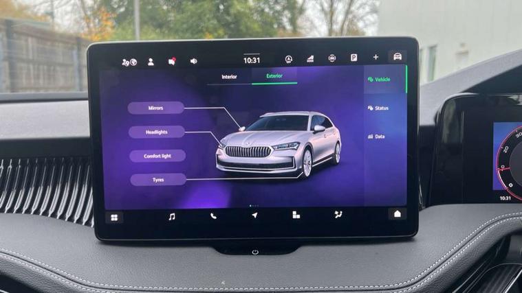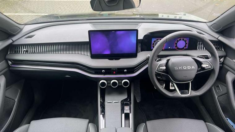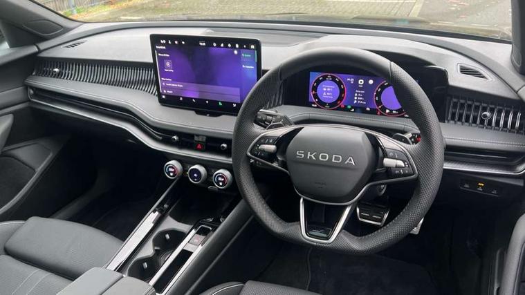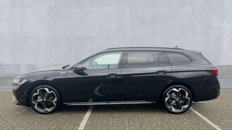 13" touchscreen display with satellite navigation, 4x USB-C ports (2x in front centre console and 2x in rear) (45W), Adaptive cruise control with speed assist, lane assist plus and traffic tram assist, Blind spot detection with door exit warning, Bluetooth system, CareConnect and Emergency Call, ChatGPT functionality, Driver fatigue sensor, Front assist with extended predictive pedestrian protection, Front cross traffic assist, PAS, Quick start all heating software functionality, Stop/start engine system, Traffic sign recognition, Turn assist with evasive assistance, Virtual Cockpit - 10.25" digital display, Voice control system, Washer for rear camera, Wireless charging for one smartphone (15W) with cooling function, Wireless smartlink apple carplay, SmartLink+ android auto, Dynamic chassis control plus with progressive dynamic steering, DAB Digital radio, Display cleaner, FM radio connection, Web radio connection, Acoustic side windows and interior noise suppression, Backdrop lighting, Black exterior styling window and grille surrounds, Black roof rails, Body colour door handles, Dynamic range control with poor weather light and integrated fog light, Electrically adjustable, heated, folding and driver side auto-dimming door mirrors with memory function, integrated indicators and logo projection, Frameless auto-dimming rear view mirror with USB-C, Gloss black door mirrors, Ice scraper in fuel tank cap, LED 3rd brake light, Light assist with High beam control, Light assistant (coming/leaving home/tunnel light), Privacy glass, Rear fog lights (x2), Rear roof spoiler, Rear side wing doors, Rear windscreen wiper, Skoda lettering in black, Sportline badging, Sports bumpers, Windscreen wipers with rain sensor, 12V socket 1x centre console 1x boot, 14-way electrically adjustable, memory, front seats with 4-way pneumatic lumbar support, and extendable thigh support with smart comfort entry aid, 2x cargo elements in boot, 2x light in boot, 3 seat bench in 2nd row, 4x foldable bag hooks in boot, 60:40 Split folding rear seats, Aluminium pedals, Bottle holders in the front doors 1.5 litre bottle and rear 1.5 litre bottle, Cup holder in front with easy open mat, Front armrest with storage box, Front sports seats, Heated and ventilated front seats, Height adjustable front and rear head restraints, Illuminated glovebox, Interior lights with control switches, Isofix child seat fittings in outer rear and front passenger seats, LED front and rear reading lights, Single front passenger seat, Skoda lettering on steering wheel, Storage compartment with cover, Storage pockets on back of front seats, Sun visors with illuminated vanity mirrors, Ticket holder on A Pillar, Tri zone climate control, Umbrella in driver's door, Light and view package - Superb, Transport package - Superb Estate, 3 rear seatbelts, 8 Airbags - Front driver and passenger, front side driver and passenger, centre, curtain front and rear, drivers knee, Crew protect assist, Driver and passenger seatbelts with warning light, Electronic parking brake, ESC including ABS, EBV, MSR, ASR, EDS, HBA, DSR, RBS, CBC, multi-collision brake (MKB) and Auto hold, Hill hold assist, Power operated child lock in rear doors, Alarm with interior monitoring tilt sensor and back up horn, Backrest remote release from trunk, Electronic engine immobiliser, Keyless start/stop, Remote central locking with SAFE system, Third key, Walk away locking, Decorative front door sills, 19" Torcular polished black alloy wheels with anti theft wheel bolts,