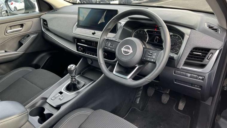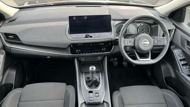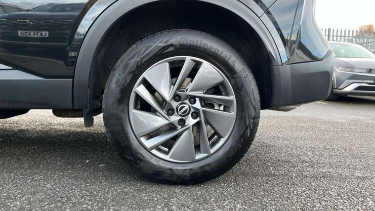 2 front USB-C ports, 7" High definition full colour TFT screen combimeter, Blind spot intervention, Blind spot warning, Drive assist custom mode, Drive modes (sport, normal, eco), Driver drowsiness and attention warning, Electric speed sensitive power steering, Emergency and breakdown call, Emergency lane keep assist, Emergency Stop Signal (ESS), Engine start/stop button, Event data recorder, Idle stop/start system, Intelligent Cruise control (ICC), Intelligent forward collision warning, Intelligent speed assist, Lane departure warning system, Nissan connect 12.3 inch touchscreen infotainment system, Outside temperature sensor, Rear cross traffic alert, Rear parking sensors, Rear view camera, Reversing detection, Wireless Apple CarPlay and wired Android Auto, Limited slip differential, 6 speakers, AM/FM audio system with DAB, Bluetooth audio streaming, Auto rear wiper when reversing, Body colour mirror caps, Body coloured door handles, Bodyside mouldings, Chrome side window finisher, Electric auto folding door mirrors, Electrically adjustable and heated door mirrors with LED turn indicator, Follow me home headlights, High beam assist, Intelligent auto headlights, LED 3rd brake light, LED daytime running lights, LED Headlights, LED rear lights, One touch front and rear electric windows with remote opening and closing, One touch passenger window, Partially body coloured bumpers, Rear roof spoiler, Rear side wing doors, Shark fin antenna, Splash free rain sensing wipers, Three blink turn signal, 3 bench rear seats in 2nd row, 3 rear headrests, 60/40 split folding rear seat bench, Chrome interior door handles, Cloth upholstery, Dark headlining, Dual zone automatic climate control with pollen filter, Front door with bottle holders, Height adjustable front headrests, Leather shift knob, Luggage space lighting, Multifunction steering wheel, Passenger seat back pocket, Rear door bottle holders, Single front passenger seat, TEP steering wheel, Tilt/telescopic adjustable steering wheel, Two rear isofix child seat anchorage points with top tether, White ambient light (Partial area coverage), 3x3 point rear seatbelt pretensioners + load limiters, Autonomous emergency braking, Child locks on rear doors, Curtain and front side, far side airbags, Driver and passenger airbags, Driver, passenger and 2nd row rear seat belt reminder, Electric handbrake with auto hold function, Front seatbelt pretensioners + load limiters, Height adjustable front seatbelts, Hill start assist, intelligent front emergency braking, Rear automatic braking, Tyre pressure monitoring system, Vehicle dynamic control, Engine immobiliser, Intelligent key with walk away lock and approach unlock functions, Remote central door locking with deadlocking, Thatcham alarm, 17" Alloy wheels, Tyre puncture repair kit,