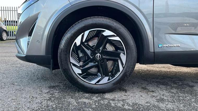 2 front USB-C ports, 2 rear USB-C ports, 360 degree Intelligent around view monitor with moving object detection, Blind spot intervention, Blind spot warning, Drive assist custom mode, Drive modes (sport, normal, eco), Driver drowsiness and attention warning, e-Pedal step, Electric speed sensitive power steering, Emergency and breakdown call, Emergency lane keep assist, Emergency Stop Signal (ESS), Engine start/stop button, EV mode switch, Event data recorder, Front and rear parking sensors, Full Digital 12.3" TFT Digital Combimeter, Google virtual personal assistance, Idle stop/start system, In-car WIFI hotspot, Intelligent Cruise control (ICC), Intelligent forward collision warning, Intelligent speed assist, Lane departure warning system, Nissan connect 12.3 inch touchscreen infotainment system, Nissan connect navigation with google maps, Nissan connect services 2.0 (Google Automotive System), Outside temperature sensor, Rear cross traffic alert, Reversing detection, Traffic jam pilot, Wireless Apple CarPlay/Android Auto, Wireless charging pad, Limited slip differential, 6 speakers, AM/FM audio system with DAB, Bluetooth audio streaming, Auto dimming frameless rear view mirror, Auto rear wiper when reversing, Body colour mirror caps, Body coloured door handles, Bodyside mouldings, Chrome side window finisher, e-POWER badging, Electric auto folding door mirrors, Electrically adjustable and heated door mirrors with LED turn indicator, Follow me home headlights, High beam assist, Intelligent auto headlights, LED 3rd brake light, LED daytime running lights, LED Headlights, LED rear lights, One touch front and rear electric windows with remote opening and closing, One touch passenger window, Partially body coloured bumpers, Rear privacy glass, Rear roof spoiler, Rear side wing doors, Rear styling plate, Shark fin antenna, Splash free rain sensing wipers, Super UV and infrared cut glass, Three blink turn signal, 3 bench rear seats in 2nd row, 3 rear headrests, 60/40 split folding rear seat bench, Chrome interior door handles, Cloth upholstery, Dark headlining, Driver seat back pocket, Dual zone automatic climate control with pollen filter, e-POWER shifter, Front door with bottle holders, Height adjustable front headrests, Luggage board system, Luggage space lighting, Multifunction steering wheel, Passenger seat back pocket, Rear door bottle holders, RGB ambient light (Full area coverage), Single front passenger seat, Smooth leather steering wheel, Tilt/telescopic adjustable steering wheel, Two rear isofix child seat anchorage points with top tether, 3x3 point rear seatbelt pretensioners + load limiters, Autonomous emergency braking, Child locks on rear doors, Curtain and front side, far side airbags, Driver and passenger airbags, Driver, passenger and 2nd row rear seat belt reminder, Electric handbrake with auto hold function, Front seatbelt pretensioners + load limiters, Height adjustable front seatbelts, Hill start assist, intelligent front emergency braking, Rear automatic braking, Tyre pressure monitoring system, Vehicle dynamic control, Engine immobiliser, Intelligent key with walk away lock and approach unlock functions, Remote central door locking with deadlocking, Thatcham alarm, 18" Diamond cut alloy wheels, Tyre puncture repair kit,