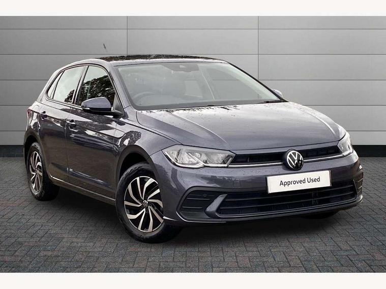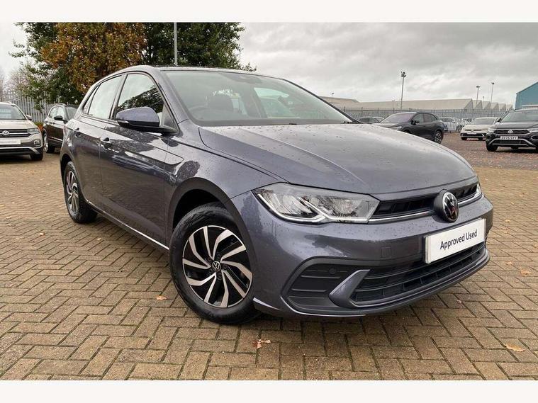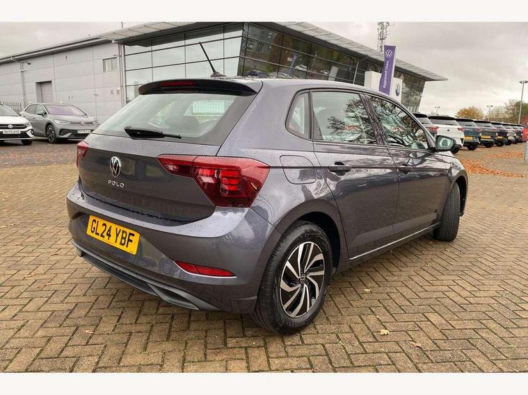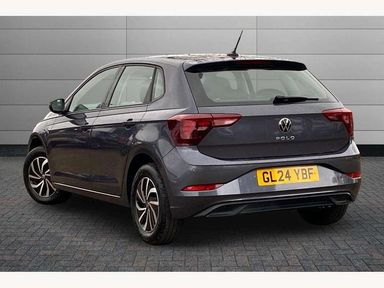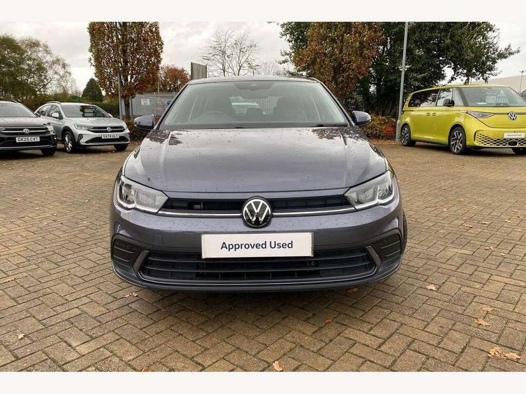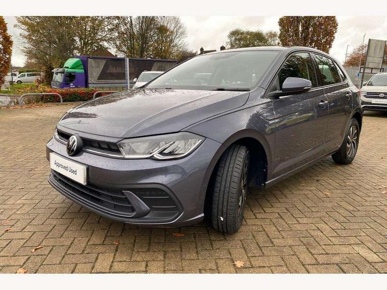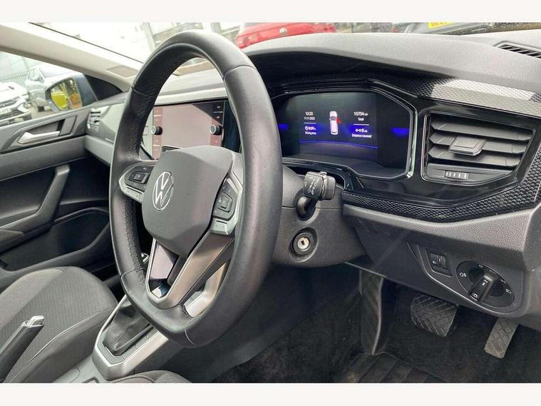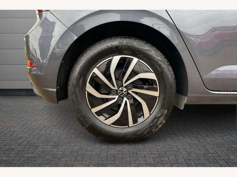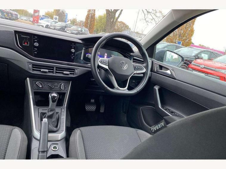 Adaptive cruise control with follow-to-stop and speed limiter, Advanced driver attention and drowsiness monitor, Bluetooth mobile phone interface, Dynamic road sign display, Emergency call service, Power assisted speed sensitive steering, Preparation for navigation system with media and internet package, Preparation for We connect and We connect plus, Speedo and rev counter, electronic odometer, trip, service interval display and exterior temperature gauge, Standard rear axle, Travel Assist - Lane keeping system and traffic jam assist, Travel assist including emergency assist, Trip computer, Warning signal and warning light for front and rear seatbelts not fastened, Washer fluid level indicator, Wireless app connect, Front wheel drive, Rear shock absorpion, Start-stop system with battery regeneration (recuperation - energy recovery during braking), DAB Digital radio, Diversity antenna for FM reception, Automatic dimming interior rear view mirror, Automatic headlight control with LED separate daytime running lights with coming/leaving home function, Body colour bumpers with chrome inserts, Body colour door handles, Body colour door mirrors, Electric front windows, Engine badge deletion, Headlight range adjustment, Heat insulating and laminated safety glass windshield, Heat insulating darkened glass in side and rear windows, Heat insulating glass windscreen, LED Headlights, LED rear combination lamps, Power folding adjustable/heated exterior mirrors and front passenger exterior mirror lowering function, Rain sensor, Rear electric windows, Rear fog light, Rear side wing doors, Rear windscreen washer and wiper with interval delay, Third brake light, 12V power socket in centre console, 2 front and 2 rear reading lights with switch off delay and dimmer, 2 USB-C ports in the front, 2 USB-C charging sockets on the center console in the rear, 3 rear head restraints, 60/40 split folding rear seat and rear seat bench not split, Ceramique roof lining, Chrome plated radiator grille inserts, air vent surrounds and light switch surrounds, Door and side trim panel, Driver and front passenger seat height adjustment, Driver/passenger sunvisors with illuminated vanity mirrors, Front centre armrest, Front seat backrest storage pockets, Front standard seats, Handbrake lever handle in leather, Hartley/Thomas cloth upholstery, Headliner in recycled material, Isofix child seat preparation easy-fit (for two outer rear seats, and front passenger seat) compatible with I-size, Leather trimmed gear knob, Luggage compartment cover, Luggage compartment lighting, Removable luggage compartment floor, Single front passenger seat, Standard climatic zones, Standard pedal cluster, Three spoke leather wrapped multifunction steering wheel with shifting paddles, Light and vision pack - Polo, 3 point height adj front seatbelts + pretensioners, 3x3 point rear seatbelts, ABS, Driver and front passenger airbag with front passenger airbag deactivation, Drivers and front passengers safety optimised head restraints, ESC (Electronic stability control) + EDL (Electronic Differntial lock) and ASR (Traction control), Extended and predictive pedestrian/ cyclist protection, Front assist with autonomous emergency braking (for Adaptive Cruise Control ACC up to 130 mph), Front curtain and side airbags with center airbag, Front disc brakes, Hill hold control, Manual child lock in rear doors, Rear drum brakes, Single tone horn, Tyre pressure loss indicator, Alarm with interior protection, Anti-theft alarm system with interior monitoring, backup horn, and towing protection, Anti-theft wheel bolts, Electronic engine immobiliser, Lava stone black gloss/matt decorative inserts in dash and front door panels, Low rolling resistance tyres,