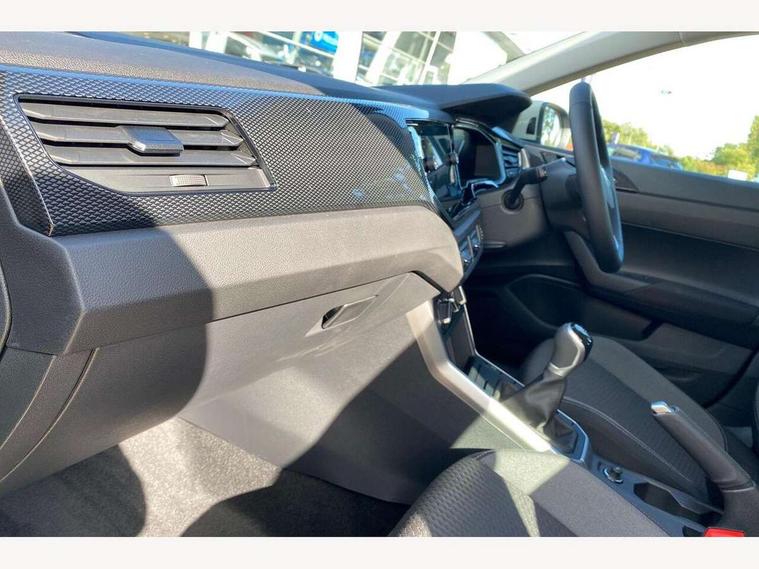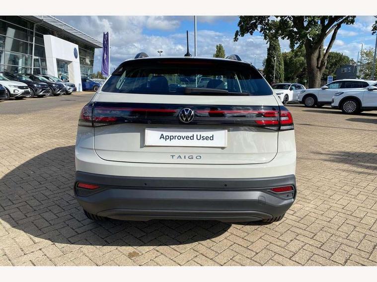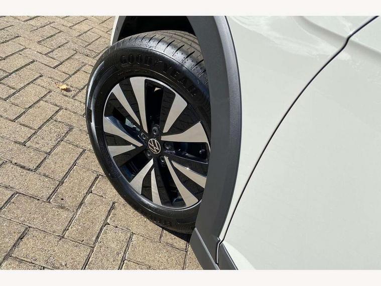 8" Digital cockpit basic display, Advanced driver attention and drowsiness monitor, Dynamic road sign display, e-Call (emergency call), Power Steering, Predictive adaptive cruise control, Travel assist including emergency assist, Washer fluid level indicator, Wireless Charging including Bluetooth, Start-stop system with battery regeneration (recuperation - energy recovery during braking), Digital radio reception (DAB+), WeConnect plus, Ambient lighting with logo projection, Aspherical driver's exterior mirror, Auto headlights, Body coloured bumpers, Body coloured exterior mirror housings and door handles, Electric windows, External USB type C socket and charging sockets, Heat insulating glass windscreen, LED rear combination lamp, LED third brake light, Left convex exterior mirror, Power folding adjustable/heated exterior mirrors and front passenger exterior mirror lowering function, Rear fog light on one side, reversing light on both sides, Rear side wing doors, Rear wash/wipe with intermittent wipe setting, 'Slash/ Austin' Cloth upholstery, 12V socket in centre console, 2 front reading lights, 3 rear head restraints, 3 seat bench in 2nd row, Black carpets, Child seat anchor for child seat system i-Size, 2x top tether and child seat anchor in front on front passenger side, Door and side trim panels in titan black, Driver and front passenger seat height adjustment, Front centre armrest, Handbrake lever handle in leather, Height and reach adjustable steering wheel, Leather trimmed gear knob, Leather wrapped multifunction steering wheel, Luggage compartment floor, Luggage compartment light, Lumbar support for driver's and front passengers seat, Seat covers in titanium black, Single front passenger seat, Split folding backrest with centre armrest and unsplit rear seat bench, Storage compartment under front seats, Sun visors with illuminated vanity mirrors, Chrome Package - Taigo, Drivers assistance pack - Taigo, Light and Sight pack including High beam assist - Taigo, 2 x 3-point seatbelts/outer rear seats with ECE label, 3-point seat belts in front with pretensioner and height adjustment, 3-point seatbelt for centre rear seat, Adaptive driver and front passenger airbags with passenger airbag deactivation function, Driver and front passenger airbags with front passenger airbag de-activation, front side and curtain airbags, Driver and front passenger safety-optimised head restraints, Electronic stability control, Extended and predictive pedestrian/ cyclist protection, Front and rear disc brakes, Front curtain and side airbags with center airbag, Hill start assist, Manual rear child locks, Single tone horn, Tyre pressure loss indicator, Anti-theft alarm system with interior monitoring, backup horn, and towing protection, Lava stone black gloss/matt decorative inserts in dash and front door panels, Low rolling resistance tyres,