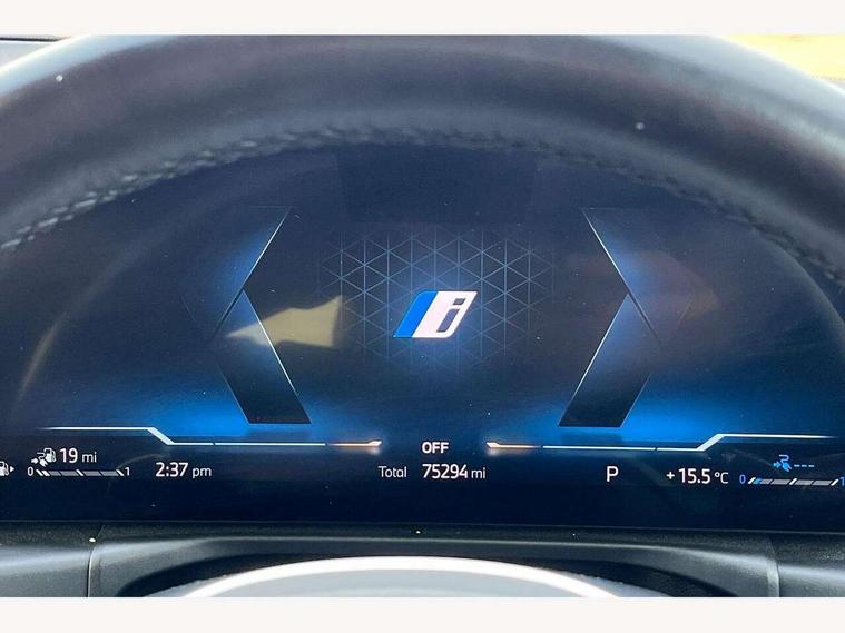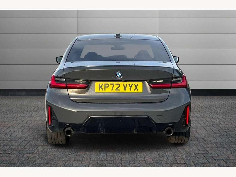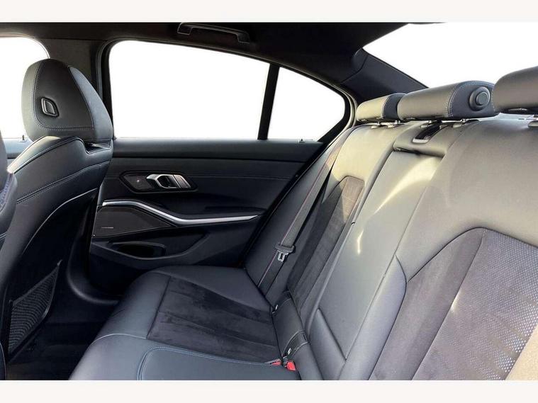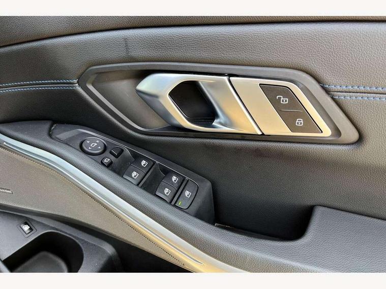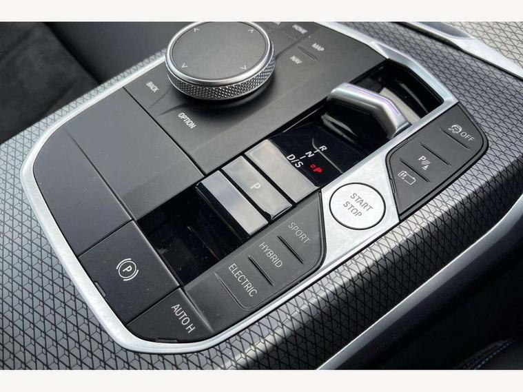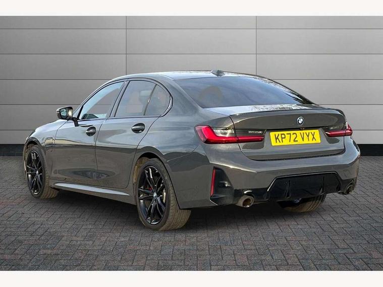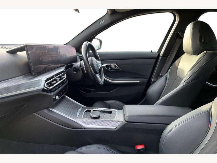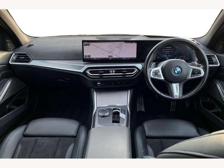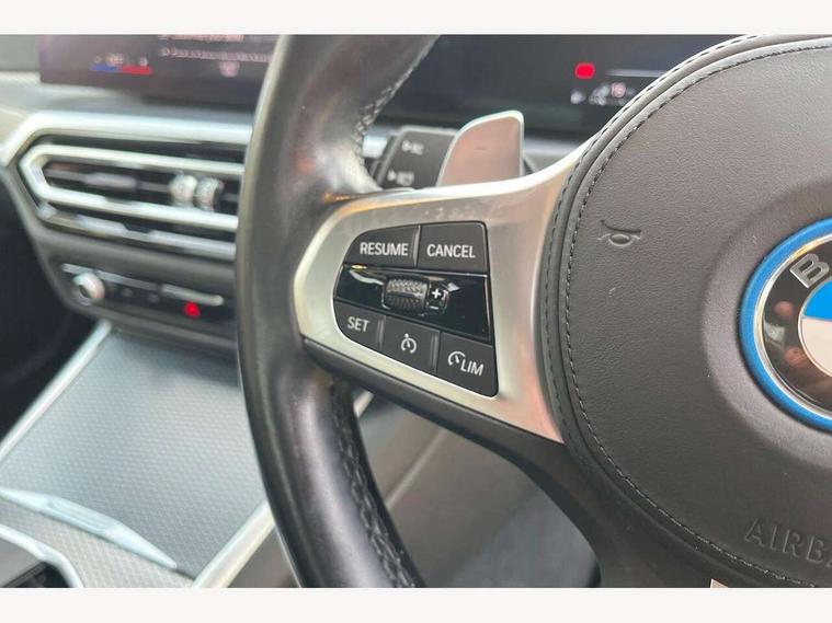 Active guard plus, Attentiveness assist, Automatic Start/stop button, BMW iDrive, BMW Teleservices, Condition based service, ConnectedDrive Services, Driving experience switch, Live cockpit plus with Navigation + 12.3" instrument display + 14.9" display, Intelligent voice assist, 2 USB, 4G LTE connect, Oil sensor for level and grade, PAS, Preparation for driver assistance, Shifting point display, Smartphone integration, Charging cable - Mode 2, Double joint spring strut front axle, Fuel tank breather system, Sport automatic transmission with steering-wheel mounted gearshift paddles and launch control, Standard suspension, DAB tuner, "Electrified by i" exterior badging on charging flap, 3rd brake light, Acoustic glazing, Auto dimming rear view mirror, Automatic headlight beam throw control with load dependent regulating reaction, dynamic compensation of braking dive and acceleration squat, BMW emblem, engine compartment lid and tailgate, Body colour roof fin, Door sill strips, Electric windows - front and rear, with open/close fingertip control, anti-trap facility and comfort closing, Follow me home headlight function, Front and rear bumper system with replaceable deformation elements, Front apron plastic in body colour, Fuel filler flap - right rear in body colour, Heated washer jets, Illuminated bow type door handles in body colour drivers side with door lock, Interior rear view electrochromatic mirror with automatic anti dazzle function, LED headlights with LED daytime running lights and LED turn indicator, LED rear lights, Licence plate panel integrated into front bumper and tailgate, Matt black B-pillar finsher, Matt black window recess cover, Model designation on right side of tailgate, One piece front bumper cover including towing eye cover in body colour, Rain sensor with automatic headlight activation, Rear boot, Rear side wing doors, Reversing lights, Side frame decorative moulding black matt, Visible exhaust tailpipe finisher, Welcome lights in interior and door handle area, 12V power socket in front storage compartment, 2 front cupholder in centre console with clamping elements and matt black inlay, 3 seat bench in 2nd row, 3 zone automatic air conditioning, 40:20:40 split folding rear seat with loading system, Anthracite headlining, Armrest integrated in front and rear door trim + front centre console armrest, Battery in luggage compartment, BMW ID, Cruise control operation in steering wheel, Driver backrest width adjustment, Folding rear centre armrest with 2 cupholders, Front and rear door exit lighting (left / right), Front and rear footwell lighting, Front and rear headrests, Front and rear reading lights, Front and rear velour floor mats, Front sport seats, Heated front seats, Height adjustable mechanically and infinitely variable steering column, Illuminated armrest storage compartment, Illuminated glove compartment, Illuminated luggage compartment, Lashing eyelets in luggage compartment, LED ambient lighting with welcome carpet light, M Sport multifunction leather steering wheel, Make-up mirror lights, Single front passenger seat, Standard seat for driver and passenger with manual adjustment, Sunvisors with vanity mirrors and ticket pocket, Toolkit located in luggage compartment, Connected pack professional - 3 Series Saloon/Touring, Interior and exterior mirror pack - 3 Series Touring/Saloon, M Aerodynamics package - 3 Series Saloon/Touring, M sport exterior styling pack - 3 Series Saloon/Touring, Storage compartment pack - 3 Series Saloon/Touring, 3x3 point rear seatbelts, BMW emergency call, Child locks on rear doors, Crash sensor activating of airbags, Unlocking doors, hazard warning lights, interior light, safety battery terminal, Driver and front passenger with seat occupancy detection for driver's and passenger side, Driver and passenger side airbags, body protection at side and airbags deploy from seat backrests, Dynamic brake control, Dynamic stability control + (DSC+) - Anti-lock Braking System (ABS) with brake assist and cornering brake control + Automatic Stability Control (ASC), Dynamic Traction Control - DTC, Electric parking brake including automatic hold function and automatic release of the parking brake when driving off, Electronic differential lock control (EDLC), Head airbags in 1st and 2nd row, head protection at side, curtain airbags open from headliner above 1st and 2nd row, Side impact protection, Tyre pressure monitoring with three level warning strategy, Ventilated front and rear disc brakes, Warning triangle and first aid kit, Alarm system, Centre lock switch, Closing system with central locking, Electronic vehicle immobiliser,