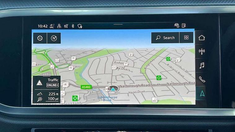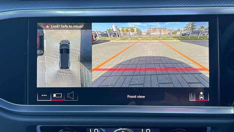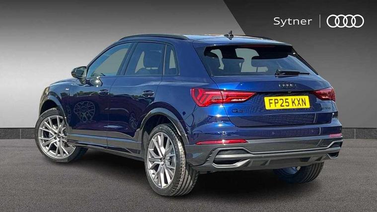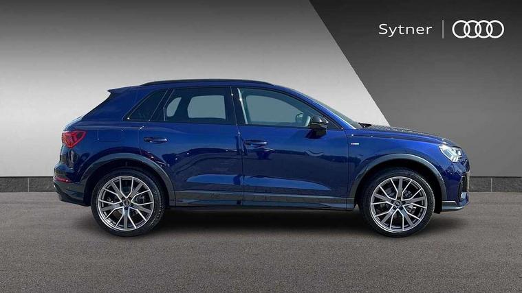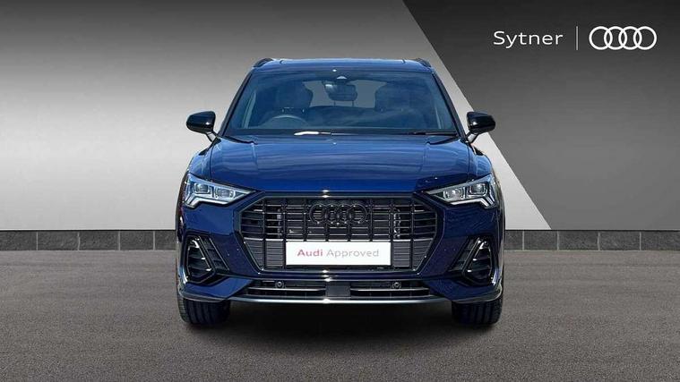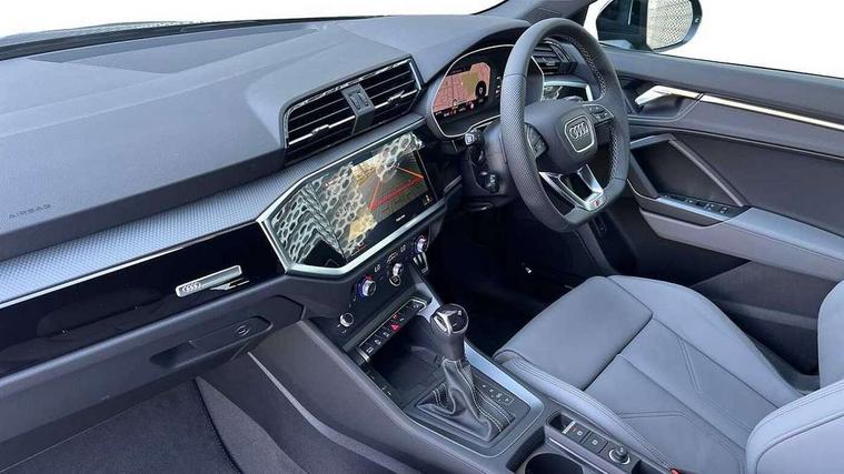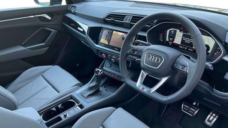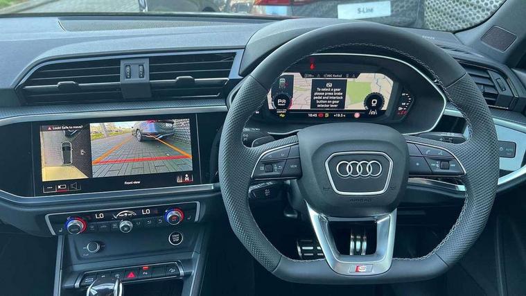 Amazon alexa Integration, Audi connect safety and service, Audi drive select, Audi lane departure warning, Audi Virtual Cockpit - 10.25" display, Bluetooth interface, Camera based traffic sign recognition, Distraction and Fatigue warning, Legal emergency call, MMI Navigation Plus with high resolution 10.1 inch touchscreen colour display, Power operated tailgate, Progressive steering, Service interval indicator, Smartphone interface includes wireless Apple carplay/Android Auto, Start stop system with recuperation, Voice control system with natural language interaction, Sports suspension, 2 USB-C ports with charge and data functions, 6 passive loudspeakers, DAB digital radio module, Acoustic windscreen, Audi Beam uses LEDs to project the Audi logo onto the ground as you exit your Q3, Auto dimming door mirrors, Auto dimming frameless rear view mirror, Black roof rails, Electrically folding, adjustable and heated door mirrors with integrated LED side indicators and kerb view function for passenger side, Front and rear electric windows, Front fog lights, Grille vertical bars in aluminium silver/Matt, High gloss black finish B and C pillars, LED Dynamic rear indicators, LED headlights with LED daytime running lights, LED rear lights, LED third brake light, Privacy glass dark tinted rear and rear-side windows (from B-pillar backwards), Rain and light sensors, Rear diffuser grille in grained matt black, Rear diffuser strip in matt anthracite black, Rear side wing doors, Rear wiper, S line bumpers in contrasting Manhattan grey, Variable front intermittent wipers, 12V socket in rear centre console, 3 seat bench in 2nd row, 40:20:40 folding with manual adjustment for 60:40 forwards/backwards position and backrest angle, Adjustable rear seat bench/backrest with centre armrest and cupholder, Black cloth headlining, Dual zone electronic climate control, Electric lumbar support, Front and rear black floor mats with contrast stitching in rock grey, Front and rear headrests, Front centre armrest, Height and reach adjustable steering wheel, Illuminated door sill trims with S logo, ISOFIX child seat mounting for front passenger with airbag deactivation and outer rear seat including top tether attachment point for outer rear seats, Manual front seats with height adjustment, Perforated leather gearknob, Single front passenger seat, Stainless steel luggage compartment sill finisher, Stainless steel pedals, Twin leather upholstery with front sport seats + S embossing, Black styling pack - Q3, Non smoking pack - Q3, 3x3 point rear seatbelts, 6 airbags - Driver, front passenger, curtain and side windows, Audi pre-sense front with pedestrain and cyclist recognition, Electrically operated child locks on rear doors, Electromechanical parking brake, Electronic stabilisation control including ABS, ASR and EDL, Front seatbelt reminder, Hill descent control, Hill hold assist, Pre sense basic, Seatbelt monitoring, Tyre pressure warning, Warning triangle and first aid kit, Anti theft wheel bolts, Immobiliser, Remote central locking, Thatcham approved category 1 anti theft alarm, Aluminium look interior elements, Detail dashboard around MMI touch colour display in glass look, black with surround in aluminium look, Leatherette door armrest, Piano black inlay,