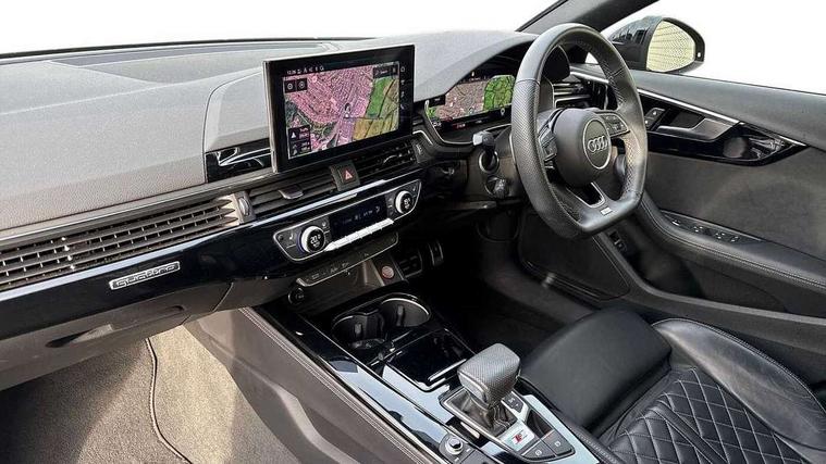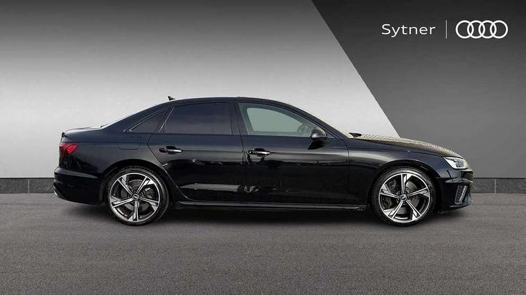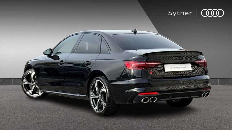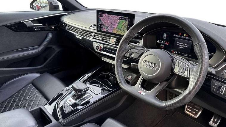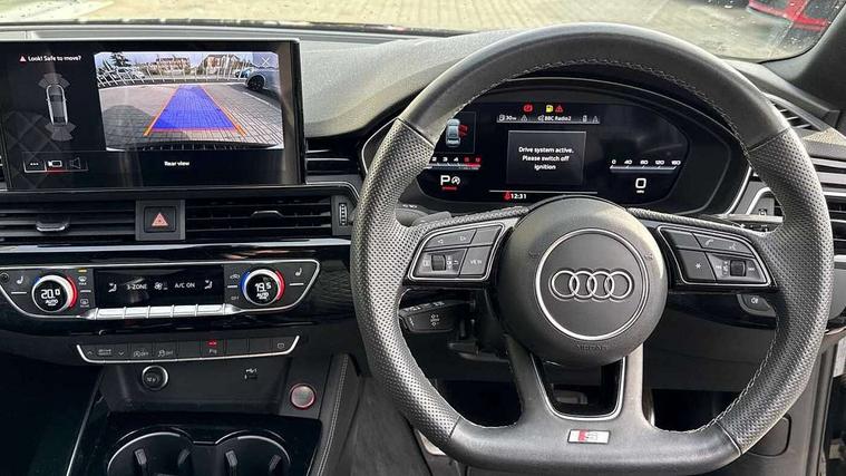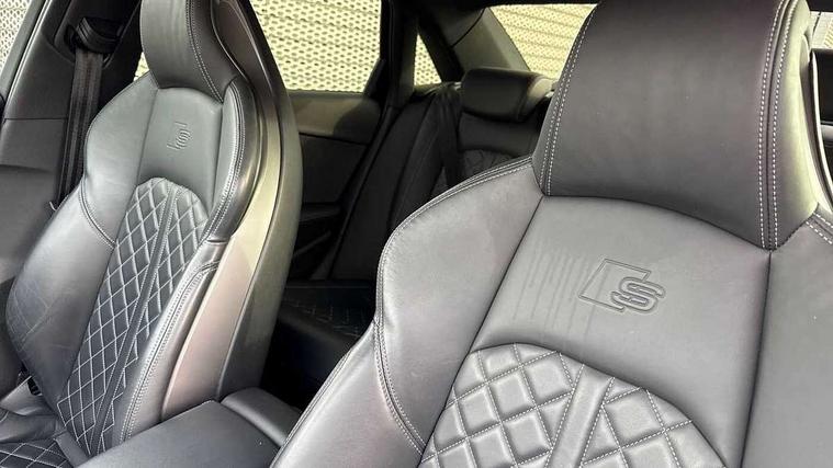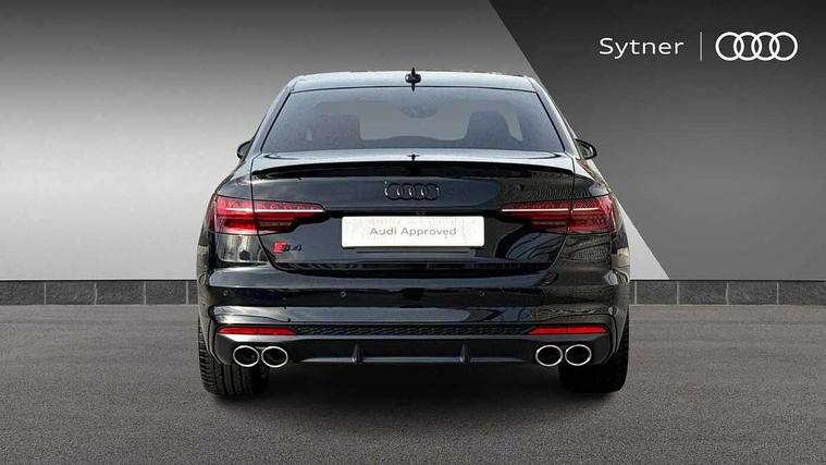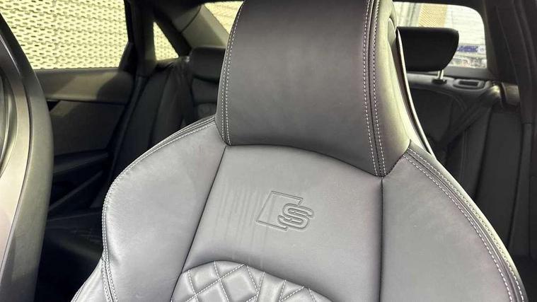 Audi connect safety and service (e-call), Audi connect with Amazon Alexa Integration, Audi drive select, Audi smartphone interface, Audi virtual cockpit, Automatic start-stop system with coasting functionality and efficiency programme, Bluetooth interface, Electric boot lid release, Electromechanical power steering, Email, calendar and text messages displayed via MMI, MMI Navigation plus with MMI touch includes 10.1" high resolution colour MMI display, 3D map, S instrument dials, Voice control system, 58 Litre fuel tank, S sports suspension, 2 USB charging ports, Audi sound system with 10 loudspeakers, DAB digital radio reception, Audi Beam uses LEDs to project the Audi logo, Audi rings and model badging in black, Auto dimming rear view mirror, Body colour door handles, Body colour front spoiler lip, Body colour side sill trim, Electrically folding auto dimming/adjustable/heated door mirrors with LED side indicators and kerb view function for passenger side, Front and rear bumpers with side skirts, High beam assistant, High gloss black B pillar trims and triangular rear door trim, LED headlights with LED rear lights + dynamic rear indicators + headlight adjustment and high beam, turning light + LED daytime running lights, LED third brake light, Privacy glass, Rain and light sensors, Rear boot, Rear side wing doors, S Line badges on the front wings, S rear diffuser in twilight grey matt and honeycomb grille in black, S specific dual branch chrome tailpipes with twin oval pipes on left and right, S specific side air inlets in black with chrome inlays in unique S design, S Style rear spoiler, Variable intermittent front wash/wipe, Windscreen with acoustic glazing, 40/20/40 split folding 3 rear seat bench in 3 parts with rear centre armrest, Black cloth headlining, Black leather gear lever knob, Contrast stitching on seats, steering wheel and gear lever gaiter, Deluxe 3 zone electronic climate control, Door sill trims with aluminium inlay, Electrically adjustable front seats, Fine nappa leather upholstery with S embossed logo + super sports seats, Front and rear head restraints, Front centre armrest, Gear lever with diamond S badge, Heated front seats, Illuminated door sill trims with S logo, ISOFIX child seat mounting and top tether, Key with S logo, Pneumatically adjustable lumbar support with massage function, Single front passenger seat, Stainless steel pedals and foot rest, Tool kit, Black styling pack - A4 Saloon Sport Edition/S4 Black edition/S4 Vorsprung, Extended leather pack - A4/S4, LED Interior light pack - A4/S4, 3 rear seatbelts, 6 airbags - Driver, front passenger, curtain and side windows, Electronic Stabilisation Control (ESC) including ABS, ASR and EDL, Front brake calipers painted in black with S4 logo, Hill hold assist, Multi collision brake assist, Pop-up bonnet for pedestrian protection, Pre sense city, Rear door child safety locks, S model enhanced braking system, Seatbelt monitoring, Warning triangle and first aid kit, Anti theft alarm, Anti theft wheel bolts, Central locking, Keyless Go, Tyre repair kit,