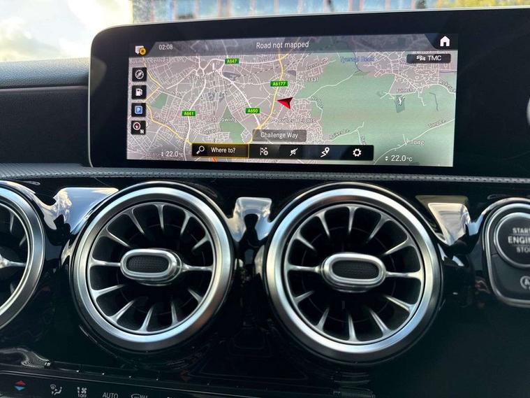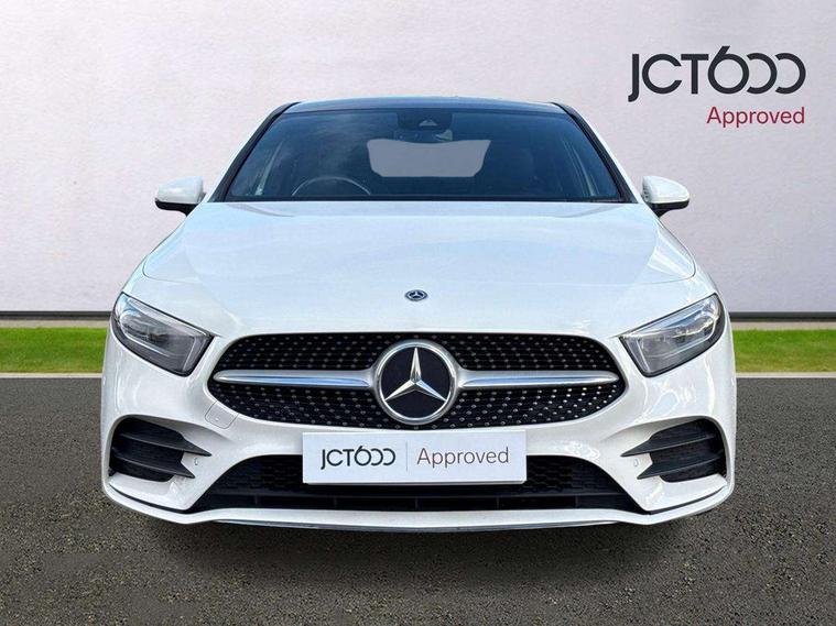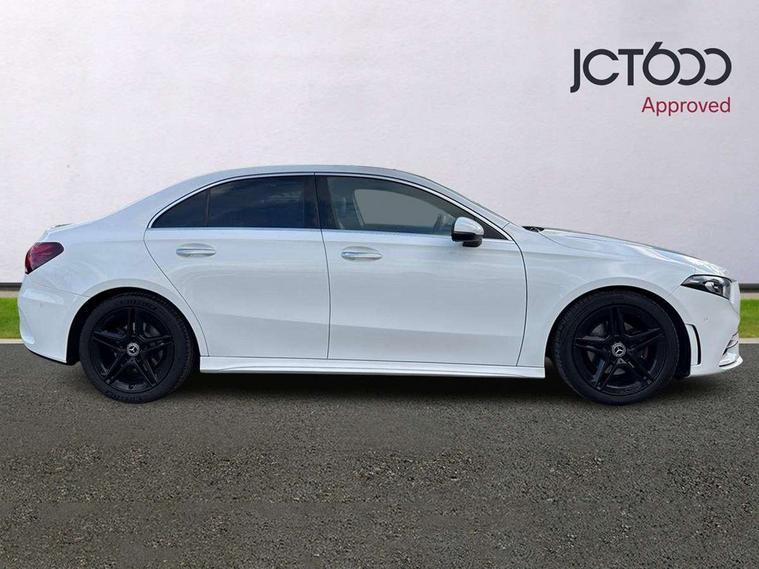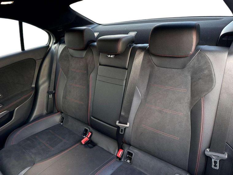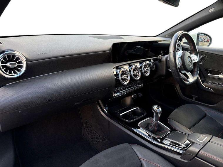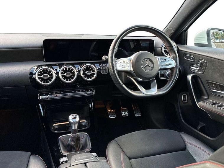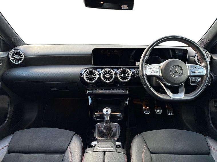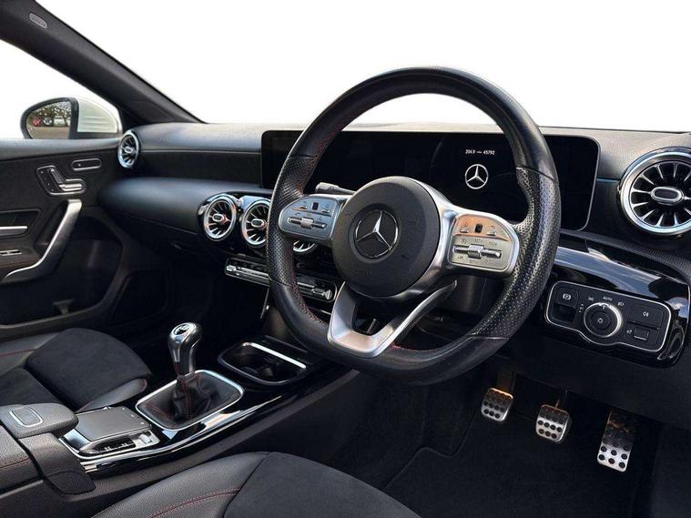10.25" Digital instrument cluster display screen, 10.25" media display, 180 degree rear view camera with parking guidelines, Active lane keep assist, Active park assist with parktronic system including front and rear parking sensors, Attention assist, Brake pad wear indicator warning light, Cruise control + speed limiter, Direct steering, Dual bluetooth interfaces, DYNAMIC SELECT with a choice of driving modes (ECO, Comfort, Sport and Individual), ECO start/stop function, Fluid level warning indicator for fuel, oil, coolant and washer fluid, Hard-disk navigation, Hey Mercedes Voice activation, Lamp failure indicator, Mercedes me connect including emergency call system, accident recovery, breakdown and maintenance management, Outside temperature gauge, Owners manual in English, Pre-installation for private car sharing, Pre-installation for Vehicle Monitoring, Pre-installation for Vehicle Setup, Preinstallation for Mercedes Benz link, Service indicator (ASSYST), Smartphone integration with Apple CarPlay and Android auto, Speed sensitive power steering, Traffic sign assist, Trip computer, Wireless charging, Lowered comfort suspension, Rear axle multi-link, 10 speakers, 2 USB ports (type C) in rear stowage compartment and one in front of center console, DAB Digital radio, MBUX multimedia system with DAB digital radio and touchpad including satellite navigation, Mercedes-Benz advanced sound system - 225W, 4 Electric Front and Rear windows, Adaptive brake lights, AMG bodystyling - Front apron with splitter in chrome, rear apron with chrome trim and chrome visible trim elements in tailpipe, Black weather strip, Body colour bumpers, Body colour door handles, Body colour side skirt, Body coloured door mirrors, Chrome beltline trim, Diamond radiator grille with chrome pins and silver louvre + chrome insert, Electric adjustable and heated door mirrors with integrated LED side indicators, Exhaust system - Twin visible tailpipes in polished stainless steel, Headlamp assist automatic headlamp activation, Heated glass rear windscreen + timer control, Illuminated front door sill panels with Mercedes-Benz lettering, LED high performance headlamps with integrated LED daytime running lights, LED tail lamp, LED third brake light, Multibeam LED with adaptive highbeam assist plus, Panoramic sliding sunroof, Privacy glass, Radio aerial, Rain sensing windscreen wipers with two sensitivity settings, Rear fog lights, Window line trim strip in chrome, 3 Spoke flat bottom leather multi function steering wheel with perforated leather in grip area, 40:20:40 split folding rear seats, Artico man-made leather/Microfibre Dinamica upholstery with red contrast stitching, Auto Mercedes-Benz child seat recognition sensor, Black air vents with surround in silver chrome, Black roof lining, Brushed stainless steel sports pedals with rubber studs, Controller on centre console with chrome surround, Electrically adjustable front memory seats including lumbar support, Floor mats with stitched edging and AMG lettering, Front centre armrest with storage compartment, Front seat backs luggage nets, Front seat cushion length adjustment, Heated front seats, Height/reach adjustable steering column, Interior lighting - 64 colour Ambient lighting, Rear armrest with 2 cupholders, Rear head restraints, Seat occupancy sensor for front passenger seat, Spectacles compartment for driver, Sports seats with adjustable head restraints, Sunvisors with illuminated vanity mirrors, Touchpad on center console, Twin front cupholders, Two zone thermotronic luxury automatic climate control, Light and sight pack - A Class, Mirror package - A Class, Seat comfort pack - A Class, 3 rear 3 point seatbelts, ABS with Brake Assist, Active bonnet, Active brake assist includes forward collision warning system with autonomous braking, Adaptive brake assist with hold function and hill start assist, Black seatbelts, Childproof locks manually operated for rear doors and electrically operated for rear power windows, Crash responsive emergency lighting, Driver and passenger head and side airbags, Drivers knee airbag, Dual stage driver/passenger airbags, Electronic parking brake, ESP curve dynamic assist, ESP with ASR, Front and rear seatbelt reminder, Front brake callipers with Mercedes Benz lettering, ISOFIX and top tether child seat fixing points in two outer rear seats, Tyre pressure monitoring system, Warning triangle and first aid kit, Window airbags, Alarm system/interior protection/immobiliser, Keyless entry lock/unlock, Keyless Go, Remote central locking and crash sensor with emergency opening function, Light aluminium with longitudinal grain interior trim, 18" AMG 5 twin spoke light alloy wheels in titanium grey with highsheen finish, Summer tyres, Tirefit sealant kit,