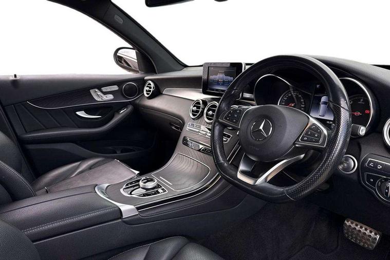 7" colour screen, Active park assist with parktronic system, Attention assist, Bluetooth interface for hands free telephone, Collision prevention assist plus, Crosswind Assist, DYNAMIC SELECT with a choice of driving modes (ECO, Comfort, Sport, Sport+ and Individual), Garmin Map Pilot navigation system with SD card, touchpad and voice control, Instrument cluster with 5.5-inch TFT multi-function display, Multi function trip computer, Outside temperature gauge, Power opening/closing tailgate, Remote boot release, Service indicator (ASSYST), Diesel particulate filter, 5 speakers, DAB Digital radio, Frontbass loudspeakers, Mercedes Audio 20 radio/single CD + telephone keypad, USB connection, Adaptive brake lights, Aerodynamic rear spoiler, AMG bodystyling, Automatic headlights, Body coloured bumpers, Chrome exterior trim, Electric panoramic sunroof with sunblind, Electric windows one touch open/close, Electrically adjustable and heated door mirrors, Exhaust tailpipe finisher, LED daytime running lights, LED rear lamps, Privacy glass (to rear of B post), Rain sensor windscreen wipers, Range adjustable headlights, Rear wiper, Tinted glass all round, 2 cupholders in front centre console, 2 way rear head restraints, 3 spoke flat bottom AMG steering wheel in nappa leather, 4 way adjustable front head restraints, 4 way electric lumbar support for driver and front passenger, 40:20:40 split folding rear seats, Ambient lighting, AMG floor mats, AMG sports seats, Auto Mercedes-Benz child seat recognition sensor, Automatic climate control, Black roof lining, Dividing net - rear, Electric front seat height adjustment, Front armrest with storage box, Front door sills with Mercedes Benz lettering, Gearshift paddles, Heated front seats, Height/reach adjustable steering column, Lockable/illuminated glovebox, Multifunction steering wheel, Rear top tether child seat ISOFIX attachment, Sports pedals with stainless steel surfaces and rubber studs, Sunvisors with illuminated vanity mirrors, Easy-pack load compartment cover, Interior lighting pack - GLC, Memory pack - GLC, Mirror pack - GLC, Storage pack - GLC, 3 rear 3 point seatbelts, ABS with Brake Assist, Active bonnet, Adaptive brake system, Brake calipers with Mercedes-Benz lettering + perforated brake discs, Child proof door locks, Drivers knee airbag, Dual stage driver/passenger airbags, Electronic parking brake, ESP with ASR, Front and rear seatbelt reminder, Front passenger seat occupancy sensor, Front side airbags, Hill hold function, Tyre pressure monitoring system, Warning triangle and first aid kit, Window airbags, Alarm system/interior protection/immobiliser, Automatic door locking, Keyless entry and keyless start, Remote central locking, Tyre inflation kit,