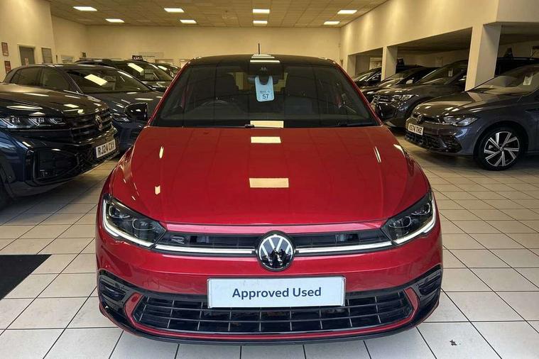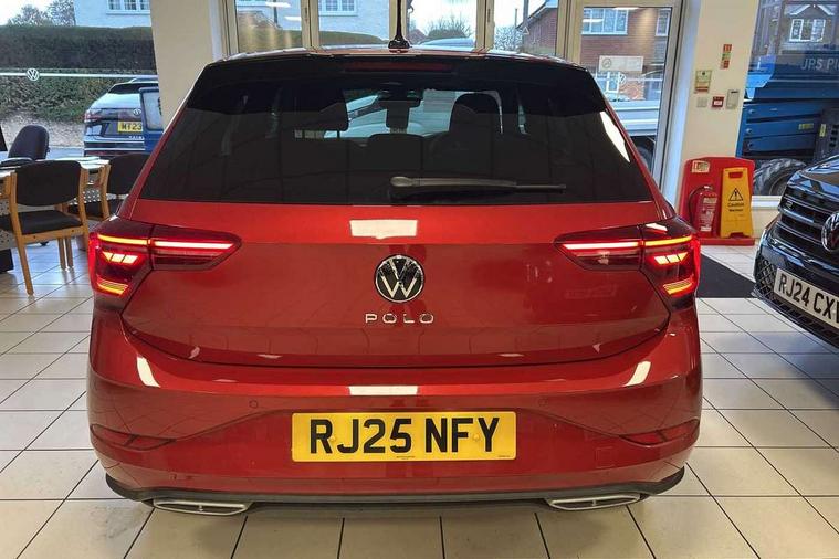 Adaptive cruise control with follow-to-stop and speed limiter, Advanced driver attention and drowsiness monitor, Bluetooth mobile phone interface, Digital Cockpit Pro with 10.25" Display, Dynamic road sign display, Emergency call service, Multifunction camera, Power assisted speed sensitive steering, Preparation for We connect and We connect plus, Speedo and rev counter, electronic odometer, trip, service interval display and fuel gauge, Standard rear axle, Travel Assist - Lane keeping system and traffic jam assist, Travel assist including emergency assist, Trip computer, Warning signal and warning light for front and rear seatbelts not fastened, Washer fluid level indicator, Wireless app connect, Front wheel drive, Rear shock absorpion, Start-stop system with battery regeneration (recuperation - energy recovery during braking), DAB Digital radio, Diversity antenna for FM reception, Front and rear 6 speakers, Body colour bumpers, Body colour door handles, Electric front windows, Front scuff plates with Black edition logo, Heat insulating glass windscreen, Power folding adjustable/heated exterior mirrors and front passenger exterior mirror lowering function, Rear electric windows, Rear fog light, Rear side wing doors, Rear windscreen washer and wiper with interval delay, Third brake light, 12V power socket in centre console, 2 USB-C ports in the front, 2 USB-C charging sockets on the center console in the rear, 3 rear head restraints, 60/40 split folding rear seat and rear seat bench not split, Air care climatronic air conditoning system with active combination filter and 2-zone temperature control, Black roof lining, Carpet mats, front and rear, Chrome plated radiator grille inserts, air vent surrounds and light switch surrounds, Door and side trim panel, Driver and front passenger seat height adjustment, Driver/passenger sunvisors with illuminated vanity mirrors, Front centre armrest, Front footwell illumination, Front seat backrest storage pockets, Front sports comfort seats, Handbrake lever handle in leather, Headliner in recycled material, Heated front seats, Isofix child seat preparation easy-fit (for two outer rear seats, and front passenger seat) compatible with I-size, Karoso artvelours cloth upholstery, Leather trimmed gear knob, LED interior light with switch off delay and dimmer, 2 reading lights front and rear, Luggage compartment cover, Luggage compartment floor, Luggage compartment lighting, Lumbar adjustment for front seats, Single front passenger seat, Stainless steel pedals, Standard pedal cluster, Three spoke leather wrapped multifunction steering wheel with shifting paddles, Black roof pack - Polo, IQ LED matrix headlights pack - Polo, Light and sight pack - Polo R-Line/Black Edition, 3 point height adj front seatbelts + pretensioners, 3x3 point rear seatbelts, ABS, Driver and front passenger airbag with front passenger airbag deactivation, Drivers and front passengers safety optimised head restraints, ESC (Electronic stability control) + EDL (Electronic Differntial lock) and ASR (Traction control), Extended and predictive pedestrian/ cyclist protection, Front curtain and side airbags with center airbag, Front/rear disc brakes, Hill hold control, Manual child lock in rear doors, Single tone horn, Tyre pressure loss indicator, Alarm with interior protection, Anti-theft alarm system with interior monitoring, backup horn, and towing protection, Anti-theft wheel bolts, Electronic engine immobiliser, Black dashboard, Chrome applications on rotary light, mirror adjustment, window regulator switches, outlet with frame in black, Dark grey anodised matt decorative inserts in dash and front door panels, 17" York alloy wheels, Low rolling resistance tyres,