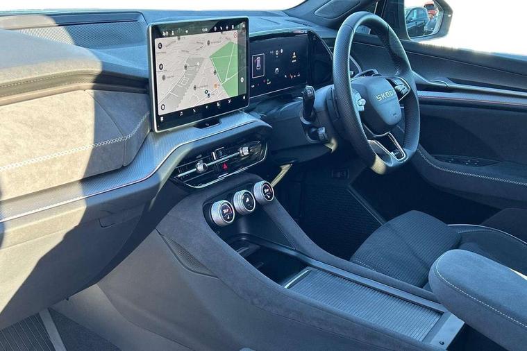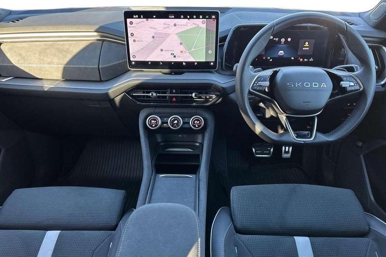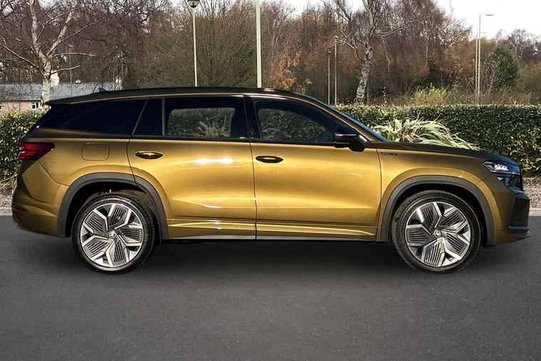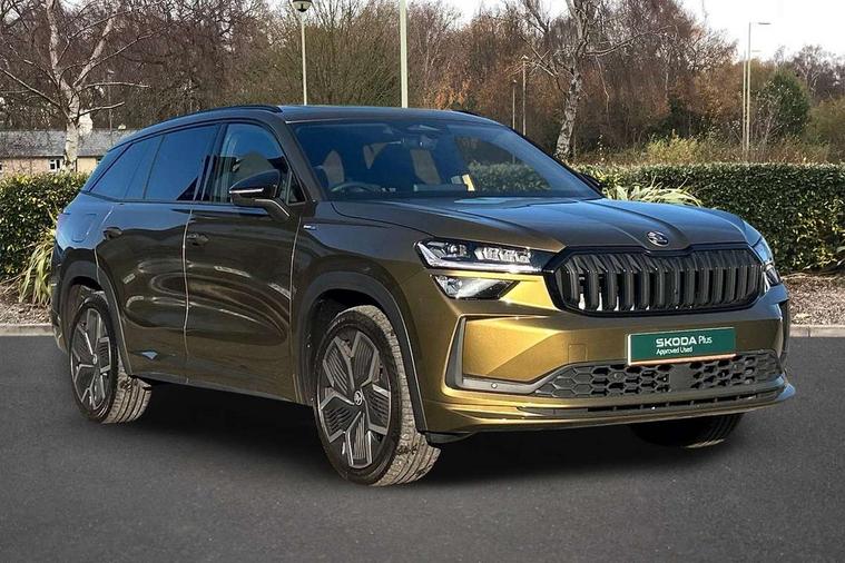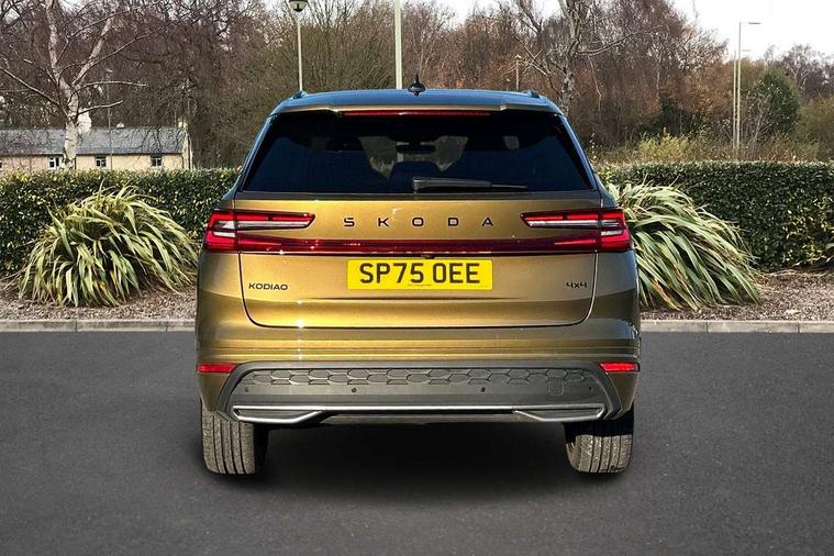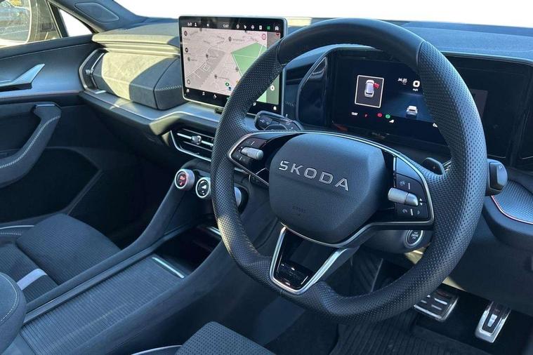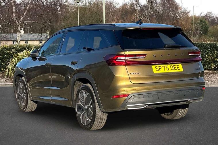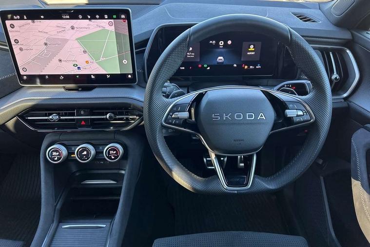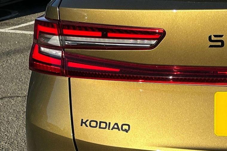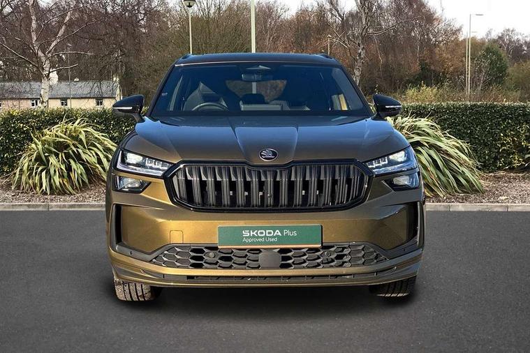 13" satellite navigation touchscreen display, Blind spot detection with door exit warning, Bluetooth system, ChatGPT functionality, Driver alert - Fatigue and drowsiness monitor, Dry display cleaner, Emergency call, Front and rear parking sensors, Front cross traffic assist, Lane assist, Off road modes, PAS, Rear traffic assist, Tailgate unlocking from outside, Traffic sign recognition, USB C Port x 2 in front centre console, Virtual Cockpit - 10.25" digital display, Voice control system, Wireless charging for two smartphones (15W) with cooling function, Wireless SmartLink for Apple CarPlay and Android Auto, Stop/start function, 2x USB-C in the rear, DAB Digital radio, Aero front windscreen wipers with intermittent function, Auto dimming rear view mirror, AWL (all weather lighting) and all weather light with cornering function, Black diffuser and decorative tailpipe with a unique dark chrome finish, Black roof rails, Black sports styling including front grille and window surrounds, Black wheel arch surrounds, Body colour door handles, Cornering light and poor weather light, Electric folding /adjustable/separted heated/folding door mirrors, auto dimming with boarding sports and memory function, Electric front and rear windows, Exterior black decorative trims, Front and rear sports bumpers including lower rear chrome strip, Gloss black door mirrors, Gloss black window frame and D pillar, Heat insulating glass in windshield, Heated rear window, Ice scraper in fuel tank cap, LED daytime running lights, LED third brake light in rear spoiler, Light assistant with automatic headlight control and coming home feature, Logo projection in door mirrors, Privacy glass, Rear roof spoiler, Rear side wing doors, Rear window wiper, Red decorative strip between rear LED lights, Safety reflectors on front and rear doors, Sportline badge on front fenders, Tailgate lettering in Black, Unique dark chrome design logo on alloy wheels, Window control switches with black trim, Windscreen wipers with rain sensor, Without engine designation, 1.5l bottle holder points in all door, 1x centre rear reading light, 2 seat bench in 3rd row, 3 configurable smart dials with 32mm coloured display, 3 seat bench in 2nd row, 4 foldable roof handles with rear coat hooks, Aluminium pedals, Ambient interior lighting - Dashboard, front-door stowage compartments, front and rear door panels and footwell lighting, Automatic gear selector on steering column, Chrome interior door handles, Driver/front passenger reading lights, Fabric headlining, Fixed bench 40:60:40 split folding backrests, Front and rear floor mats, Front centre armrest with jumbo box storage compartment, cup holder and 12V socket, Front sport seats, Height adjustable front headrests, Interior black decorative trims, Isofix child seat fittings in outer middle row rear seats and front passenger with top tether, Manually adjustable steering column, Pollen filter, Rear centre armrest with cupholders, Rear seat boot backrest release, Single front passenger seat, Skoda lettering on steering wheel, Storage pocket including mobile phone pockets on the backs of the front seats, Sunvisors with illuminated vanity mirrors, Three rear height adjustable headrests, Ticket holder on A Pillar, Tri zone climate control, Umbrella in door panel x1 made from sustainable materials, Upper and lower glovebox with card holder and coin compartment, USB C port by rear view mirror for charging only (15W), Acoustic package - Kodiaq, Performance package - Kodiaq, Sportline design selection pack - Kodiaq, Auto door release and activation of warning lights in the event of an accident, Driver and front passenger airbag with knee airbag and front passenger airbag deactivation, Electric child locks, Electronic parking brake, ESC (incl. ABS+EMD+MSR+ASR+EDL+HBA+DSR+RBS+ESBS+MCB+TSA+XDS), Front assist with braking reaction to vehicles, pedestrians and cyclists, Front disc brakes, Fuel cut off safety device, Height adjustable front 3 point seatbelts + pretensioners, Hill hold assist, Junction assist with automatic emergency braking, Rear disc brakes, Safety vest holder in door, Seat belt reminder for all seats, Three point rear seat belts, Two tone horn, Tyre pressure monitor, Alarm with interior monitoring and tilt sensor with safe function, Anti-theft wheel bolts, Immobiliser, Remote central locking with 2 keys, 20" Rila anthacite polished alloy wheel with black matte aero covers,