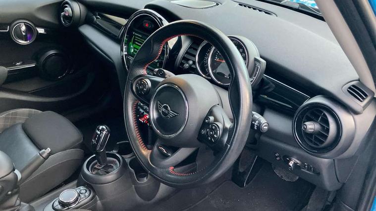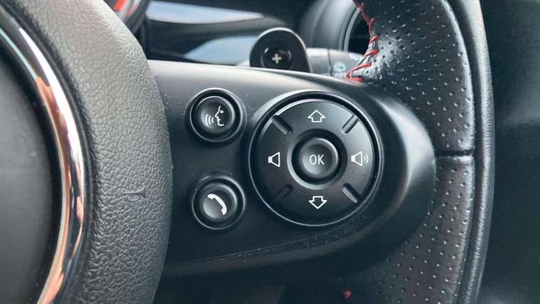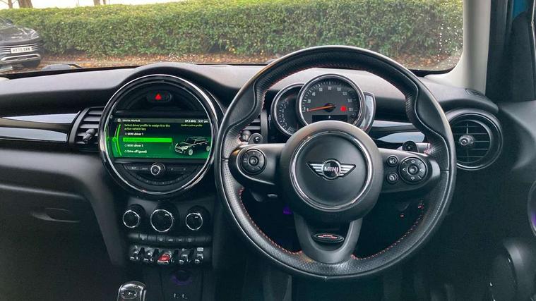 Acoustic seat-belt warning, Basic bluetooth function with USB audio, Brake fluid level warning light, Brake pad wear indicator warning light, DTC - Dynamic traction control, Exterior temperature gauge, Intelligent emergency call, MINI TeleServices, Oil level indicator, On board computer, Push button starter, Service interval indicator, Servotronic PAS, Electronic differential lock, Performance Control, Auxiliary input socket, DAB digital radio module, 2 speed wipers+intermittent wipe, Anti dazzle mirror, Anti trapping/one touch open close front windows, Body colour scoop integrated into engine- compartment lid, Body coloured bumpers, Chrome bezels around rear lights and headlights, Chrome door handles, Chrome plated fuel cap, Chrome plated trim on bottom edge of window, Chrome strip on lower grille, Electric front windows, Electric rear windows, Electrically adjustable door mirrors, Flared wheel arches, Follow me home headlights, Green tinted heat insulating glass, Heated door mirrors/heated windscreen washers, Heated rear window with auto timer, High gloss black tailgate, Honeycomb radiator grille, LED fog lights, LED rear lights, Rear wiper, Side scuttles, Twin chromed exhaust pipes, White indicator lights, 2 rear head restraints, 4 boot load lashing points, 4 way manually adjustable passenger seat with height, reach, tilt, backrest and headrest, 6-way manually adjustable driver's seat, Active carbon filter, Adjustable front seats backrest, Air recirculation system, Auxiliary socket in centre console storage compartment, Centre console storage, Driver's seat height adjuster, Driver/passenger sunvisors, Front and rear cupholders, Front head restraints, Front passenger grab handle, Front seat backrest storage nets, Front sports seats, Gear/selector and handbrake in artificial leather, Internal chrome door handles, Isofix child seat preparation, Luggage compartment lighting, Multifunction steering wheel, Reach + rake adjustable steering column, Rear grab handles, Rear storage trays, Split folding rear seats, Storage compartments in doors, Toolkit in luggage compartment, 3 point seatbelts, 3x3 point rear seatbelts, ABS/EBD, ASC+T, Cornering brake control (CBC), Crash Sensor - activates hazard/interior lighting + unlocks doors, Driver and passenger airbags, Driver/front passenger side airbags, DSC - Dynamic Stability Control, Fuel cut off safety device, Head airbags, Hill start assist, Passenger airbag deactivation system, Seatbelt pretensioners, Tyre pressure warning, Ventilated front disc brakes, Drive away door locking, Locking wheel bolts, Remote central locking/doors+fuel cap+tailgate, Second remote key, Thatcham category 1 alarm + immobiliser,