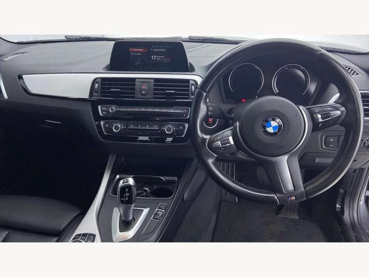Automatic start/stop system, BMW Online services, BMW remote services, BMW Teleservices, Brake force display, Brake pad wear indicator in front and rear, Check Control warning system for monitoring of lights and door/luggage compartment open warning, Eco pro mode, Instrument cluster with speedometer with miles per hour read out, tachometer and fuel gauge, Lights on warning by audio warning signal when ignition is switched off, Oil temperature display via on board computer in instrument cluster, On board computer - average speed+fuel consumption, service interval, clock/date, odometer/trip meter, outside temperature display and ice warning, On board diagnostics, Optimum shift indicator, Personal Profile, Real time traffic information, Servotronic PAS, Speed limiter, Battery age recognition function, Drive Performance Control, BMW professional radio with CD player, DAB Digital radio, Harman/Kardon loudspeaker system, Body colour door handles, Body colour front and rear bumpers, Body colour mirror caps, Body colour roof mouldings, Clear lenses direction indicator lights, Dark chrome exhaust tailpipe, Darkened rear lights with LED light bars, Daytime driving lights, Direction indicator side lights in exterior mirrors, Dynamic brake lights, Electrically adjustable heated door mirrors and washer jets, Follow me home headlights, Front and rear bumper system with replaceable deformation elements, Front and rear electric windows with open and close fingertip control, anti trap facility and comfort closing, Green tinted heat protection glazing, Headlight beam throw control, Heated windscreen washer jets, High gloss black kidney grille with black slats, High level third brake light, Lightweight engineering, M aerodynamic bodystyling, Nearside reverse light in rear light cluster, Offside rear fog lights, Rain sensor including auto headlights activation, Rear window aerial, Rear window wiper, Shark fin antenna, Sun protection glass, Visible VIN plate, Welcome lighting, 12V power socket in centre console, 12V power socket in passenger footwell, 60/40 split folding rear seat, Ambient lighting - switchable BMW classic orange/ cold white LED, Anthracite headlining, Anthracite Velour front and rear floor mats, Conditioned based service, Door sill finishers with illuminated M designation, Four grab handles integrated in roof lining, Front and rear side armrest integrated into door trim, Front folding sliding armrest with storage compartment, Front head restraints, Front sports seats with electric side bolster adjustment, Front storage compartment in centre console and in door trim, Front/rear courtesy lights with soft on/off dimming, Glove box handle with chrome surround, Glovebox, Interior light in front centre interior mirrors and rear centre auto interior light activation when door is opened when ignition switched off, Isofix child seat for two outer rear seats, Leather gear knob and handbrake grip, Luggage compartment access via BMW roundel, Luggage compartment lighting, M sports multi function leather steering wheel, Manually adjustable steering column, Multi-function controls for steering wheel, Rear folding head restraints, Sunvisors with vanity mirrors and ticket pocket, Two cupholders with sliding cover and inlay mat, Two sills lashing eyes in the luggage compartment, 3 point seatbelts on all seats, front pyrotechnic belt tensioners, stopper and belt force limiters, rear coded belt buckles, Active differential brake (ADB), electronic differential lock in DSC-OFF mode, Airbags - Front driver and passenger, front and rear head, front side, curtain head protection, Anti lock braking system (ABS) with brake assist, Automatic Stability Control (ASC), Battery safety cut-off, BMW emergency call, Brake drying, Brake energy regeneration, Braking readiness, Cornering brake control (CBC), Crash sensor activating central locking release, hazard warning lights, Driver and front passenger seat belt security check, DSC+, Dynamic brake control, Dynamic Traction Control - DTC, Front passenger manual airbag deactivation, Front ventilated brake disc, Hill start assist, M Sport braking system, Rear brake discs, Rear child proof door locks, Side impact protection, Twin horns, Tyre pressure monitoring system, Warning triangle and first aid kit, Automatic drive away locking facility, Central locking switch for all doors, fuel filler cap and luggage compartment, Locking wheel bolts, Remote central locking with two Integrate key, one button for opening and closing all lock, open and close window, button for open luggage compartment, Remote control integrated key with blue inset, Start/stop button with comfort go keyless engine start and auto start stop deactivation button, Thatcham Cat.1 alarm and immobiliser, Reduced rolling resistance tyres, Run flat tyres,