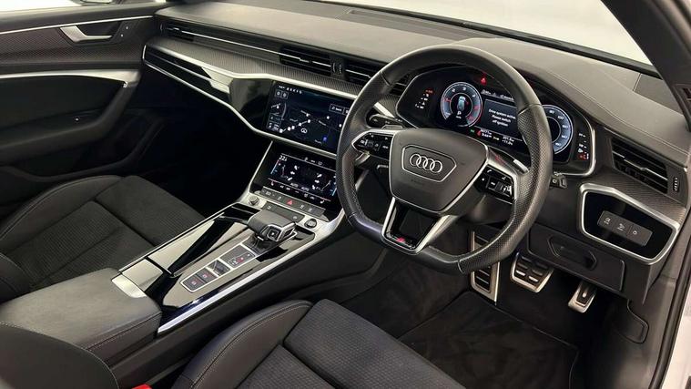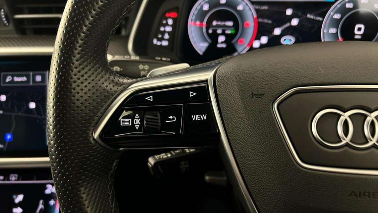 7" high resolution colour driver information display system, Audi connect safety and service (e-call), Audi drive select, Audi parking system plus - acoustic and visual park assist system for front and rear, Audi smartphone interface, Automatic start/stop system with coasting functionality, Bluetooth interface, Lane departure warning system, MMI navigation with MMI touch + twin touch screens 8.8" and 8.6" with haptic and acoustic feedback, Power operated tailgate, Progressive steering, Rear view camera, Service interval indicator, Voice control system, 12V Mild hybrid, 24 litre AdBlue tank, Diesel particulate filter, Sports suspension, Audi music interface, Audi sound system, Auxiliary input socket, DAB Digital radio, USB connection, Black roof rails, Electric front/rear windows, Frameless auto dimming interior rear view mirror, Gloss black exterior mirror housings, Gloss black highlights on the exterior area of the Audi Single frame, Gloss black highlights on the front and rear bumpers, Gloss black highlights on the radiator grille, Gloss black highlights on the side windows trim strips, Headlight washers, Heat insulating darkened glass in side and rear windows, Heat insulating glass in windshield, LED rear lights, LED signature front daytime running light, Matrix LED headlights with dynamic rear indicators, Matt black rear diffuser with diffuser strip and tailpipes in chrome, Matt black side air intake grille with inlay in matt aluminium, Privacy glass, Rain and light sensors, Rear roof spoiler, Signature rear LED light design, 2 zone deluxe electronic climate control, 4 way electric lumbar support for driver and front passenger, 40/20/40 split folding 3 rear seat bench in 3 parts with rear centre armrest, Black cloth headlining, Electrically adjustable front seats with driver memory, Front centre armrest, Front head restraints, Front/rear floor mats, Heated front seats, Height/reach adjust steering wheel, Illuminated door sill trims with S logo, Illuminated sun visors with vanity mirrors, ISOFIX child seat mounting and Top Tether with front passenger airbag deactivation, Leather gear knob, Luggage compartment system, Rear headrests, Stainless steel pedals and foot rest, Tool kit and car jack, LED Interior Ambient Lighting Pack - A6, Non smoking pack - A6, 3 point seatbelts on all seats, Airbags - Front side, front and rear including head, Audi pre-sense front, Black seatbelts, EBD - Electronic brakeforce distribution, Electromechanical parking brake, Electronic Stability Control (ESC) including ABS, ASR and EDL, Extended pedestrian protection measures, Seatbelt monitoring, Tyre pressure warning light, Warning triangle and first aid kit, Anti theft alarm with tow away protection, Anti-theft wheel bolts and wheel loosening detection, Immobiliser, Keyless Go, Remote central locking, Matt brushed aluminium dark inlays, 20" 5 V spoke star design Audi sport cast aluminium alloy wheels in matt titanium look,