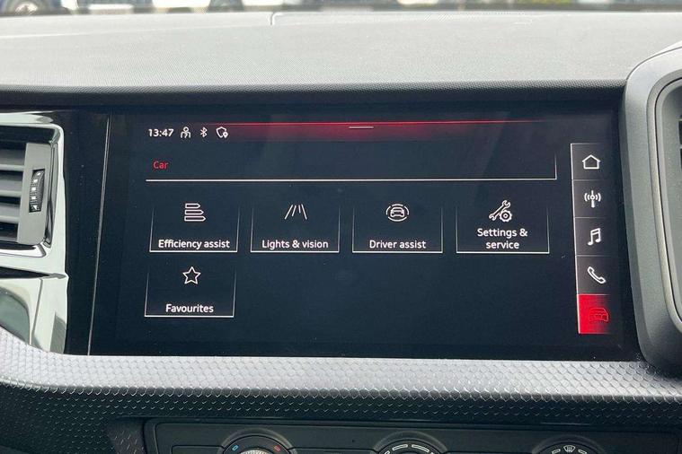 10.25" Digital instrument cluster display classis style instrument dials + speed, odometer, time, outside temperature, telephone menu + fuel level warning, Audi smartphone interface with connect compatible smartphone via USB directly MMI display + Nav, music, third party apps controlled via MMI controller, Automatic start/stop system, Bluetooth interface, Driver's information system, Electromechanical power steering, Emergency e-call, Emergency services call system, Lane departure warning system, Service interval indicator, Speed limiter, Voice control system, Washer fluid level indicator, Dynamic suspension, 1 x SDXC card reader, 2 x USB type C connection points, 6 passive loudspeakers, DAB Digital radio, MMI radio plus with 8.8" colour MMI display screen and MMI touch, Auto dimming rear view mirror, Body coloured bumpers, Body coloured door mirrors, Electric front and rear windows, Electrically adjustable, heated, folding door mirrors with integrated LED side indicator, Front side air inlets with front spoiler lip and rear diffuser in matt black grained, Heat insulating glass windscreen and side windows, Heated rear windscreen, High level LED brake light, LED headlights with LED rear lights + dynamic rear indicators + headlight adjustment and high beam, turning light + LED daytime running lights, Radiator grille in matt black, Rain and light sensors, Rear fog lights, Rear side wing doors, Rear wing door, Rear wiper, 12V socket in centre console with two cup holders, 3 rear seats with headrests, 3 seat bench in 2nd row, 3 spoke leather multifunction plus steering wheel, 40:60 Split folding rear seat or folded fully, Air vents, door handle recesses and centre console in black, Delta cloth upholstery, Driver and passenger seat with manual height adjust with forward and backwards adjustment, Front head restraints, Front passenger seat, Front/rear floor mats, Height and reach adjustable steering wheel, ISOFIX child seat mounting for front passenger and outer rear seats including top tether attachment point of outer rear seats, Leather gear knob with aluminium trim, Leatherette handbrake grip, Luggage compartment light with front and rear reading lights, Manual air conditioning, Titanium grey cloth headlining, Luggage compartment pack - A1, 3x3 point rear seatbelts, Audi pre-sense front with pedestrain and cyclist recognition, Brake assist function, Driver and front passenger airbag with front side and head airbags, Electronic Stability Control including ABS, EBD, ASR and EDL, Front passenger airbag deactivation switch, Hill hold assist, Manual rear child locks, Seatbelt height adjustment for front seats, Seatbelt monitoring, Tyre pressure warning light, Warning triangle and first aid kit, Anti theft alarm, Anti theft wheel bolts and loose wheel warning, Immobiliser, Remote central locking with 2 foldaway keys, Black inlays polygon structure, 15" 5 arm design alloy wheels,