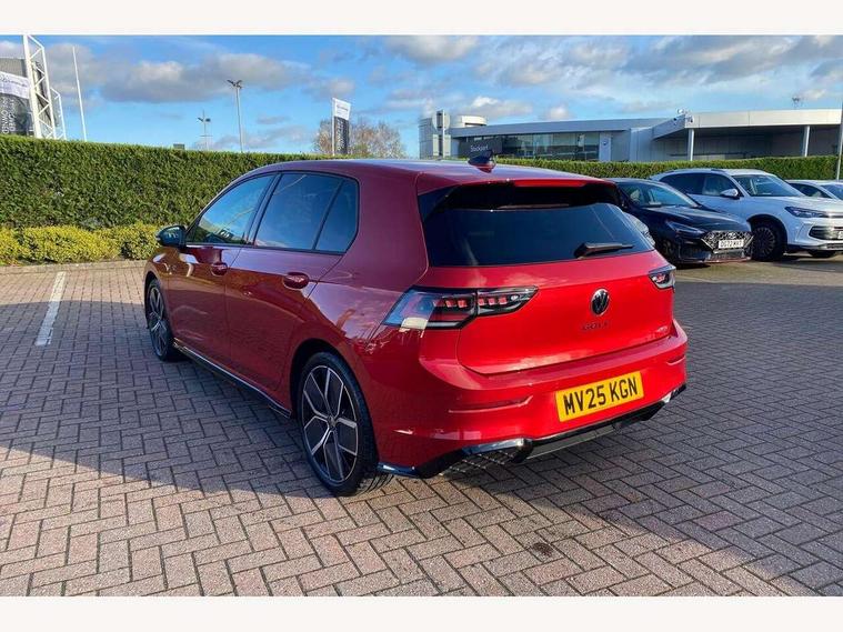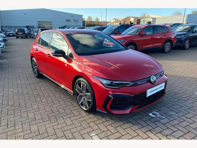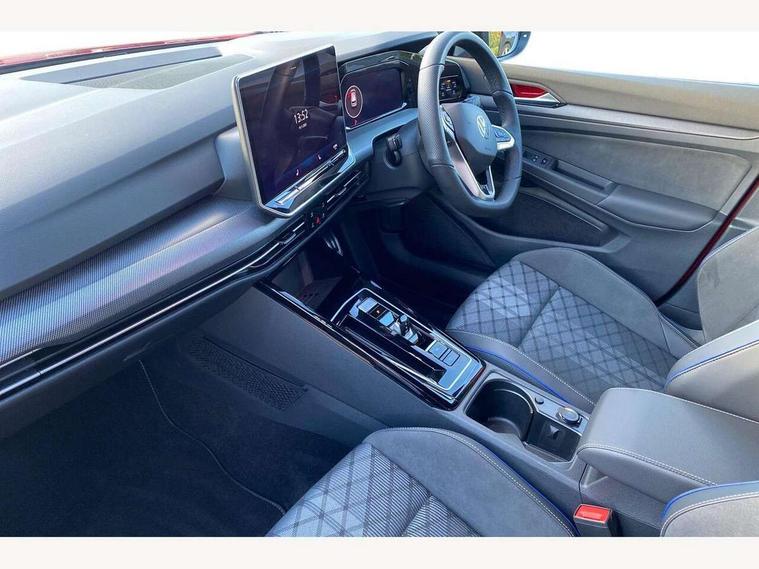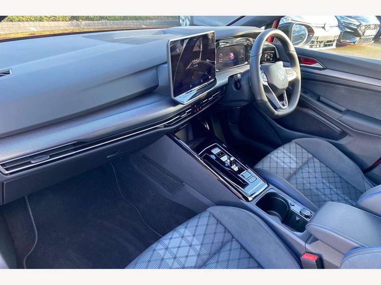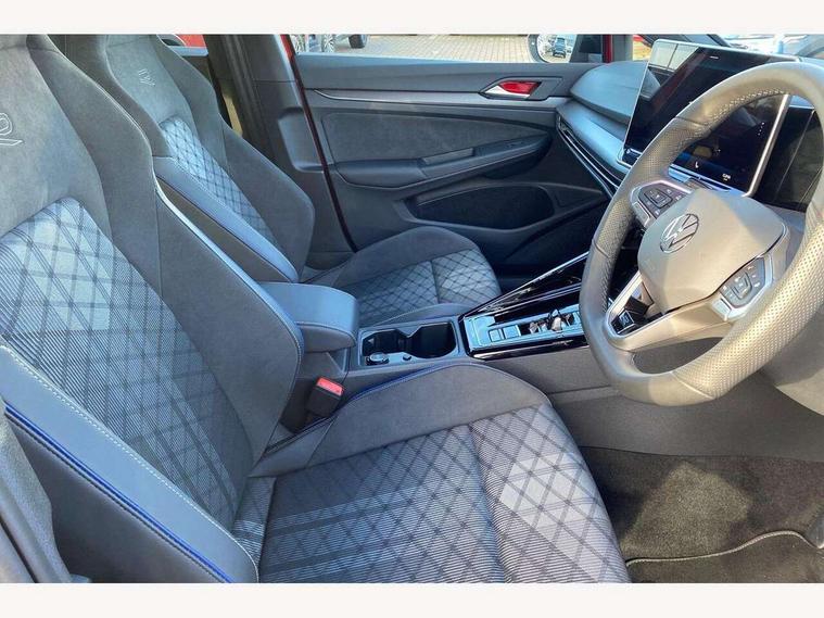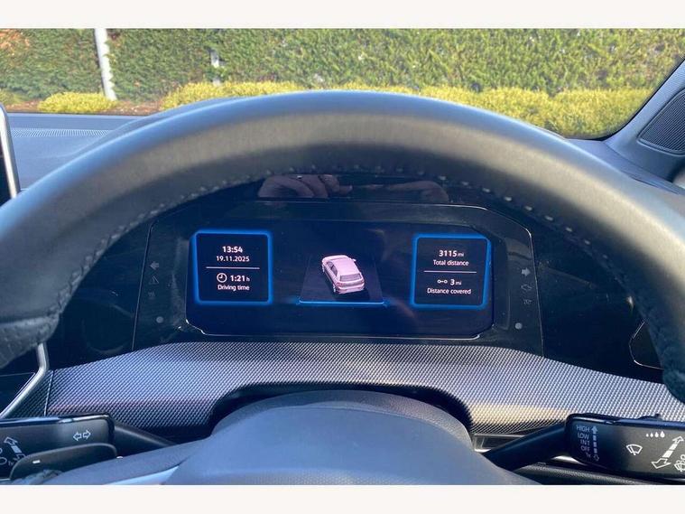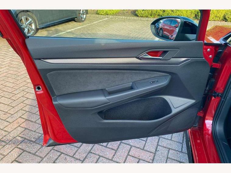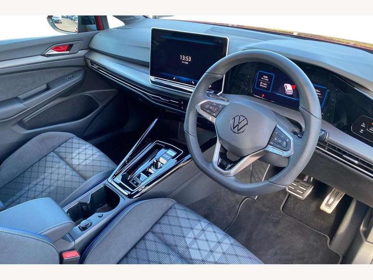 Activated carbon canister, Adaptive cruise control (ACC), Advanced driver attention and drowsiness monitor, Dynamic road sign display, Dynamic steering, E-Sim card for online connectivity, eCall emergency call system, Emergency assist, Lane keeping system Lane Assist, Multi-color Digital cockpit pro, selection of different info profile possible, Multifunction front facing camera for distance control, Navigation system, Oncoming vehicle braking when turning including swerve support, Preparation for light assist system, Speed limiter, Speedo, rev counter, electronic odometer, trip, service interval display, exterior temperature and fuel gauge, Traffic jam assist, Voice enhancer and voice control, Warning signal and warning light for front and rear seatbelts not fastened, We connect plus preparation, We connect preparation, Wireless app connect, Hybrid propulsion system, Petrol Particulate Filter, Start-stop system with battery regeneration (recuperation - energy recovery during braking), XDS electronic differential lock for improved traction and handling, 2 USB C ports in front, 2 USB charging sockets on the centre console in the rear charging capacity upto 45W, Comfort telephony + wireless charging, without wireless aerial connection, Digital radio reception (DAB), Diversity antenna for FM reception, Gaming platform via car app, Infotainment system with 12.9" display, Mobile phone interface with inductive charging feature, 3rd brake light, Auto dimming rear view mirror, Auto headlights, Automatic headlamp activation with Coming home and Leaving home feature, Body colored bumpers in R-Line style, Body colour door handles, Exterior mirrors convex on the left and aspherical on the right, Front and rear electric windows, Heat insulating windshield made of laminated glass, LED daytime running lights, Rain sensor, Rear exhaust tailpipe, Rear fog light on one side and reversing lights on both sides, Rear side wing doors, Rear windscreen washer and wiper with interval delay, Remote electrically foldable door mirrors, puddle lights and reverse activated passenger's door mirror, Volkswagen logo in front, illuminated lighting animation with wake up/goodbye scenario and illuminated door handles, Welcome light with surround lighting, 12V socket in front centre console, 12V socket in luggage compartment, 3 rear head restraints, 3 seat bench in 2nd row, Ambient lighting with 30 colour including LED light unit in front footwell with selectable light colour, Brushed stainless steel pedals, Carpet mats, front and rear, Chrome plated radiator grille inserts, air vent surrounds and light switch surrounds, Front centre armrest, Front seat lumbar support adjuster, Heated front seats, Integrated front head restraints, ISOFIX anchors for child seats on outer rear bench seats and on front passanger seat compatible for i-Size, Luggage compartment lighting, Manual height adjustable front seats, Plastic gear knob, Premium sports seats in front, Rear cupholder and loadthough, Sardegna cloth upholstery with front and outer rear seats Art Velour inner sides of bolsters, Single front passenger seat, Soul black instrument panel, Split folding backrest with centre armrest and unsplit rear seat bench, Storm grey roof lining, Sun visors with illuminated vanity mirrors, Black exterior Styling package with Matrix LED headlights - Golf, Winter package - Golf DSG Estate/Hatchback, 3 point height adj front seatbelts + pretensioners, 3 rear three point seatbelts, ABS, Autonomous emergency braking front assist with pedestrian and cyclist monitoring, Child locks on rear doors, Driver and front passenger airbag with front passenger airbag deactivation, Electronic parking brake with auto hold, ESC (Electronic Stability Control), Extended pedestrian protection measures, Hill start assist, Rear disc brakes, Two tone horn, Tyre pressure loss indicator, Volkswagen roadside assistance, Anti theft wheel bolts, Preparation for alcohol interlock, Decorative inserts carbon grey for dashboard and front door trim panels, 18" Leeds alloy wheels,