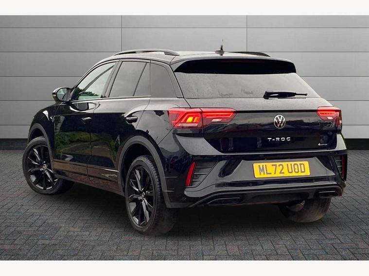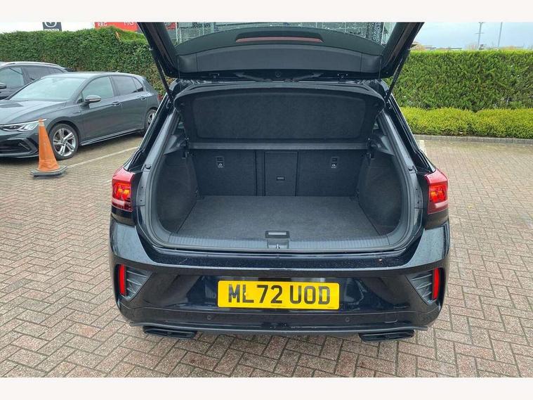 10.25" Digital cockpit pro, Bluetooth mobile phone interface, Driver alert system with fatigue detection, Driver tips and journey analysis, Emergency call service, Lane keeping system Lane Assist, Modified key software - reduce switch off time for key status change to Long no motion, Online services, Park assist including front and rear parking sensors, Service interval indicator, Tailgate/trunk lid release from outside, Think blue trainer driver tips and journey analysis, Warning sound and light for front seatbelts unfastened, Wireless app connect, Battery regeneration during braking, Four wheel drive, Start/stop function with battery regeneration, Diversity antenna for FM reception, Front and rear 6 speakers, Music playback - MP3, WMA and AAC files, Premium USB cable in choice of either Apple or Android smartphone compatibility, SD card slot, Simultaneous pairing of 2 compatible mobile devices, Title and cover art display, We Connect and We Connect Plus functionality, 3rd brake light, Auto dimming interior rear view mirror, Automatic hazard lights activation under emergency braking, Automatic headlight control with LED separate daytime running lights with coming/leaving home function, Extended roof spoiler, Exterior mirrors aspherical on driver side, convex on front passenger side, External USB type C socket and charging sockets, Front windscreen wiper with intermittent wipe and 4 position delay, Heated rear window, LED Plus headlamps, LED rear combination lamps, LED rear number plate lights, LED tail lamp rear comination lamps, Power windows with comfort operation and circuit breaker, R-Line design body coloured bumpers, Rain sensor, Rear exhaust tailpipe, Rear fog light on one side and reversing lights on both sides, Rear side wing doors, Rear wash/wipe with intermittent wipe setting, Remote electrically foldable door mirrors, puddle lights and reverse activated passenger's door mirror, 12V power socket in centre console, 3 rear head restraints, 3 seat bench in 2nd row, 4 load lashing points in luggage compartment, Air care climatronic air conditoning system with active combination filter and 2-zone temperature control, Black roof lining, Chrome plated radiator grille inserts, air vent surrounds and light switch surrounds, Door and side trim panel with leatherette insert, Drawer under drivers seat, Front + rear carpet mats, Front centre armrest, Front cupholders x 2, Front footwell illumination, Front reading light, Front scuff plates with R logo, Instrument lighting, white adjustable panel illumination, Interior ambient lighting and surround lighting, Interior light delay, Isofix child seat preparation, Leather gearshift handle, Load-through provision with cup holder when folded down ('Unsplit rear seat bench, split folding backrest, with centre armrest), Luggage compartment lighting, Single front passenger seat, Stainless steel pedals, Storage compartment in left and right luggage area, Storage compartment in rear doors, Storage compartments in driver and front passenger doors, Sunvisors with illuminated vanity mirrors, Variable boot floor, height adjustable and removable, Driver assistance pack without proactive passenger protection - T-Roc, 3 point height adj front seatbelts + pretensioners, 3 point seatbelts in outer rear with ECE label, ABS, Child locks on rear doors, Driver and front passenger airbag with front passenger airbag deactivation, Driver and front passenger safety-optimised head restraints, Drivers seatbelt reminder, Electronic parking brake, Electronic Stability Control (ESC) inc EDL (Electronic Differential Lock) and ASR (Traction Control), Front and rear passengers curtain airbag system including front side airbags, Front assist with city emergency braking and pedestrian monitoring, Front seat side impact airbags, Hill start assist, Predictive pedestrian protection, Rear disc brakes, Single tone horn, Tyre pressure loss indicator, Volkswagen roadside assistance, Alarm with interior protection, Anti-theft alarm system with interior monitoring, backup horn, and towing protection, Remote central locking with SAFELOCK, radio remote control with 2 remote control folding keys, Trims for alloy wheels,