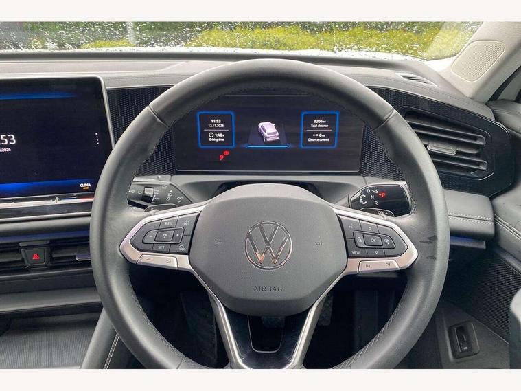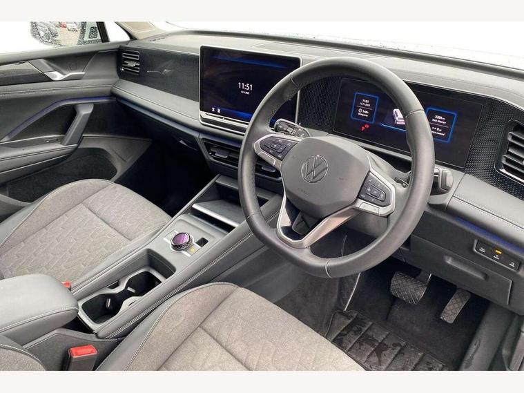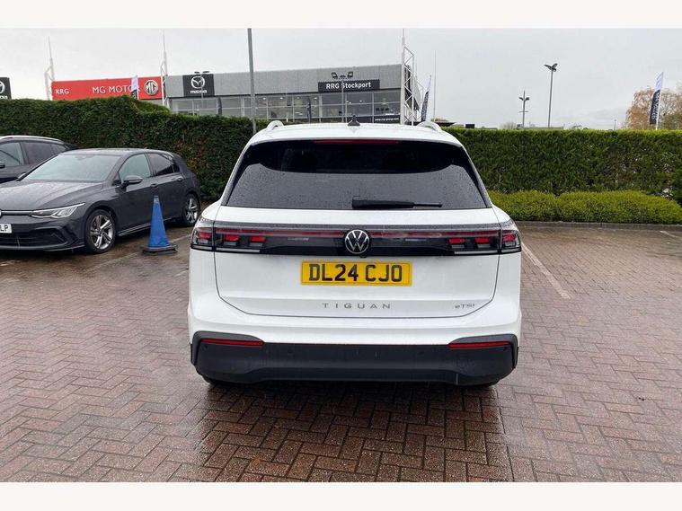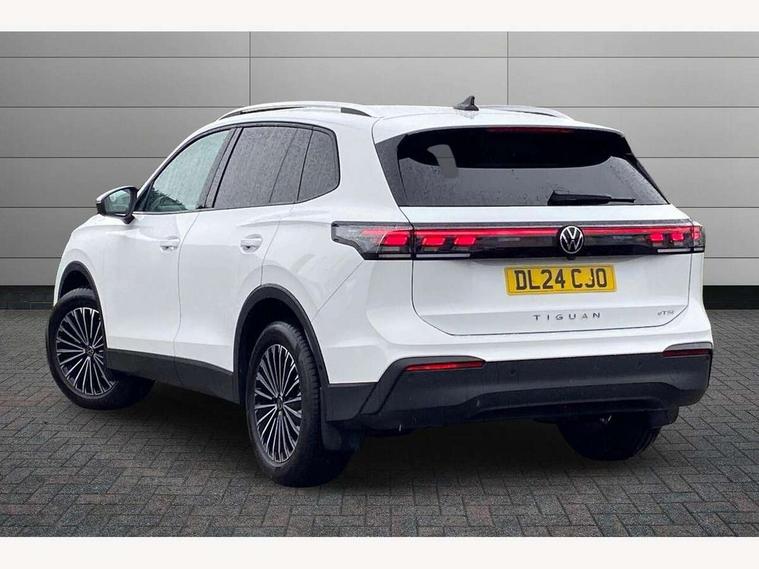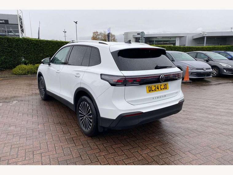 Adaptive cruise control (ACC), Advanced driver attention and drowsiness monitor, Bluetooth mobile phone interface, Car2X technology, Digital Cockpit Pro - 10.25" high resolution dash display screen with customisable menus and information, Dynamic road sign display, E-Sim card for online connectivity, eCall emergency call service, Front Assist - Autonomous emergency braking with pedestrian and cyclist monitoring, Lane change system, Side assist, Rear traffic alert and Exit warning system, Lane keeping system Lane Assist, Multifunction front facing camera, Oncoming vehicle braking when turning including swerve support, Park assistance plus with front and rear parking sensors, Power assisted steering with speed sensitive, Start/stop system with regenerative braking, Warning signal and warning light for front and rear seatbelts not fastened, Wireless App-Connect, Front wheel drive, Digital radio reception (DAB), Diversity antenna for FM reception, Ambient lighting with logo projection, Auto dimming interior rear view mirror, Automatic headlight control system, Body coloured bumpers and air intake with chrome trim, Body coloured door handles, Body-coloured exterior mirror housings, Coming/leaving home lighting function, Heat insulating glass in side and rear windows, Heat insulating windshield, Heated rear window, High level 3rd brake light, Illuminated door handle recesses, Illuminated lightline between headlamps, Rain sensor windscreen wipers, Rear fog light on one side, reversing light on both sides, Rear side wing doors, Rear wiper, 12V outlet in center console rear and in luggage compartment, 12V socket in centre console, 3 bench rear seats in 2nd row, Air care climatronic 3 zone air conditioning system with rear air conditioning control panel, Carpet mats, front and rear, Centre console with illuminated storage compartment with sliding cover and two drinks holders, Ceramique headlining, Door and side trim panel in foam film and woven fabric, Front centre armrest, ISOFIX anchors for child seats on outer rear seats and front passenger seat. Compatible with i-Size, Mechanical rear seat release, Power adjustable lumbar support in front, Rear bench seat, split folding, longitudinally movable and folding with load-through hatch and centre armrest, Safety optimised front head restraints, Single front passenger seat, Sun visors with illuminated vanity mirrors, Three rear head restraints, Variable luggage compartment floor, Comfort package with park assist plus and Safelock - Tiguan, Design package - Tiguan, 3 point seat belt for centre rear seats, 3 Point seat belts in front with pretensioners, 3 point seatbelts in outer rear with ECE label, Driver and front passenger airbag with front passenger airbag deactivation, Electronic parking brake with auto hold, Front and rear curtain airbags, Front and rear side airbags, Front centre airbag, Front disc brakes, Manual child proof rear door locks, Rear disc brakes, Two tone horn, Warning triangle, Anti theft wheel bolts, Soul instrument panel, Airstop tyres,