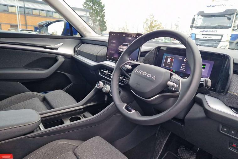 13" satellite navigation touchscreen display, Blind spot detection with door exit warning, Bluetooth system, ChatGPT functionality, Driver alert - Fatigue and drowsiness monitor, Dry display cleaner, Emergency call, Front and rear parking sensors, Front cross traffic assist, Lane assist, PAS, Rear traffic assist, Rear view camera, Tailgate unlocking from outside, Traffic sign recognition, USB C Port x 2 in front centre console, Virtual Cockpit - 10.25" digital display, Voice control system, Wireless charging for two smartphones (15W) with cooling function, Wireless SmartLink for Apple CarPlay and Android Auto, Stop/start function, 2x USB-C in the rear, 8 Speakers, DAB Digital radio, Aero front windscreen wipers with intermittent function, All weather light, Auto dimming rear view mirror, Black wheel arch surrounds, Body colour bumpers, Body colour door mirrors and handles, Cornering light and poor weather light, Electric folding /adjustable/separted heated/folding door mirrors, auto dimming with boarding sports and memory function, Electric front and rear windows, Exterior black decorative trims, Heat insulating glass in windshield, Heated rear window, Ice scraper in fuel tank cap, Invisible tailpipe, LED daytime running lights, LED front fog lamps, LED Headlights, LED rear fog light, LED rear lights, LED third brake light in rear spoiler, Light assistant with automatic headlight control and coming home feature, Logo projection in door mirrors, Rear roof spoiler, Rear side wing doors, Rear window wiper, Safety reflectors on front and rear doors, Unique dark chrome design logo on alloy wheels, Window control switches with black trim, Windscreen wipers with rain sensor, Without engine designation, 1.5l bottle holder points in all door, 1x centre rear reading light, 2 seat bench in 3rd row, 3 configurable smart dials with 32mm coloured display, 3 seat bench in 2nd row, 4 foldable roof handles with rear coat hooks, Ambient interior lighting - Dashboard, front-door stowage compartments, front and rear door panels and footwell lighting, Automatic gear selector on steering column, Chrome interior door handles, Driver/front passenger reading lights, Fabric headlining, Fixed bench 40:60:40 split folding backrests, Front and rear floor mats, Front centre armrest with jumbo box storage compartment, cup holder and 12V socket, Height adjustable front headrests, Isofix child seat fittings in outer middle row rear seats and front passenger with top tether, Manual height adjustment for front passenger seats and thigh support extender, Manual lumbar support for front passenger seat, Manually adjustable steering column, Pollen filter, Rear centre armrest with cupholders, Rear seat boot backrest release, Single front passenger seat, Skoda lettering on steering wheel, Storage pocket including mobile phone pockets on the backs of the front seats, Sunvisors with illuminated vanity mirrors, Three rear height adjustable headrests, Ticket holder on A Pillar, Tri zone climate control, Umbrella in door panel x1 made from sustainable materials, Upper and lower glovebox with card holder and coin compartment, USB C port by rear view mirror for charging only (15W), Variable boot floor, Auto door release and activation of warning lights in the event of an accident, Driver and front passenger airbag with knee airbag and front passenger airbag deactivation, Electric child locks, Electronic parking brake, ESC (incl. ABS+EMD+MSR+ASR+EDL+HBA+DSR+RBS+ESBS+MCB+TSA+XDS), Front assist with braking reaction to vehicles, pedestrians and cyclists, Front disc brakes, Fuel cut off safety device, Height adjustable front 3 point seatbelts + pretensioners, Hill hold assist, Junction assist with automatic emergency braking, Rear disc brakes, Safety vest holder in door, Seat belt reminder for all seats, Three point rear seat belts, Two tone horn, Tyre pressure monitor, Alarm with interior monitoring and tilt sensor with safe function, Anti-theft wheel bolts, Immobiliser, Remote central locking with 2 keys, Breakdown kit, Tool kit,