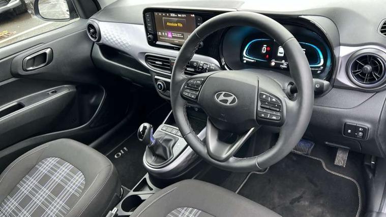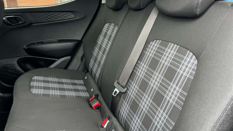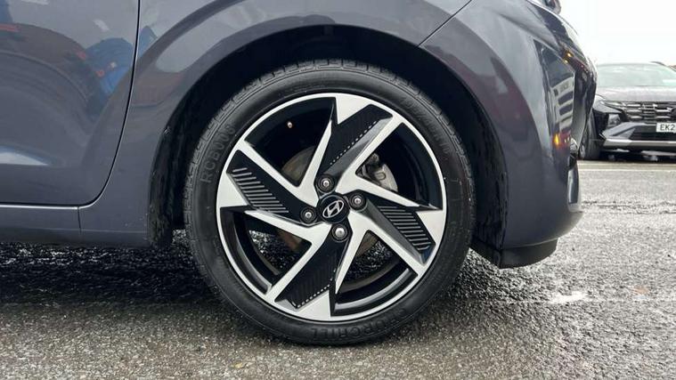 Apple car play/Android Auto, Bluelink mobile remote connectivity, Bluetooth connectivity with voice recognition, Cruise control, Driver attention alert system, eCall emergency call system, Forward Collision-Avoidance Assist (FCA) - Pedestrian/Cyclist, Front USB-C charging and USB-A data, Full-width 4.2" LCD instrument cluster, Intelligent speed limit assist, Lane departure warning system with lane keep assist - LKAS, Lane follow assist, PAS, Rear parking sensors, Rear view camera with guidelines, Roadside assistance, Start/Stop function, Tailgate, Trip computer, Wireless charging pad, 2 front/2 rear speakers, Rear USB-C device charger, Steering wheel audio, phone and cruise controls, 1 speed non intermittent rear windscreen wiper, Black finish on B pillars, Body colour door handles, Body coloured bumpers, Body coloured door mirrors, Electric folding door mirrors, Electric front windows, Electric rear windows, Electrically adjustable and heated door mirrors, Flat metal emblem, Front fog lights, Front grille in glossy black, Front intermittent wipers, Halogen bi-function headlights, Headlights inner with Black Blade design, Heated rear window, High beam assist, Indicator light on door mirrors, LED DRLs diamond mesh design, Privacy glass - Rear windows and tailgate, Rear roof spoiler with integrated LED brake light, Rear side wing doors, 12v power outlet - front, 3 seat bench in 2nd row, 60/40 split folding flat to floor rear seats, Air conditioning, Auto light control, Bottle holders in front/rear doors + front centre console, Cabin and luggage compartment interior lighting, Cloth upholstery, Driver + passenger vanity mirrors, Driver's seat height adjustment, Driver/passenger sunvisors with ticket holders, Floor mats, Front door pockets, Front Head Restraints - Vertical and Horizontal Adjustment, Front LED blue mood lighting, Glove compartment, Heated front seats, Heated steering wheel, Height adjustable steering column, Isofix child seat preparation, Leather multifunction steering wheel, Rear door pockets, Single front passenger seat, Vertical adjustment rear head restraints, 3x3 point rear seatbelts, Airbags - front, front side and curtain airbags, Anti-lock brake system (ABS), Autonomous emergency braking (AEB) with forward collision warning system, Brake assist function, Childproof rear door locks, Electronic stability control, Front and rear seatbelt reminder, Front seatbelt pretensioners, Hill start assist control (HAC), Passenger airbag deactivate switch, Traction control, Tyre pressure monitoring system, Immobiliser, Perimeter alarm, Rear occupant alert, Remote central locking, Second remote key, Smart key with motion sensor, Speed sensitive auto door locking, 16" alloy wheels, Tyre repair kit,