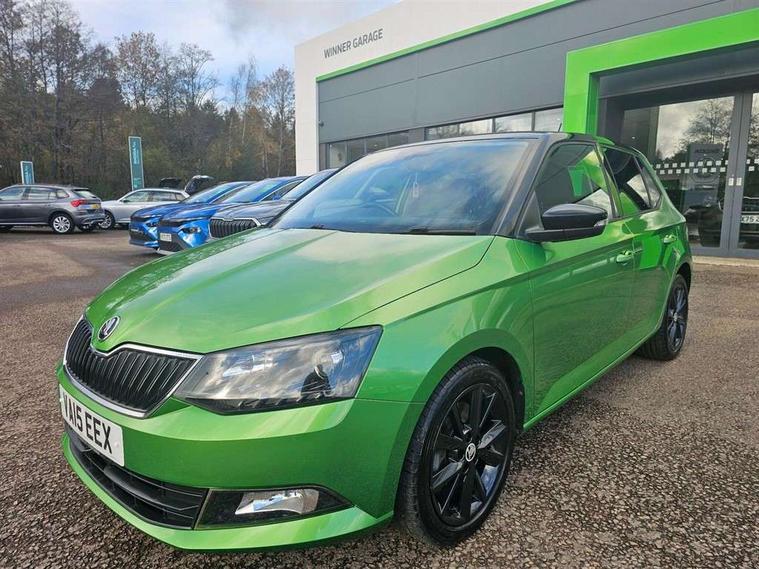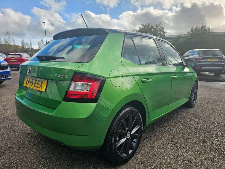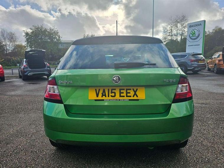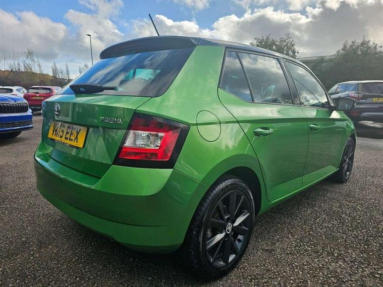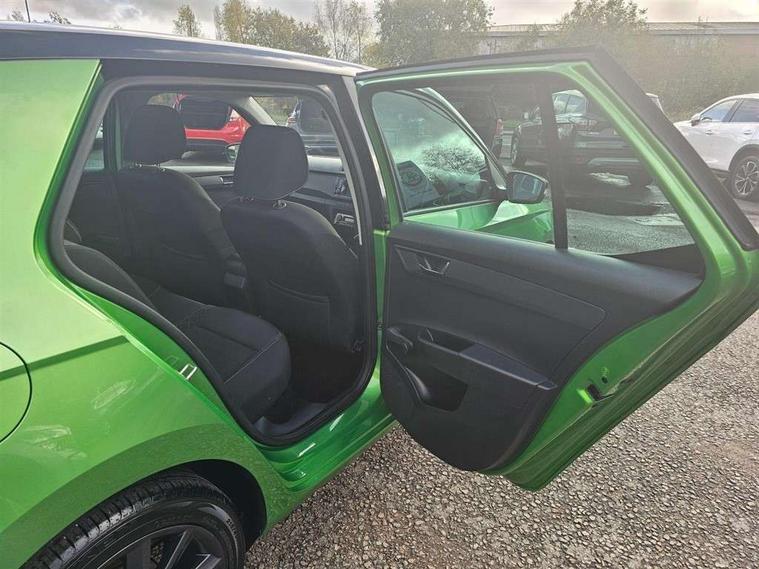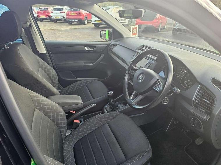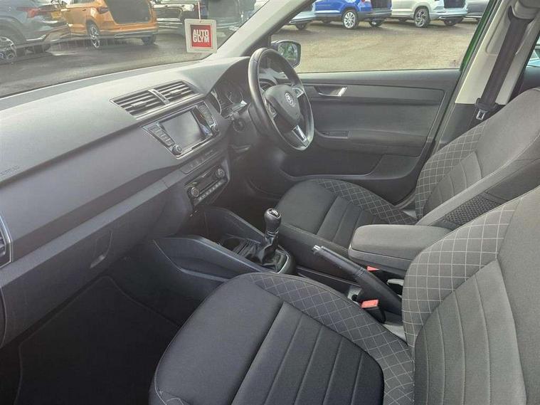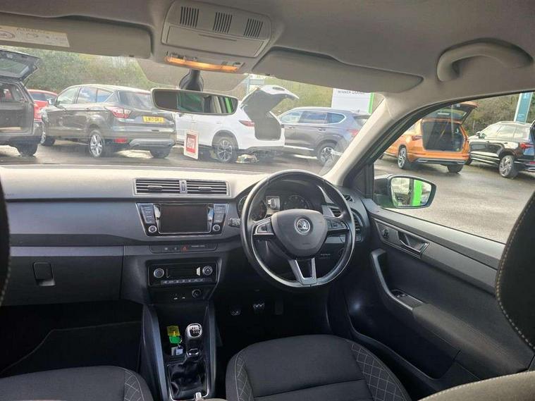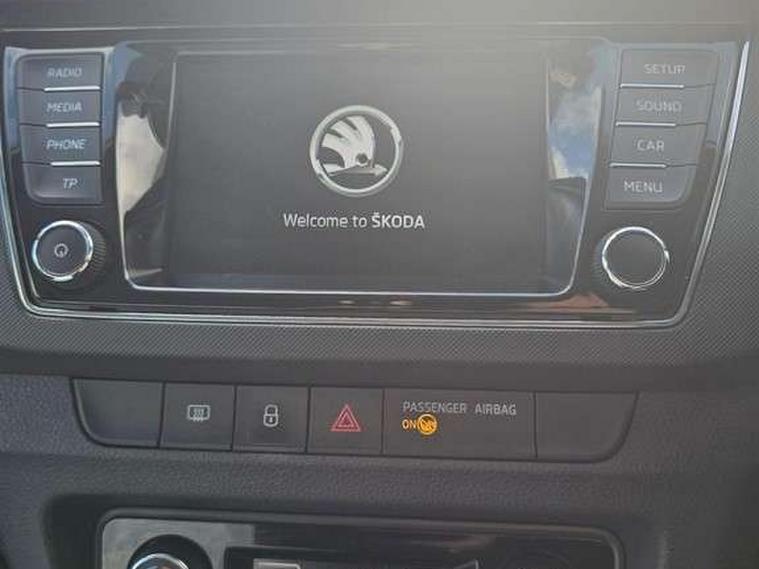 Bluetooth system, Exterior temperature gauge, Front assistant collision mitigation, Maxi dot trip computer, PAS, Service interval indicator, SmartLink, Speed limiter, Auxiliary socket for external MP3 player, Bolero radio with telephone control, Mirror Link, USB and SD card, DAB Digital radio, Body colour bumpers, Body colour door handles, Chrome grille surround, Electric front windows, Electrically adjustable and heated door mirrors, Heated rear window, Height adjustable headlamps, Intermittent rear wash/wipe, LED daytime running lights, Tinted rear windows, Tinted windscreen, 1.5L bottle holder in front door panels, 2 height adjustable rear headrests, 60/40 split folding rear seat, Boot stowage box, Cargo area storage tray, Climate control air conditioning, Cloth upholstery, Driver + passenger vanity mirrors, Folding grab handles, Front centre armrest, Front reading lights, Front/rear floor mats, Height adjustable driver's seat, Height adjustable front headrests, Height adjustable passenger seat, Height/reach adjust steering wheel, Interior light with delay, Leather gearshift, Leather handbrake, Lower glovebox cover, Luggage load hooks, Parcel shelf, Pollen filter, Rear courtesy light, Rear storage trays, Storage compartment under front seats, Ticket holder, Two rear outer seat isofix location points, Arkamys surround sound pack - Fabia, Chrome Pack - Fabia, 3x3 point rear seatbelts, ABS, Curtain airbags, Driver and passenger airbags, Driver and passenger side airbags, EDS, ESC with ASR, Front seatbelt pretensioners, Hydraulic Brake Assist (HBA), Passenger airbag deactivate switch, Seatbelt warning, Tyre pressure monitor, Alarm with interior monitoring, Immobiliser, Locking wheel bolts, Remote central locking,
