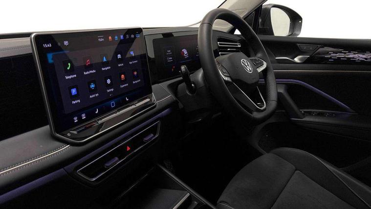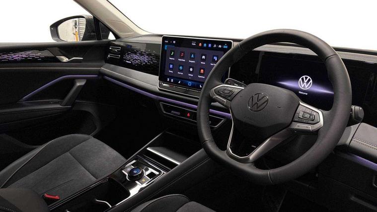 Adaptive cruise control (ACC), Advanced driver attention and drowsiness monitor, Bluetooth mobile phone interface, Comfort drive travel assist, lane keeping system, lane assist and emergency assist, Digital Cockpit Pro - 10.25" high resolution dash display screen with customisable menus and information, Dynamic road sign display, E-Sim card for online connectivity, eCall emergency call service, Front Assist - Autonomous emergency braking with pedestrian and cyclist monitoring, Lane change system, Side assist, Rear traffic alert and Exit warning system, Multifunction front facing camera, Oncoming vehicle braking when turning including swerve support, Park assistance plus with front and rear parking sensors, Power assisted steering with speed sensitive, Start/stop system with regenerative braking, Warning signal and warning light for front and rear seatbelts not fastened, Wireless App-Connect, Front wheel drive, Digital radio reception (DAB), Diversity antenna for FM reception, Ambient lighting with logo projection, Auto dimming interior rear view mirror, Automatic headlight control system, Body colored bumpers in R-Line style, Body coloured door handles, Body-coloured exterior mirror housings, Chrome moldings on the side windows, Coming/leaving home lighting function, Heat insulating glass in side and rear windows, Heated rear window, Heated windscreen washer jets, High level 3rd brake light, Illuminated door handle recesses, Illuminated lightline between headlamps, Laminated safety glass from B-pillar backwards 90% tinted, Laminated safety glass windshield, Rain sensor windscreen wipers, Rear fog light on one side, reversing light on both sides, Rear side wing doors, Rear wiper, Silver roof rails, 12V outlet in center console rear and in luggage compartment, 12V socket in centre console, 3 bench rear seats in 2nd row, Air care climatronic 3 zone air conditioning system with rear air conditioning control panel, Carpet mats, front and rear, Centre console with illuminated storage compartment with sliding cover and two drinks holders, Ceramique headlining, Chrome elements on the mirror switch and power window switches and door pulls, Door and side trim panel with leatherette insert, Door sill protectors, Front centre armrest, Interior ambient lighting with 30 colour options, ISOFIX anchors for child seats on outer rear seats and front passenger seat compatible with i-Size, Mechanical rear seat release, Power adjustable lumbar support in front, Rear bench seat, split folding, longitudinally movable and folding with load-through hatch and centre armrest, Safety optimised front head restraints, Single front passenger seat, Sports comfort seats in front, Sun visors with illuminated vanity mirrors, Three rear head restraints, Variable luggage compartment floor, Comfort package incl. Memory feature for Park assist and Safelock - Tiguan, Driver assistance package - Tiguan, 3 point seat belt for centre rear seats, 3 Point seat belts in front with pretensioners, 3 point seatbelts in outer rear with ECE label, Driver and front passenger airbag with front passenger airbag deactivation, Electronic parking brake with auto hold, Front and rear curtain airbags, Front and rear side airbags, Front centre airbag, Front disc brakes, Manual child proof rear door locks, Rear disc brakes, Two tone horn, Warning triangle, Anti theft wheel bolts, Decorative inserts Cross in dash and front door panels, Interior door handle in matte chrome, Soul instrument panel,