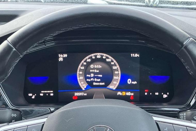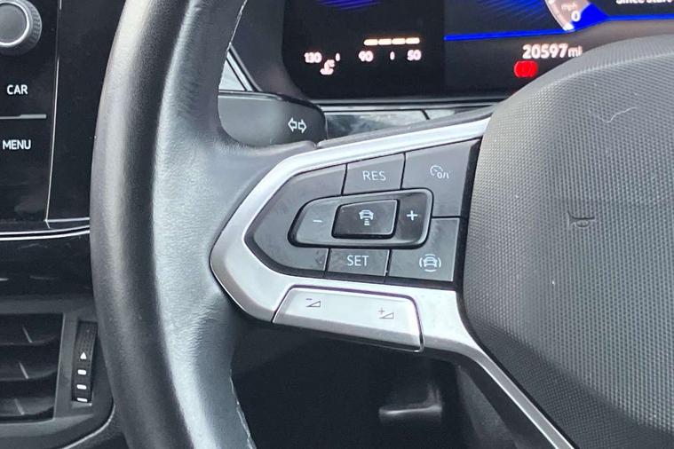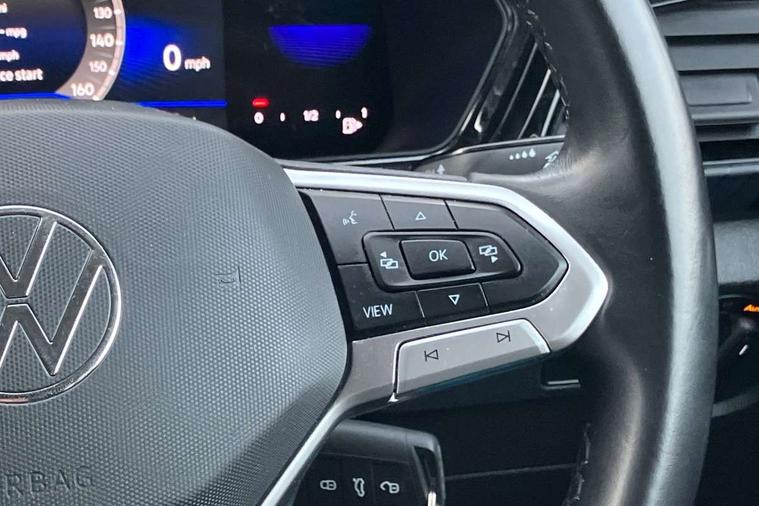 'Lights On' Reminder warning buzzer, Adaptive cruise control including front assist, forward collision warning, autonomous emergency braking, speed limiter, Blind spot monitoring, Bluetooth telephone and audio connection for compatible devices, Car information display, Digital cockpit, Driver alert system, eCall emergency call system, Lane assist, Low washer fluid warning light, Multifunction computer with visual gear change recommendation for fuel consumption, Operating permit alteration, Power assisted speed sensitive steering, Speedo, rev counter, electronic odometer, trip, service interval display, exterior temperature and fuel gauge, Stop/start system, Warning sound and light for doors and tailgate open, Warning sound and light for front seatbelts unfastened, We Connect Go Dongle, Wireless Car net app connect with Apple CarPlay, combined functionality of Apple CarPlay/Android Auto and MirrorLink, Battery regeneration during braking, Misfuel prevention device, 2x USB connection with USB charging sockets and in rear centre console, DAB Digital radio receiver, Diversity antenna for FM reception, Multi device interface (MDI) with USB connection, Music playback - MP3, WMA and AAC files, Premium USB cable for Apple or Android smartphone compatibility, Simultaneous pairing of 2 compatible mobile devices, Title and cover art display, Automatic hazard lights activation under emergency braking, Black door mirrors, Black roof rails, Body colour door handles, Body coloured bumpers, Dusk sensor + automatic driving lights, Electrically foldable, adjustable and heated door mirrors with reverse activated kerb view adjustment on passenger's side, Front and rear electric windows, Front fog lights with static cornering function, Galvanised body, Heated rear window, LED third brake light, Lower door sills and door pillars in black, Radiator grille with high gloss surface and chrome strip, Rear fog light on one side, reversing light on both sides, Rear lights incorporating LED technology, Rear side wing doors, Rear tinted glass 65% approx light absorbing from B pillar backwards, Rear window aerial, Rear windscreen washer and wiper with interval delay, Reflectors in all doors, Tailgate with integrated roof spoiler, Windscreen wipers/ intermittent wipe + 4 position delay, 12V Accessory socket in centre console, 3 rear head restraints and 3 rear three point seat belts with ECE label, 3 seat bench in 2nd row, 60/40 split folding rear seat backrest, Comfort front sport seats, Diag cloth upholstery, Drawer under drivers seat, Driver and front passenger sunvisor with vanity mirror, Driver's sunvisor with ticket holder, Dust and pollen filter, Front + rear carpet mats, Front and rear reading lights X 2, Front centre armrest with storage compartment, Front seat back storage pockets, Front seats with adjustable lumbar support, Glovebox, Heating and fresh air system with 4 stage blower, Height/reach adjust steering wheel, Instrument lighting white adjustable panel illumination, Interior light with delay, Isofix child seat preparation for 2 rear child seats, Luggage compartment cover, Luggage compartment lighting, Manual air conditioning, Moveable and foldable Rear bench seat, Single front passenger seat, Storage compartment in drivers and front passengers door, Three spoke multi-function leather trimmed steering wheel and gearknob, Variable boot floor, Anti-lock Braking System (ABS) with Hydraulic Brake Assist (HBA), Automatic post collision braking system, Driver and front passenger safety-optimised head restraints, Drivers and Front Passengers airbags with front passengers airbag deactivation switch, ESC with EDL, ASR, EDTC and trailer stabilisation function, Front and rear curtain airbags, Front disc brakes and rear drum brakes, Front seat side impact airbags, Height-adjustable front three-point seat belts with tensioners, Hill start assist, Pre crash preventive occupant protection, Rear door child safety locks, Rigid safety cell with front and rear crumple zones, Single torn horn, Tyre pressure loss indicator, Volkswagen roadside assistance, Alarm with interior protection and deactivation via infotainment system, Child security locks in rear doors, Electronic engine immobiliser, Remote tailgate unlocking using key fob, Decorative inserts transition high gloss black/platnium grey, 17" Manila black diamond turned surface alloy wheels + anti theft wheel bolts, Breakdown kit,