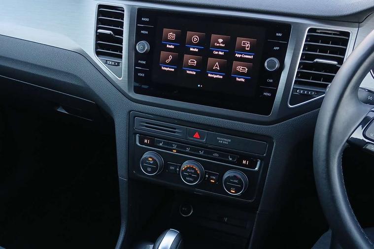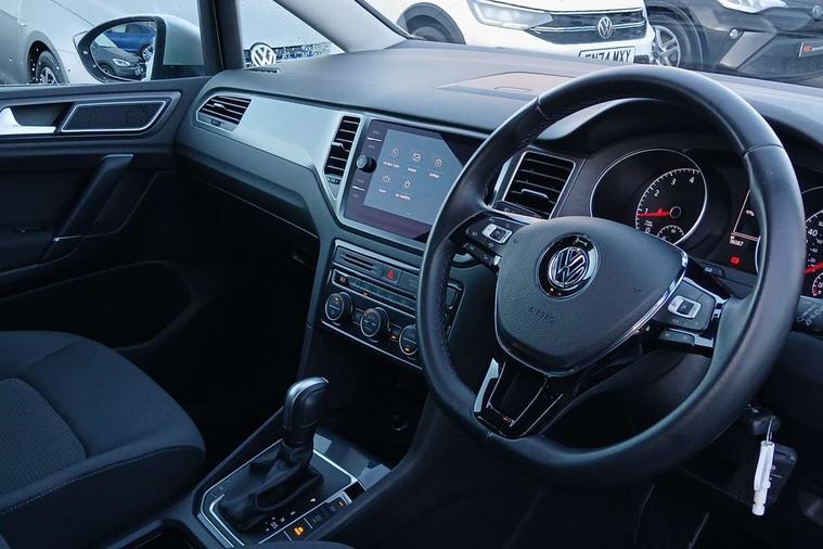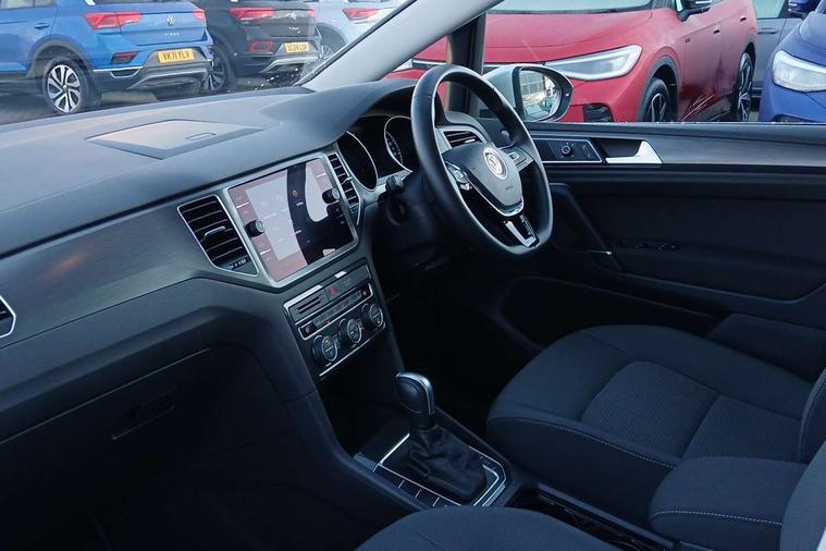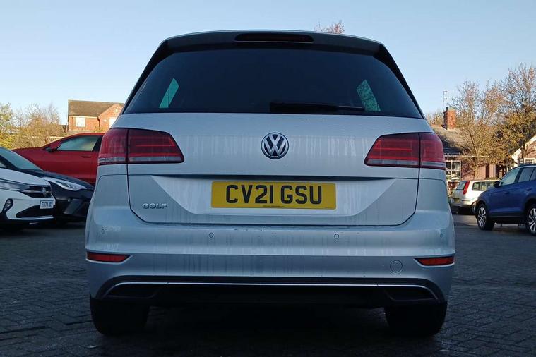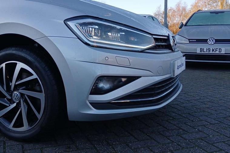 App-Connect, 'Lights On' Reminder warning buzzer, ACC - Adaptive cruise control with front assist, forward collision warning, distance monitoring, city emergency brake and speed limiter, Bluetooth Telephone preparation, Brake pad wear indicator warning light, Drive mode selector, Driver alert system, Driver profile selection, Exterior temperature gauge, PAS - speed related, Push tank flap, Rev counter, Speedometer, electronic odometer and fuel gauge, Stop/start system, Trip and service interval display, Warning buzzer and light for front seatbelts unfastened, We Connect Go Dongle, White instrument cluster lighting, Battery regeneration during braking, XDS electronic differential lock, Composition media system, DAB Digital radio, Dynamic navigation based on TMC+, Personalisation 1.1 profile for media, SD card slot, SMS functionality - read, compose and send SMS messages using touch-screen display, USB and auxiliary socket, Auto dimming rear view mirror, Automatic coming/leaving home lighting function, Black front air intake and radiator grilles with chrome inserts, Body colour bumpers, Body colour door handles, Body colour door mirrors with integral indicators, Dusk sensor + auto driving lights, Electric front windows, Electric rear windows, Electrically adjustable and heated door mirrors, Front fog lights with static cornering function, Galvanised body, Heat insulated tinted glass 65% light absorbing from B pillar back, Heated rear windscreen, Integral rear window aerial, LED 3rd brake lamp, LED daytime running lights, LED rear lights, Rain sensor, Range adjustable headlights, Rear diffuser, Rear roof spoiler, Rear window antenna, Rear windscreen washer and wiper with interval delay, Twin exhaust tailpipe, Windscreen wipers/ intermittent wipe + 4 position delay, 12V socket in luggage compartment, 2 front reading lights, 3 rear headrests, 3 spoke steering wheel, 60/40 split folding rear seat, Auto fold down lever in rear seat backrest, Centre console storage box, Cooled glovebox, Courtesy light delay, Dashboard storage compartments, Driver and front passenger under seat drawer, Driver/front passenger seat height adjustment, Dust/pollen filter, Folding tables on front seatbacks, Front centre armrest with storage box and two rear air vents, Front seat back storage pockets, Grab handles x 2 with integrated coat hooks, Height/reach adjust steering wheel, Interior lighting with switch off delay and contact switches on all doors, Isofix preparation for 2 rear child seats, Load lashing points x 4 in luggage compartment, Load through provision, Luggage compartment cover, Luggage compartment lighting, Overhead storage box, Pearl grey headlining, Rear centre armrest with 2 cup holders, forms a table when folded down, Rear reading lights x 2, Storage box in luggage compartment, Storage boxes under front seats, Storage compartments in doors, Sunvisors with illuminated vanity mirrors, Variable boot floor, height adjustable and removable, White adjustable panel illumination, Mirror pack - Golf, 3 point height adj front seatbelts + pretensioners, 3 rear 3 point seatbelts, ABS, Automatic post collision braking, Child locks on rear doors, Door open warning reflectors, Driver/Front Passenger airbags, Driver/Passenger whiplash optimised head restraints, Drivers knee airbag, Electronic parking brake with auto hold, Electronic tyre pressure monitoring, ESP with EDL + ASR, Front and rear curtain airbags, Front passenger airbag deactivation, Front side airbags, HBA (Hydraulic Brake Assist), Pre crash system, Predictive pedestrian protection, Ventilated front disc brakes, Alarm with interior protection, Electronic engine immobiliser, Remote central locking with 2 remote folding keys, Brushed dark silver decorative inserts in dash and door panels, Chrome-plated light switch surround, Decor strip on dashboard and door side trim, Polar night black centre console, Steel space saver spare wheel,