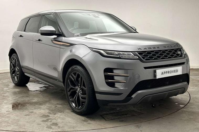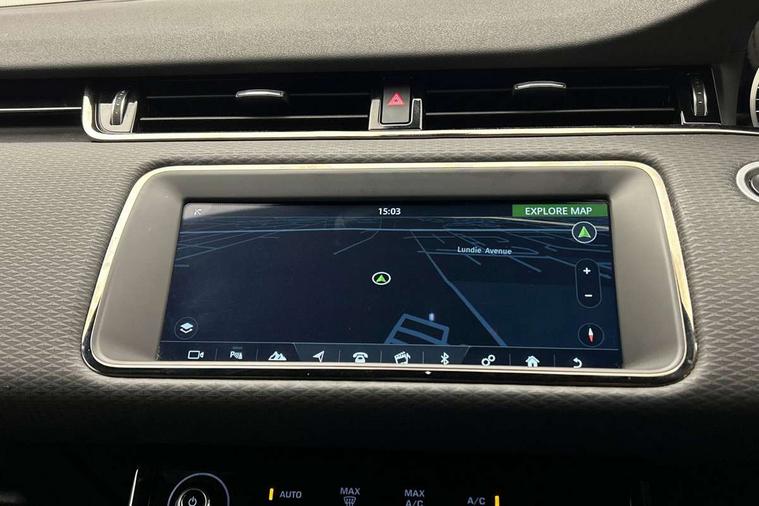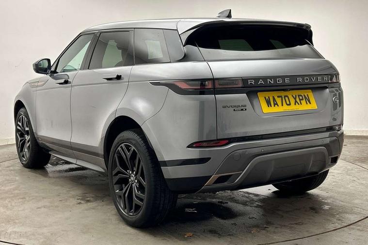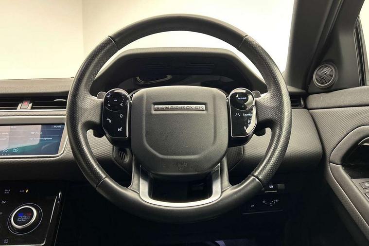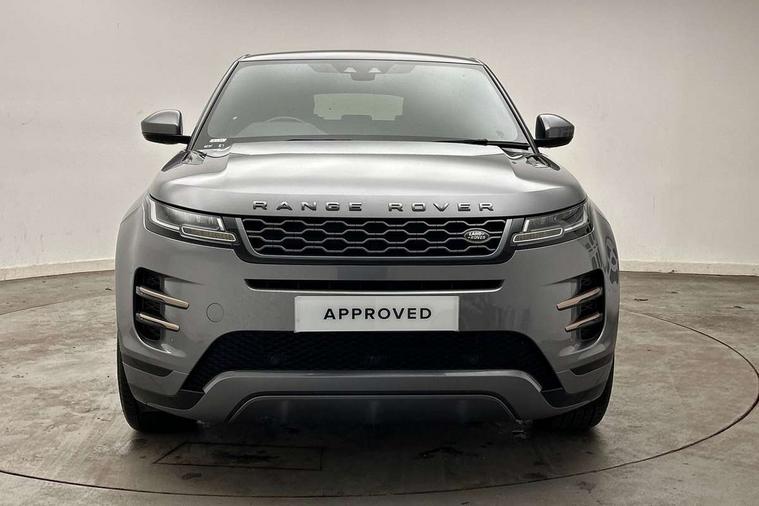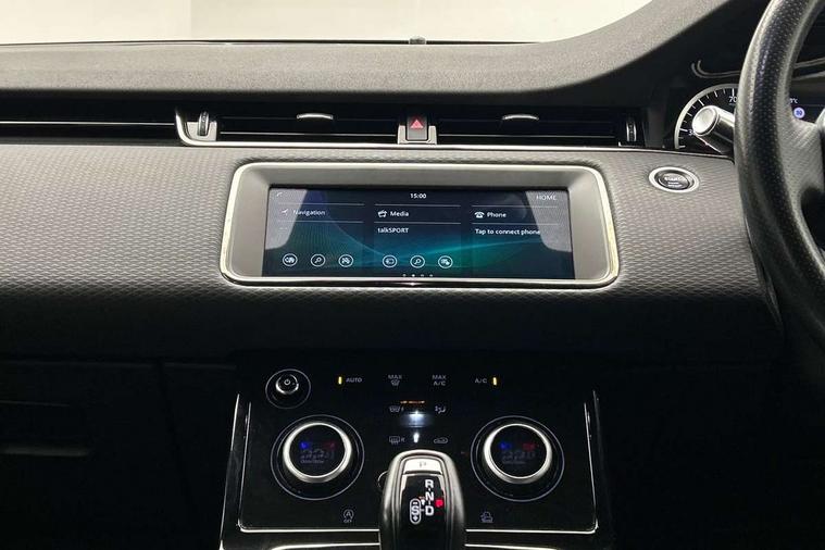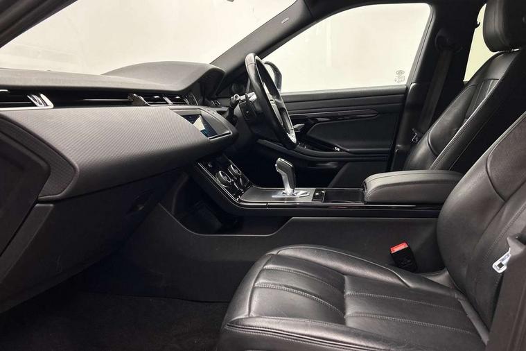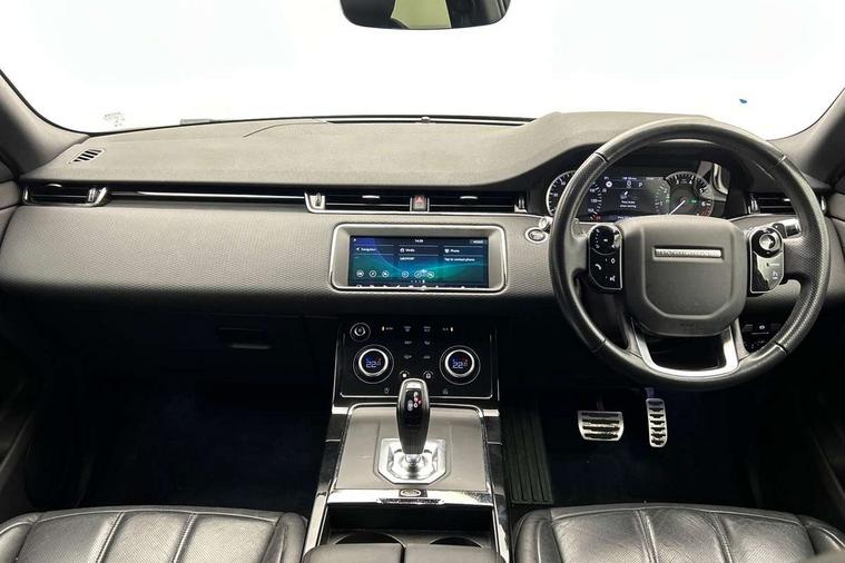 3D 360 degree surround camera, Android Auto, Apple car play, Bluetooth connectivity, Brake pad wear indicator warning light, Driver condition monitor, Electronic power assisted steering (EPAS), InControl remote, Land Rover InControl apps, Lane keep assist, Pivi pro connected includes upgraded infotainment, smart settings, connected navigation pro, Nuance speech licence, Push button starter, Traffic sign recognition with adaptive speed limiter, Voice control system, Wade Sensing, All terrain progress control, Efficient Driveline, Large fuel tank, Passive suspension, Terrain Response 2 Auto, Digital Audio Broadcast radio-DAB, Steering wheel mounted controls, Electric windows with one touch open/close and anti trap, Evoque and R-Dynamic badge, Flush deployable exterior door handles, Heated rear window with timer, Heated washer jets, Heated windscreen, Power fold, auto-dimming, heated door mirrors with approach lights and auto dimming driver side, Rain sensing windscreen wipers, Rear fog lights, Shadow atlas bonnet and tailgate script, Tailgate spoiler, 40:20:40 split folding rear seats with centre headrest and armrest, Ambient interior lighting, Bright metal pedals, Isofix system on outer rear seats, Overhead lighting console, Overhead stowage for sunglasses, Passive front head restraints, Rear air vents, Rear centre headrest, Satin chrome gearshift paddles, Sunvisors with illuminated vanity mirrors, Twin sliding front centre armrest, 3 rear 3 point seatbelts, Anti-lock braking system (ABS), Customer configurable autolock, DSC - Dynamic Stability Control, Electronic brake force distribution, Electronic parking brake, Electronic traction control, Emergency braking, Front and rear seatbelt reminder, Hill descent control, Hill launch assist, Low traction launch, Power operated child locks, Roll stability control, Six airbags - Driver and passenger airbags/driver knee airbag/front side airbag and curtain airbags, Torque vectoring brake, Tyre pressure monitoring system, Alarm, Immobiliser, Intrusion sensor, Locking wheel nuts,