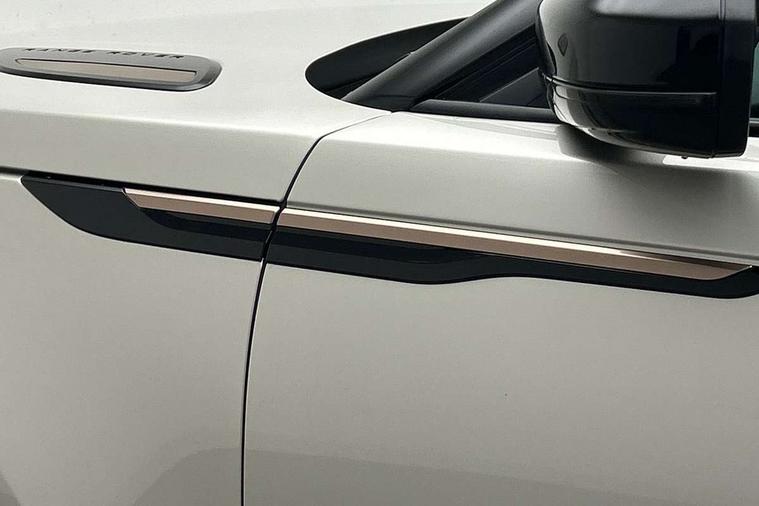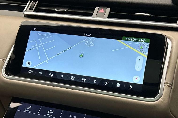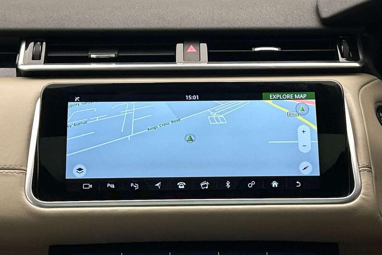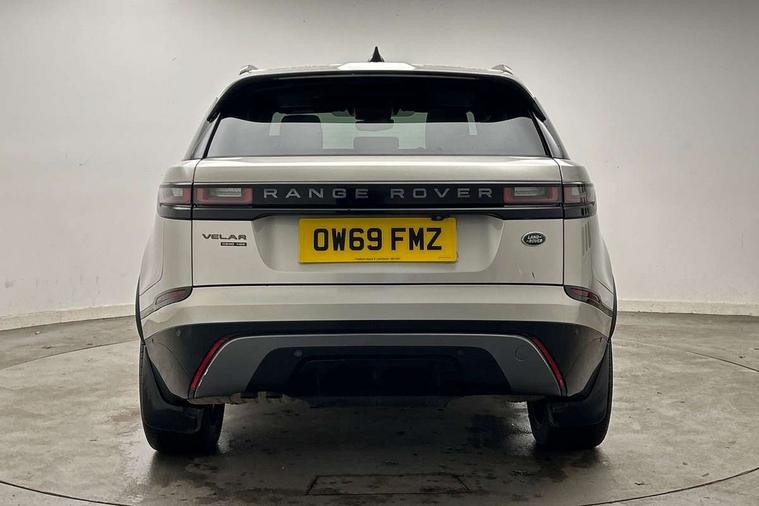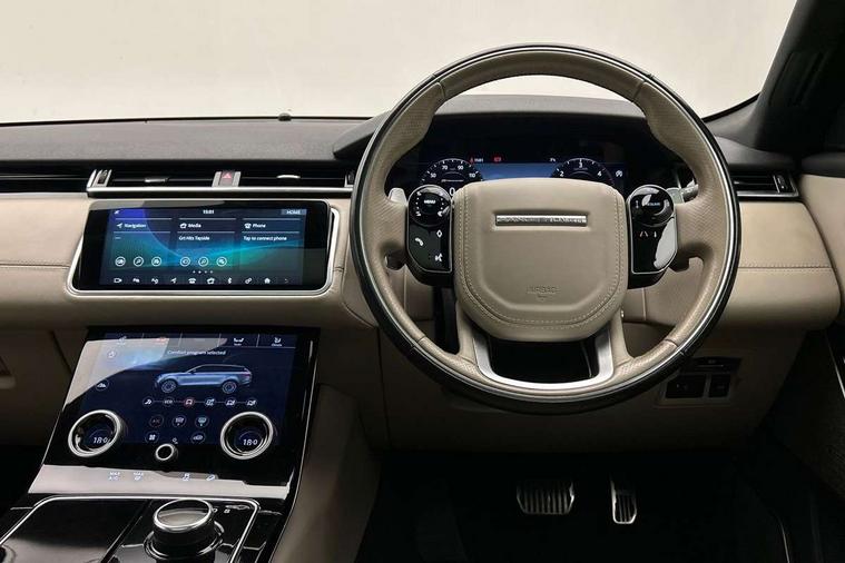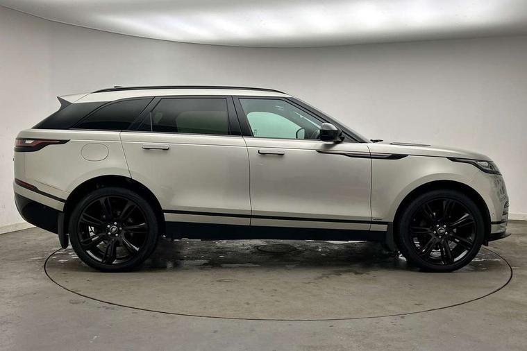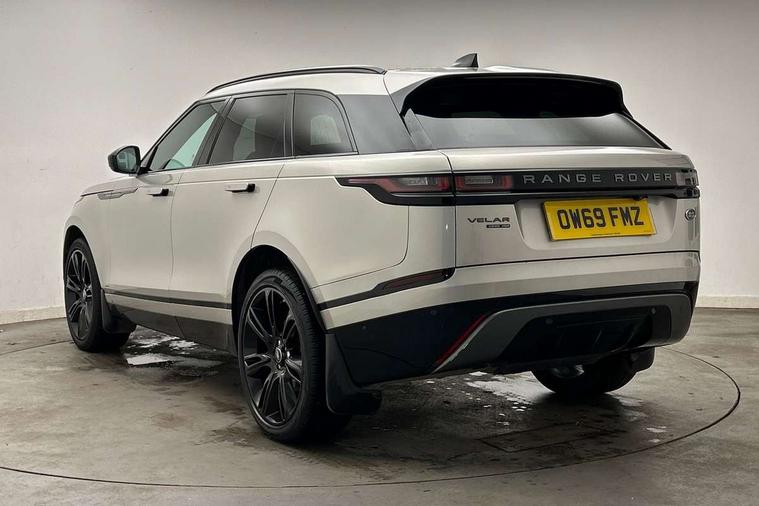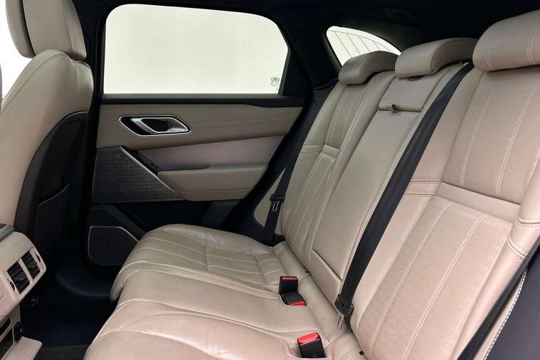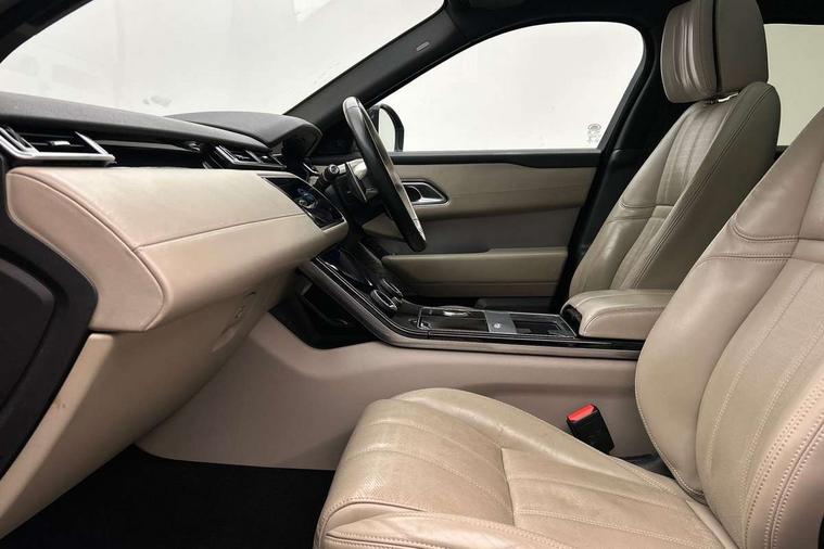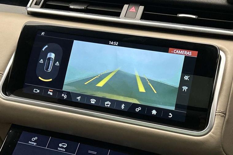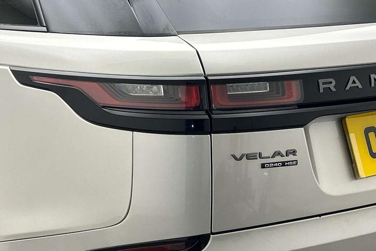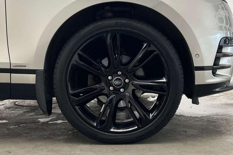 Adaptive cruise control with steering assist, Android Auto, Apple CarPlay, Blind spot assist, Bluetooth connectivity, Brake pad wear indicator warning light, Driver condition monitor, eCall emergency call system, Front and rear parking aid, InControl remote, Land Rover InControl apps, Lane keep assist, Pivi pro with connected navigation, Rear collision monitor, Rear traffic monitor, Service indicator, Speed proportional electronic power assisted steering (EPAS), Traffic sign recognition with adaptive speed limiter, Trip computer, Voice control system, Wireless device charging, 8 speed automatic transmission, Adaptive dynamics, All terrain progress control, Electronic air suspension, Open differential with torque vectoring by braking, Single speed transfer box, DAB radio, Steering wheel mounted controls, 3rd brake light, Acoustic laminated windscreen, Auto dimming interior rear view mirror, Automatic headlamp levelling, Automatic headlights, Body coloured bumpers, Boot protection plate, Electric windows with one touch open/close and anti trap, Flush deployable exterior door handles, Follow me home headlights, Heated rear window with timer, Heated washer jets, Heated windscreen, Metal front tread plates, Metal load space scuff plates, Pixel LED headlights with signature DRL, Power fold, auto-dimming, heated door mirrors with memory and approach lights, Rain sensor windscreen wipers, Rear animated directional indicators, Rear fog lights, Rear side wing doors, Rear wash/wipe, Tailgate/boot lid spoiler, Trailer stability assist, Velar badge, 3 seat bench in 2nd row, Ambient lighting, Bright metal pedals, Carpet mats, Driver/passenger sunvisors with illuminated vanity mirrors, Ebony morzine headlining, Electrically adjustable steering column, Extended leather upgrade, Heated steering wheel, Isofix system on outer rear seats, Loadspace cover, Overhead lighting console, Overhead stowage for sunglasses, Passive front headrests, Rear air vents, Rear centre headrest, Single front passenger seat, Twin front cupholders, Twin sliding front centre armrest, Online pack with data plan - Velar, Power socket pack 2 - Velar, 380mm front brakes and 325mm rear brakes, 3x3 point rear seatbelts, Anti-lock braking system (ABS), Cornering brake control, Curtain airbags, Customer configurable autolock, Door side intrusion beams, Driver airbag, DSC - Dynamic Stability Control, Electronic brake force distribution, Electronic parking brake, Electronic traction control, Emergency braking, Front and rear seatbelt reminder, Hill descent control, Hill launch assist, Low traction launch, Passenger airbag, Power operated child locks, Rear airbags, Roll stability control, Side airbags, Tyre pressure monitoring system (TPMS), Global lock and unlock switch on driver door, Immobiliser, Intrusion sensor, Keyless entry, Lock only switch on front passenger door, Locking wheel nuts, Perimetric alarm, Remote central locking, All season tyres,