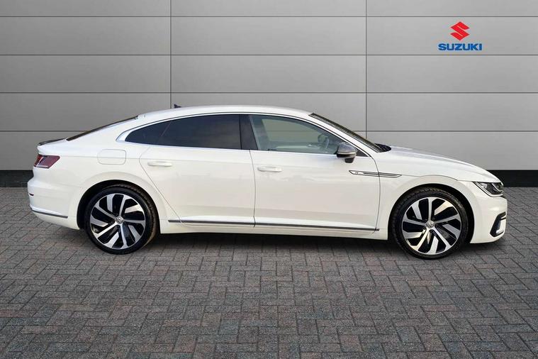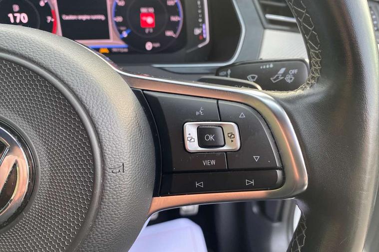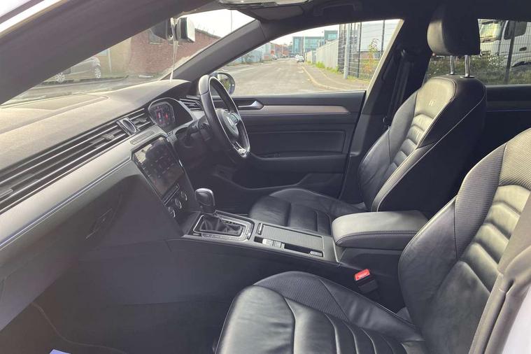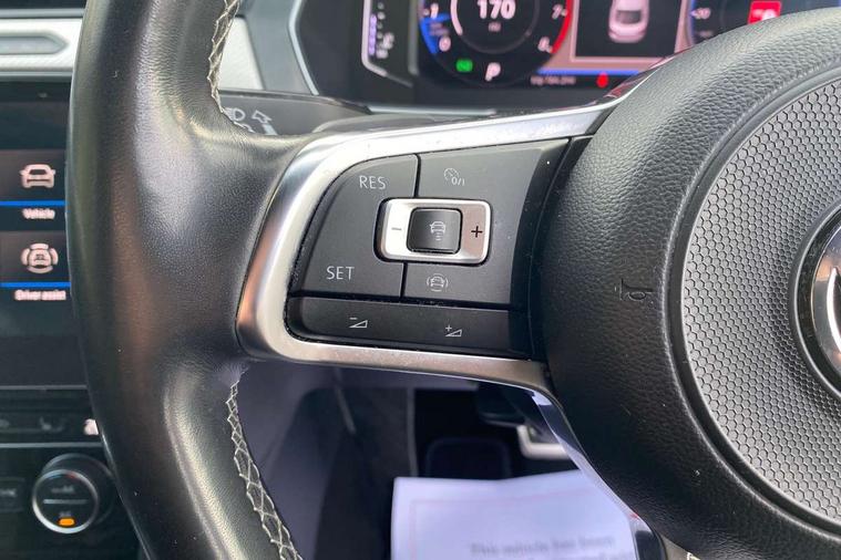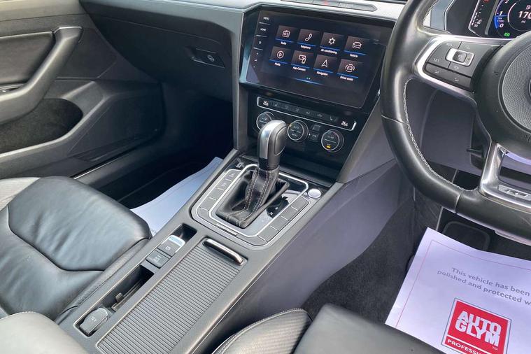 'Lights On' Reminder warning buzzer, 2D/3D map view, 8" touch screen, Active Info display 12.3" high resolution TFT dash display with customisable menu and information, Adaptive Cruise Control with pedestrian detection and speed limiter, Analogue clock in the dasboard, Bluetooth telephone and audio connection for compatible devices, Car-Net Security and Service, Discover pro navigation, Driver alert system with fatigue detection, Driver profile selection, Front Assist with radar sensor controlled distance monitoring system, Lane assist, Press and drive key, Progressive steering, Remote boot unlocking, Speedo and rev counter, electronic odometer, trip, service interval display and fuel gauge, Start/Stop function, Streaming and internet, Think blue trainer driver tips and journey analysis, Voice control system, Warning sound and light for doors and boot lid opening, Warning sound and light for front and rear seat belts if unfastened, We app connect, Battery regeneration during braking, Part galvanised body, CD/MP3/WMA and SD card reader, DAB Digital radio, MDI with USB/iPod connection cables, Premium USB cable in choice of either Apple or Android smartphone compatibility, SMS functionality - read, compose and send SMS messages using touch-screen display, Title and cover art display, USB interface 3.0 with type C, Advanced high beam control, Auto dimming interior rear view mirror, Automatic coming/leaving home lighting function, Automatic hazard lights activation under emergency braking, Automatic headlights with dusk sensor, Body colour door handles, Body coloured door mirrors with integrated indicators, Chrome side window surrounds, Chrome trim headlights extending into the radiator grille, Chrome trim on radiator grille louvres, Door sill protector, Dynamic cornering lights, Dynamic light assist, Electric adjust/heated/foldable with auto dimming on driver side, puddle lights on door mirror and reverse activated kerbview adjust on passenger side, Emergency release function in rear tailgate, Front and rear electric windows, Front fog lights, Gloss black spoiler, Headlight range control, Headlight washers, Heated rear window, Heated windscreen washer jets, High level 3rd brake light, LED headlights with separate daytime running lights, LED number plate light, LED tinted rear light clusters with dynamic indicators, Left and right chrome effect trapezoid dummy exhaust tailpipe surrounds, Left and right chrome trim on lower bumper, Left and right chrome trim on lower doors, R Line bading on front raddiator grille, R Line Design front bumper, R Line lettering on side fender vents, R Line logo on door sill protectors, Rain sensor, Rear tinted glass on rear side windows with 87% and rear windows with 77%, Side skirts with chrome inserts, Windscreen wipers/ intermittent wipe + 4 position delay, 12V socket in centre console storage area, 12V socket on rear of front centre armrest, 2 bag hooks in luggage compartment, 2 reading lights front and rear with interior delay and dimming function, 3 spoke leather multifunction steering wheel including paddle shift with Aluminium inserts and R-Line logo, 3 Zone electronic climate control with automatic air recirculation, 4 load lashing points in luggage compartment, 60/40 split folding rear seat with armrest, Aluminium finish interior door handles, Aluminium trim on upper and lower air vents extending across cockpit, Front + rear carpet mats, Front and rear interior lighting with delay and dimming function, Front centre armrest with storage compartment, longitudinal and height adjustable and two rear air vents, Front cupholders x 2, Front footwell ambient lighting, Front seat and rear pockets, Front seats with R-line logo on seat backrest, Gearshift paddles, Glovebox, Heated front seats, Height adjustable 3 rear head restraints, Height/reach adjust steering wheel, Illuminated vanity mirrors, Isofix child seat preparation easy fit for two outer rear seats, Jack and tool kit, Luggage compartment lighting, Nappa leather upholstery, Rear armrest with 2 cupholders, Rear load through provision with 2 cup holders in armrest when folded down, Removable luggage compartment cover, Stainless steel footrest and pedals, Storage compartment in drivers and front passengers door, Storage compartment in rear doors, Storage compartment with soft touch opening cover in centre console, Storage compartments in luggage area left and right, Titan headlining, USB charging point, 3 rear three-point seat belts with tensioners on outer seats, ABS, Active bonnet, City Emergency Braking in active traffic speeds up to 19mph, Drivers and front passengers airbags with passengers deactivation switch, Drivers and front passengers safety optimised head restraints, Drivers knee airbag, Electronic parking brake with auto hold, Electronic stability control (ESC) includes ASR, EDL, EDTC and trailer stabilisation function, Front and rear curtain airbags, Front seat side impact airbags, Front ventilated disc brakes and rear disc brakes, Height adjustable front 3 point seatbelts + pretensioners, Hill start assist, Outer rear seat side impact airbags, Pedestrian monitor, Proactive passenger protection system, Rigid safety cell with front and rear crumple zones, Two tone horn, Tyre pressure loss indicator, Warning triangle, Alarm with interior protection, Electronic engine immobiliser, Remote central locking with 2 remote folding keys, Piano black centre console, Silver Rise decorative inserts in dash and door panels, Full size alloy spare wheel,