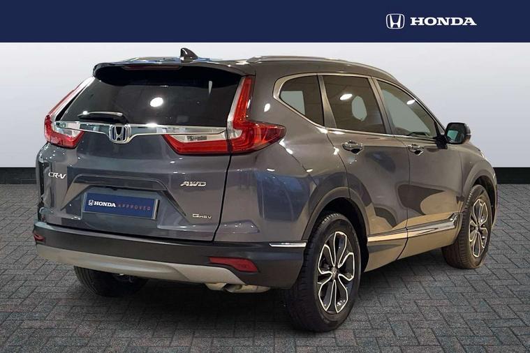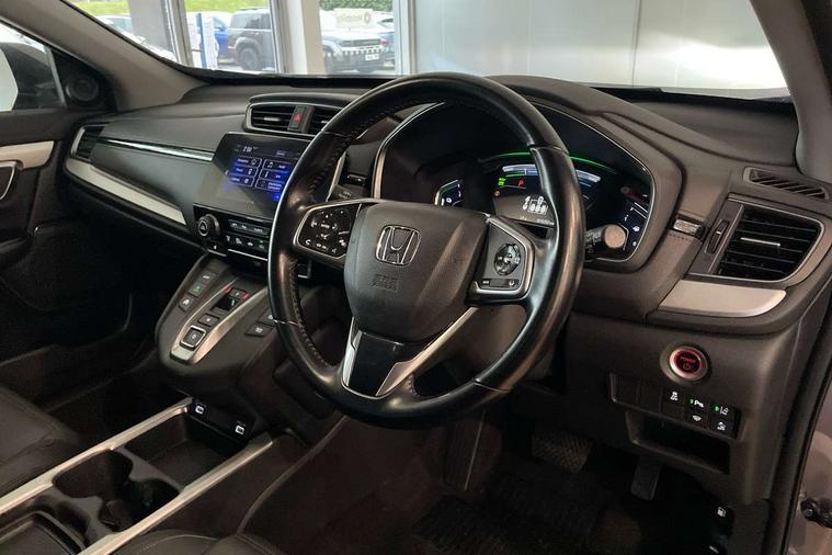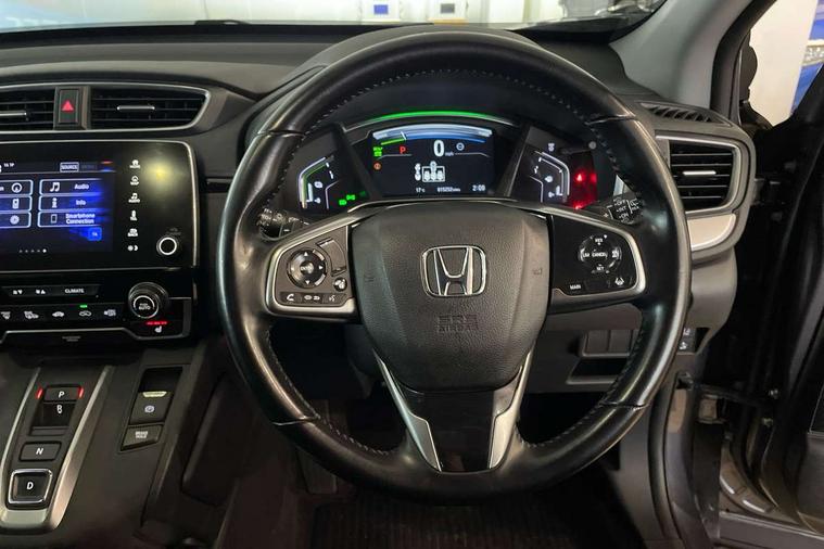 Adaptive cruise control, Agile handling assist, BLIS (Blind Spot Information System) with dual power heated blind spot mirrors, Bluetooth hands free telephone connection, E-call, Economy mode, Electric power steering, Emergency stop signalling system, Forward collision warning, Front parking sensors, Honda CONNECT with GARMIN Navigation + 7" touchscreen, DAB radio, Apple CarPlay, Android Auto, Aha app integration and internet browsing, Intelligent multi info display, Lane departure warning system, Lane keep assist system, Low speed following, Rear parking sensors, Rear view camera, Road departure mitigation, Speed limiter, Traffic sign recognition, Vehicle stability assist, 2 USB sockets in rear, 2x USB sockets in front, 9 speakers, DAB Digital radio, Dashboard centre speaker, Front tweeters, Steering wheel mounted controls, Subwoofer, Aspheric door mirrors, Auto dimming rear view mirror, Automatic headlights with dusk sensor, Body colour bumpers, Body colour door handles, Cornering light, Door mirrors tilt when reversing, Electric front windows/one touch facility, Electric rear windows + one touch facility, Electrically adjustable and heated door mirrors, Electrically retractable door mirrors, Front windscreen de-icer, High beam assist, LED daytime running lights, LED front fog lights, LED Headlights, LED rear lights, Rain sensor, Rear privacy glass, Rear side wing doors, Rear wiper, Roof rails, Shark fin roof aerial, Third brake light, Welcome home function, 3 seat bench in 2nd row, 60/40 split folding rear seat, Accessory sockets, Ambient interior lighting, AWD emblem rear, Cargo hooks, Courtesy lights, Driver's electric adjustable lumbar support, Driver/passenger front seatback pockets, Driver/passenger sunvisors with illuminated vanity mirrors, Dual zone automatic climate control, Electric lumbar adjustment on passenger's seat, Front centre armrest, Front map lights, Front passenger seat height adjust, Heated front seats, Height adjustable driver's seat, Hybrid emblem, Illuminated glovebox, Instrument panel with garnish wood film, Isofix child seat preparation, Leather steering wheel, Leather upholstery, Paddle shift controls, Rear air vents, Rear centre armrest, Rear headrests, Rear reading lights, Rear seat conversation mirror, Silver interior door handles, Single front passenger seat, Sunglasses holder with mirror, Tilt/telescopic adjustable steering wheel, Tonneau cover, Trunk light, 5 x 3 point seatbelts, ABS/EBD, Anti-whiplash front headrests, Brake assist function, Collision mitigation braking system, Deflation detection system, Driver airbag, Electronic parking brake with auto hold, Front and rear curtain airbags, Front and rear seat belts with emergency locking retractor (ELR), Front side airbags, Hill start assist, Manual child lock in rear doors, Passenger airbag deactivate switch, Honda super locks, Immobiliser, Security alarm, Smart entry + Smart start, Ultrasonic security sensor, Tyre repair kit,