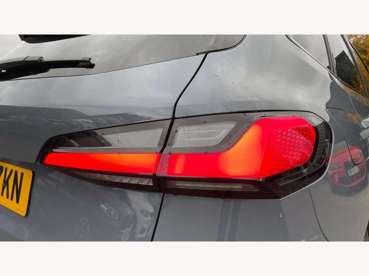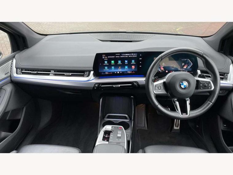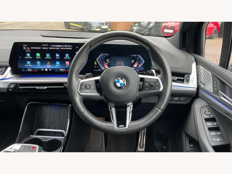 Active Guard, Attentiveness assist, Automatic powered tailgate, Automatic start/stop function, BMW Online services, BMW Operating system 9 with BMW Maps, real-time traffic information, in-car experiences, remote services and smartphone integration, BMW Teleservices, Brake pad wear indicator in front and rear, Condition based service, ConnectedDrive Services, Drive off assistant, Flat air vents on instrument panel in high gloss black, adjustable slats with elements in pearl chrome, iDrive controller, Instrument cluster with speedometer with miles per hour read out, tachometer and fuel gauge, Language version English, On board computer - average speed+fuel consumption, service interval, clock/date, odometer/trip meter, outside temperature display and ice warning, Parking assistant with active park distance control, reversing assistant, lateral parking aid and rear view camera, Servotronic variable electric power steering (EPS), Widescreen display, Wireless charging, Drive performance control with ECO PRO comfort + sport mode, Gear selector switch with toggle operation, M Adaptive suspension, Performance Control, Petrol Particulate Filter, Steptronic transmission with double clutch and gear shift paddles, 2x USB Type C ports in front centre console for charging and data transfer, 2x USB Type C ports in rear centre console for charging, DAB Digital radio, Welcome sound upon opening of the front driver or passenger door, Air inlet middle part on front apron in lines specific design with trim strip in satinised aluminium, Automatic headlights, Black rear bumper trim strip, BMW emblem, engine compartment lid and tailgate, Body colour roof mouldings, Body coloured door mirror caps, Contoured rear roof spoiler in vehicle colour with side aeroblades in black high-gloss, Driver side exterior mirror lighting with BMW logo projection, Dynamic brake lights, Electric adjustable heated door mirrors, Electric windows - front and rear, with open/close fingertip control, anti-trap facility and comfort closing, Folding door handles integrated flush with surface, Front and rear windscreen wipers with heated front washer nozzles, Front bumper cover with independent design in body colour with inserts in black high gloss, Front bumper design elements in satinised aluminium, Front door exit lights, Front door sill finishers aluminium inserts with M inscription, Front entry sills with aluminium inserts + BMW inscription, Front oramental grille with radiator grille bars in satinised aluminium, Heated rear window, Hidden exhaust pipe, High gloss shadow line, Home light, Key with M identification, LED Daytime running lights and parking lights with turn indicators, LED number plate light, LED third brake light in rear spoiler, M identification on sides, Manual headlight range control, Model inscription on right tailgate, Rain sensor, Rear bumper cover with independent design in body colour with inserts in black high gloss, Rear side wing doors, Shark fin antenna, Side sill covers with independent design in Body colour, Trailer stabilisation logic, Trims on front and rear bumper covers colour-coordinated with side window graphic, Visible VIN plate, Welcome lighting, Windscreen washer nozzle for rear view camera, 12V power socket in luggage compartment and front centre console, 12V socket in right side trim panel, 2 bag hooks in luggage compartment, 2 front reading lights, 2 open cup holders in front centre console, 3 seat bench in 2nd row, Ambient lighting front and rear, Automatic two zone climate control air conditioning, Bottle trays in all doors, Child seat ISOFIX attachment for two outer rear seats and front passenger seat with anchorage points, Driver and front passenger sports seats, Embellishers on steering wheel spokes in pearl chrome, Four grab handles integrated in roof lining, Front and rear door pockets, Front and rear footwell lighting, Front and rear side armrest integrated into door trim, Front centre console storage compartment, Front head restraints, Glovebox with light, Heated front seats, Height adjustable 3 rear head restraints, Interior door handle recess light on all doors, Luggage compartment lighting, M Anthracite headlining, M specific floor mats, M sport leather steering wheel, Manual adjustment of seat height, fore/aft position, seat depth, backrest tilt and head restraint height, Map pockets, Mechanical rear seats with fore/aft adjustment, Middle centre console storage compartment, Multi-function controls for steering wheel, One piece parcel shelf opens together with tailgate and removable, Rear cloth hooks, Single front passenger seat, Stainless steel pedals, Steering wheel column manual adjustment, Storage compartment lighting in centre console and storage tray in centre stack, Storage compartment net in left side trim panel, Storage compartment with folding cover under centre console armrest cushion, Sunvisors with illuminated vanity mirrors, 3 point seatbelts on all seats, front pyrotechnic belt tensioners, stopper and belt force limiters, rear coded belt buckles, Airbag - Front driver and passenger, front and rear head, front side, curtain head protection, manual deactivation of front passenger airbag possible, Anti lock braking system (ABS) with brake assist, Automatic hold function, BMW emergency call, Brake drying, Braking readiness, Child proof locking system in rear door, Cornering brake control, Crash Sensor - activates hazard/interior lighting + unlocks doors, DSC - Dynamic Stability Control, Dynamic brake control, Dynamic Traction Control - DTC, Electromechanical parking brake, Energy recovery system, Front disc brakes, Integrated braking system, PC iBrake PostCrash approach control warning with light braking function, Rear disc brakes, Tyre pressure monitoring system, Warning triangle and first aid kit, Anti theft alarm system, Closing system with central locking, Drive away door locking, Engine immobiliser, Locking wheel bolts, Front centre console trim in high gloss black w